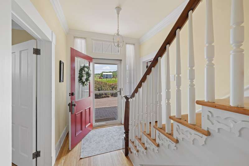 History, charm and character abound in this stunning farmhouse-style home situated on a beautifully landscaped 1.5 acre lot complete with a flowing spring just north of city limits. Ample space for family, entertaining, hobbies, and more. Beautiful, quality craftsmanship throughout both the original 1870s structure and more recent additions and renovations. Original hardwood floors throughout; most refinished in 2024. An open concept eat-in kitchen with family room space is a cook’s delight with a center island, double ovens, amazing storage and an adjacent butler’s pantry. The oversized double garage has a workshop with gas heat in the basement level and a full unfinished upper floor for storage or future expansion. The wrap around deck, screened porch, and stone terrace with custom masonry firepit provide different vantage points to view the sunset. This description barely scratches the surface of all this home offers.
