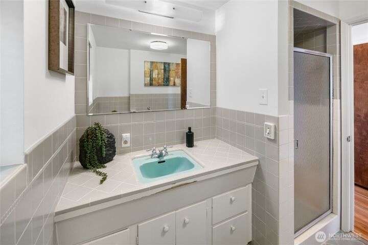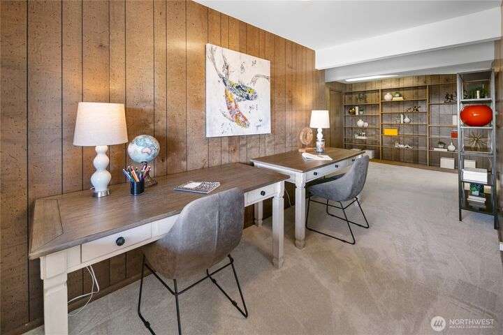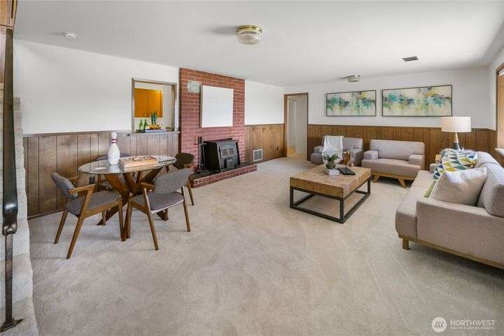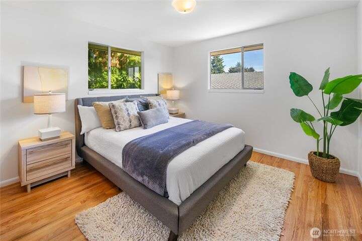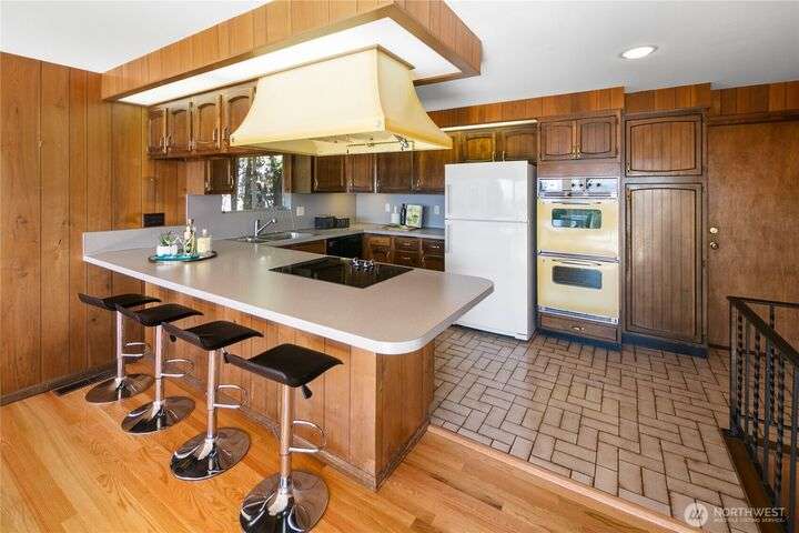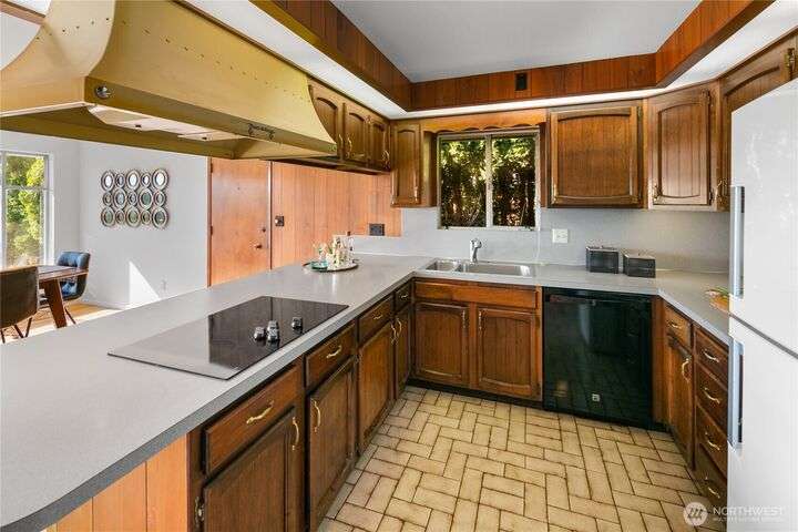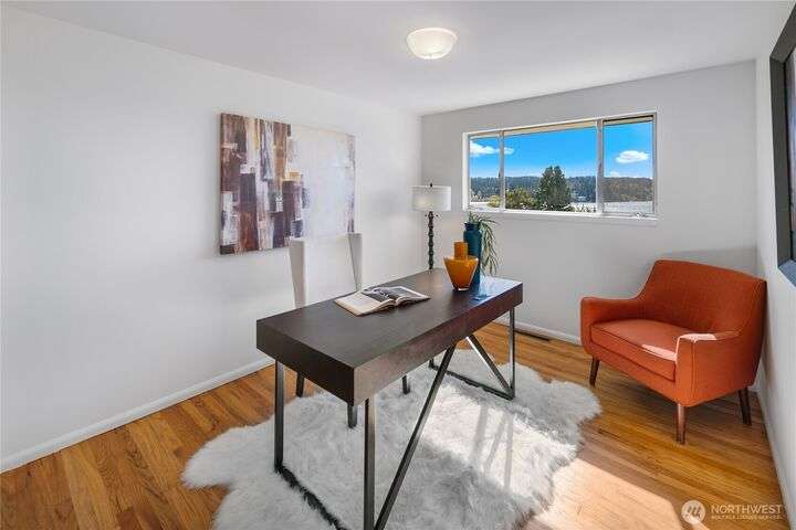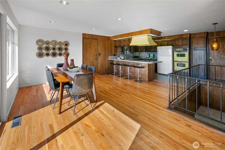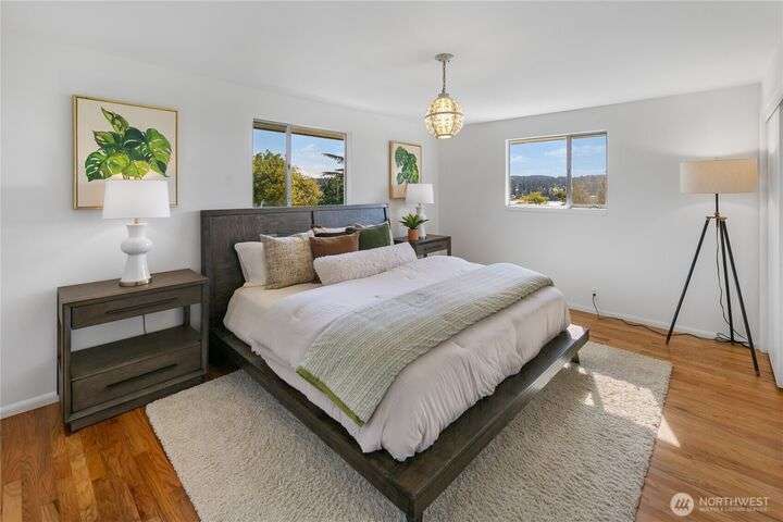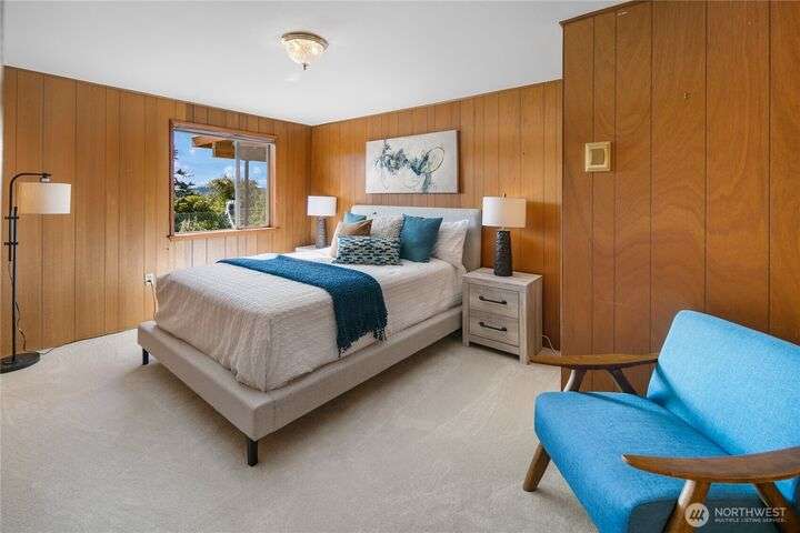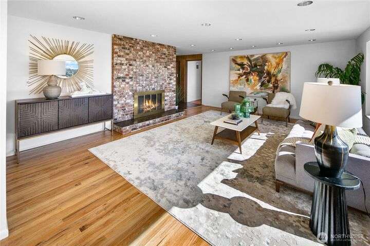 3440 sq ft, mid-century modern, 5+ brdm/2.5 bath home on 11,800 sq ft, nearly-level, fenced lot perched on a quiet street w/ breathtaking 180 degree views of Lake Washington. Freshly painted inside & out, new carpeting downstairs, main floor original hardwoods just refinished, and a beautifully refurbished 360 sq ft, water view deck. Lower level offers a separate den/library area, a kitchenette with pass-through for snacks and bonus/flex room for potential non-conforming 6th bedroom. Desirable Northshore School District. A very rare combination of an incredible location on a lovely, peaceful street, a nice, large home with amazing personal and shared spaces, a huge, fenced yard, and sweeping lake and teritorial views. Truly one-of-a-kind.