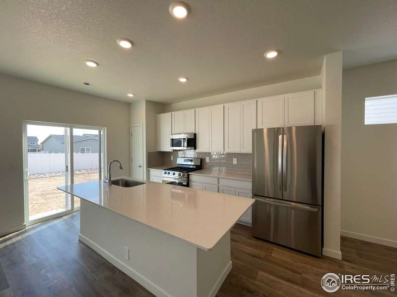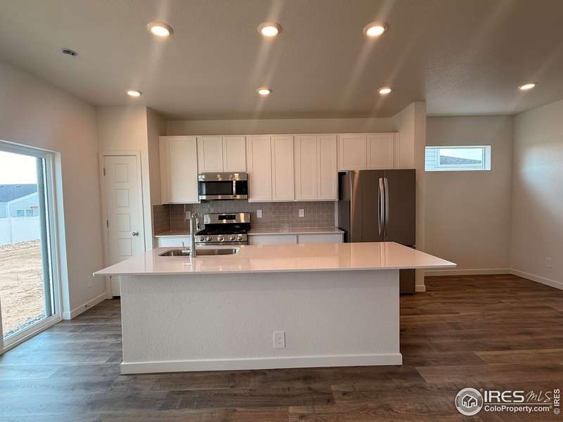 Move in Ready! Builder is including backyard landscaping and fencing and offering 4.75% fixed FHA interest rate or up to $20,000 sellers concession with use of a preferred lender. This open concept 2-story provides plenty of space for the future with a main level flex room, a spacious kitchen with a pantry, and an optional extended island. The upper-level features laundry, large master suite with ensuite bath & walk-in closet, and 2 additional bedrooms. Standard features include LED lights, a tankless water heater, stainless steel appliances, covered entry.Upgrades - Quartz countertops throughout, Gas Range, Refrigerator, Extended kitchen island, 42" Cabinets, Full height tile backsplash, LVP flooring in Great Room, LED light package, Front landscape