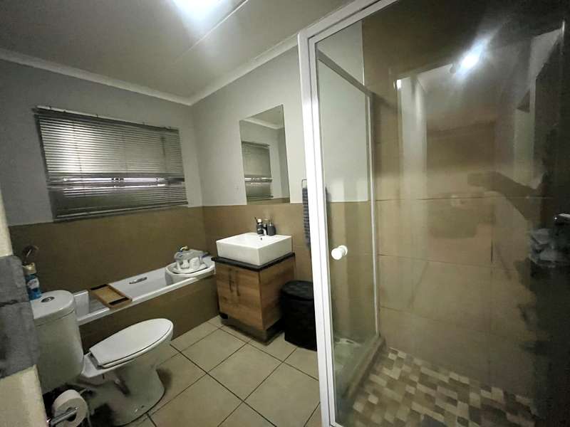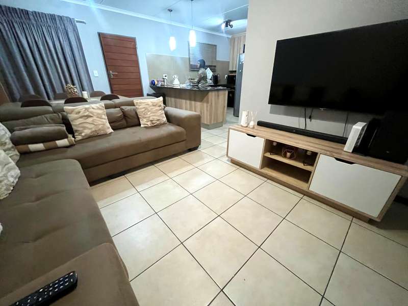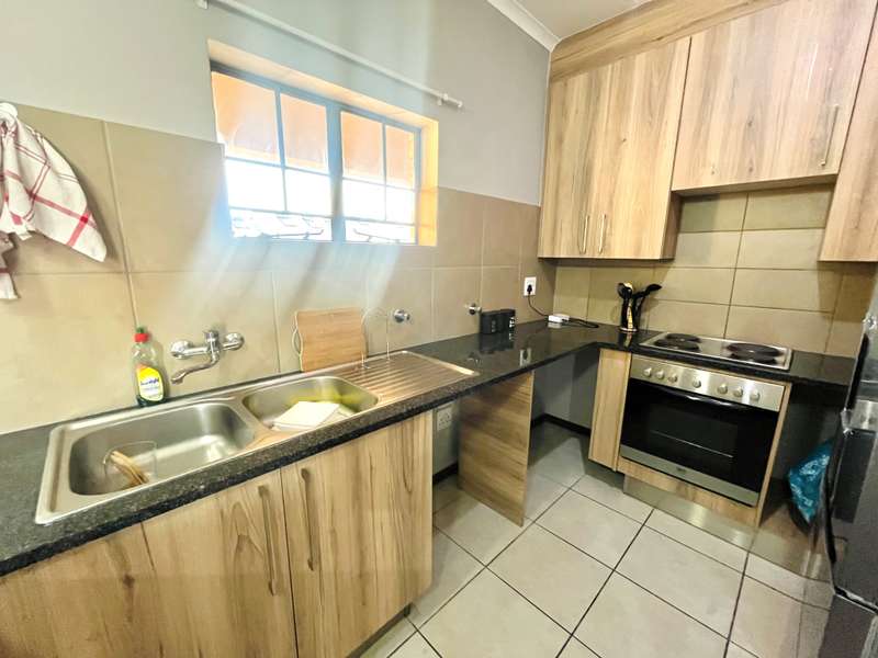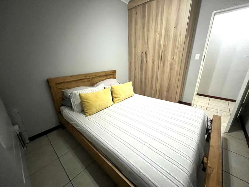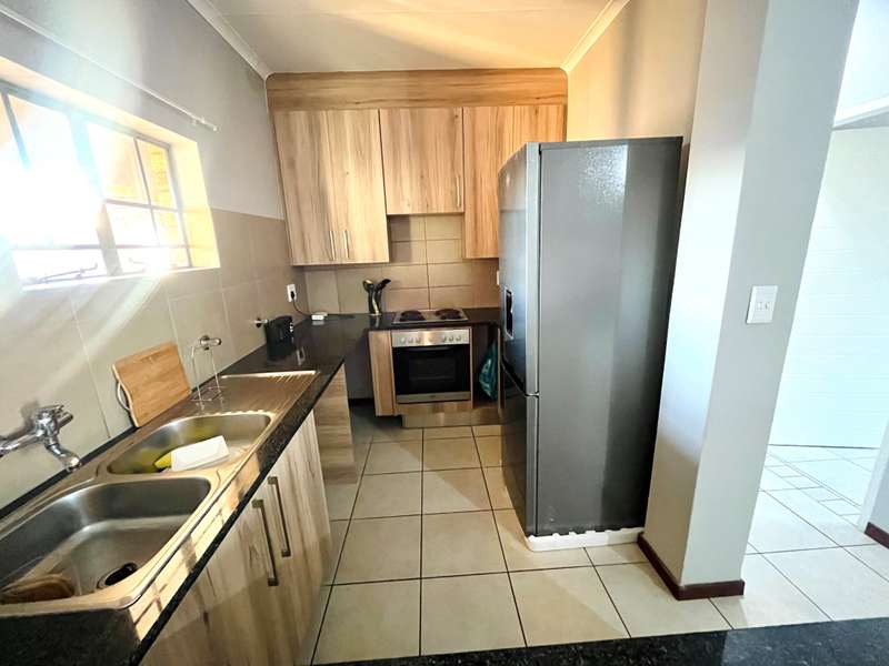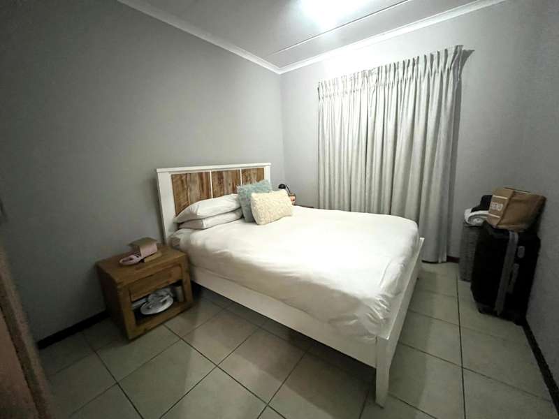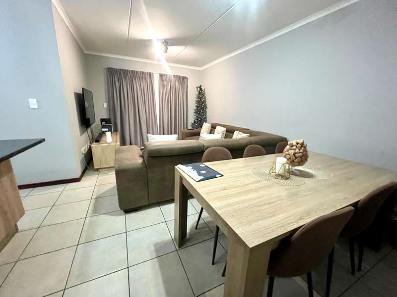 Secure yourself a stunning and modern 2 bedrooms apartment in a safe and secure complex. Located on the 1st floor, the property offers splendid views of the neighborhood. Access to the property is through 2 security gates which are secured 24/7. The home offers a spacious open plan dining room and a lounge with a sliding door leading to the balcony. The kitchen is also open plan, and has modern built-in cupboards with a black granite top. There is ample space to connect a Washing machine and a Dishwasher. There are connection points for basic electric appliances; a 4 plates functional electric stove with an undercounter oven. Both bedrooms have BICs ; they both share a separate bathroom which has a bath tub and a shower. For entertainment and swimming; you can use the clubhouse where there's a swimming pool, laundromat and a hall for hosting events. Electricity is prepaid; there's Wi-Fi connectivity for your internet connection. Contact me for a viewing appointment