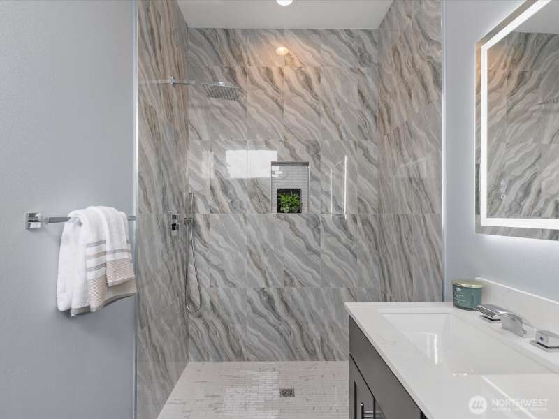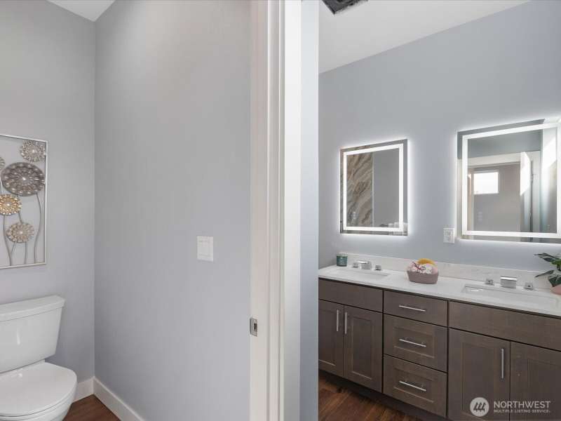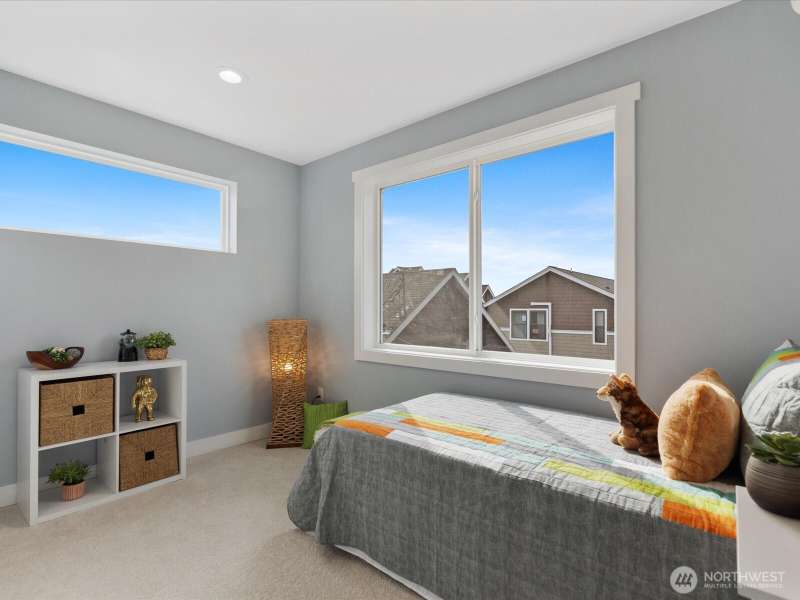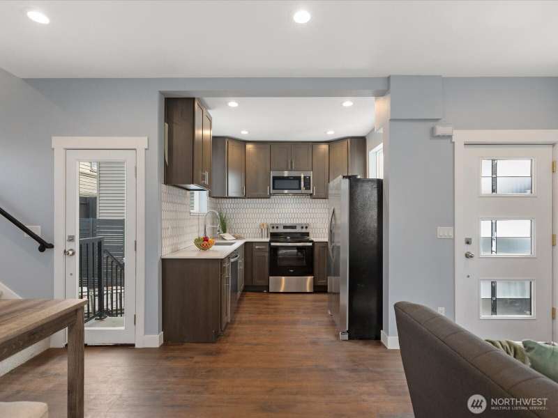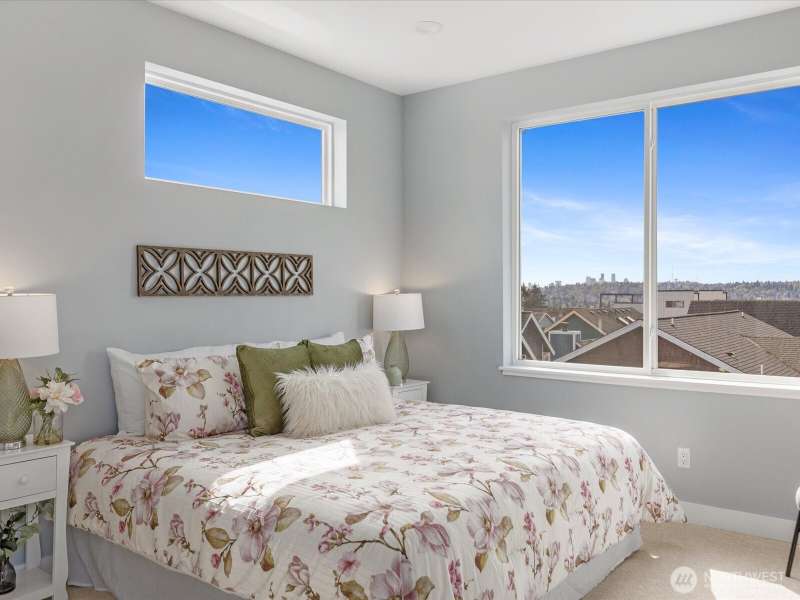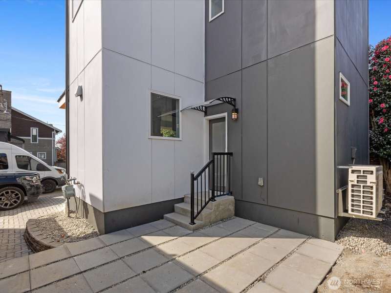 $5000 seller credit! Gorgeous new construction standalone home in Ballard! Tucked away from the road, this 3 bed, 1.75 bath home features quality finishes including stainless steel appliances, quartz counters, and shaker cabinets. The 3rd floor primary suite includes a walk in closet, en suite bath, and laundry. Two addt'l bedrooms and full bath are located on the 2nd level. There's plenty of outdoor space with a private deck off of the living room, a patio, and a rooftop deck with skyline, Sound, and Mt. Rainier views. The heat pump keeps you comfortable year round, no worries when it gets hot outside! Dedicated driveway parking, and it's not a condo or DADU. Walk Score of 87, transit just 2 blocks away, this is Ballard living at its best!