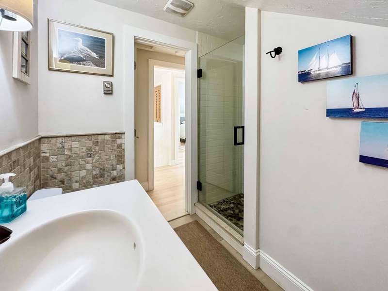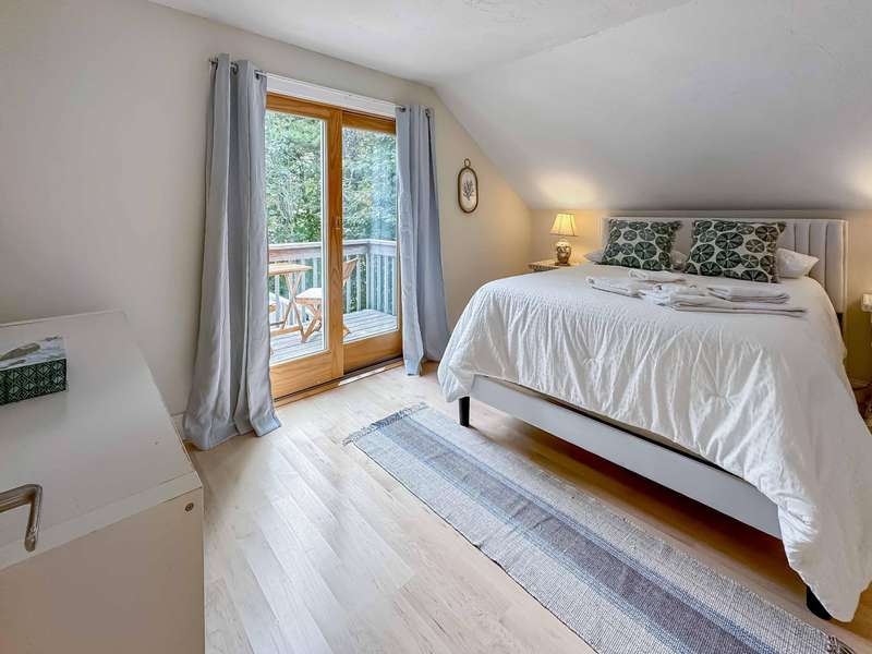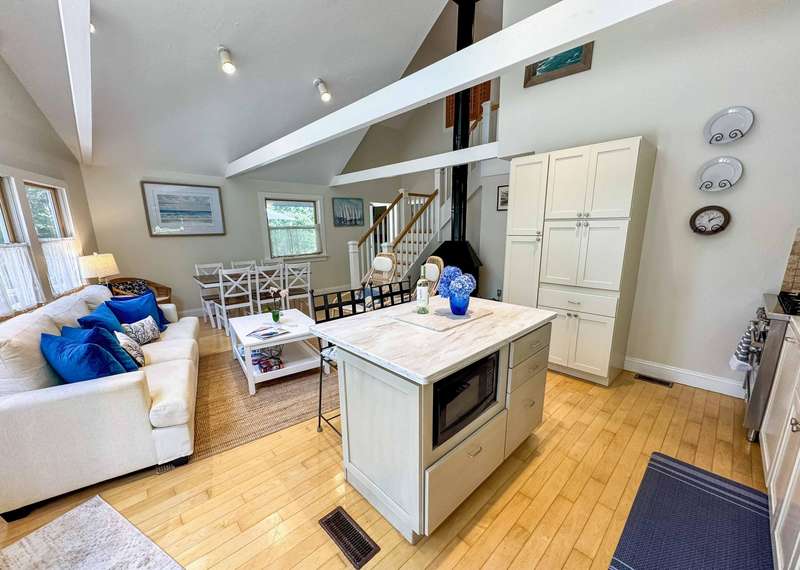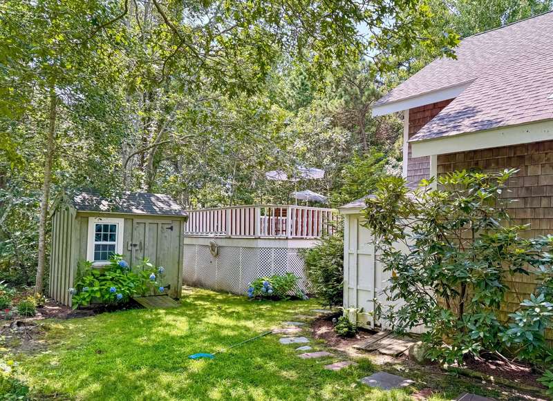KATAMA BEACH HOUSE - This turnkey Katama retreat blends coastal charm with modern comfort, offering a rare combination of location, amenities, and style. A 19-foot heated swim spa with current, and beautiful wooden deck, lets you swim year-round or unwind in the attached Jacuzzi. The property comes fully furnished, making it an effortless purchase, and boasts a strong rental history for investment potential. Recent upgrades include a new roof in 2024, a beautifully renovated tile bath in 2025, new maple floors upstairs, refreshed interiors, and updated landscaping. Inside, the sun-filled kitchen and dining area with cathedral ceilings create an inviting space for gatherings. Stainless appliances, granite countertops, and modern finishes make cooking and entertaining a pleasure. Additional benefits include central AC and heat, a primary bedroom suite with private balcony, two first-floor bedrooms and a second full bath offering convenient accessibility, and a town sewer connection for easy expansion to six bedrooms. Unique features, such as a rose-covered trellis, grape vines shading the outdoor shower, and a bluestone fire pit patio, add a peaceful, personal touch. Surrounded by decks, a stone picnic area, and wooded privacy, the property is just a ten-minute bike ride to South Beach or a short trip to Edgartown's shops, restaurants, and historic charm. Morning Glory Farm is only minutes away, offering fresh produce and baked goods. Whether as a year-round residence, vacation getaway, or proven rental property, this home is ready to enjoy from day one.