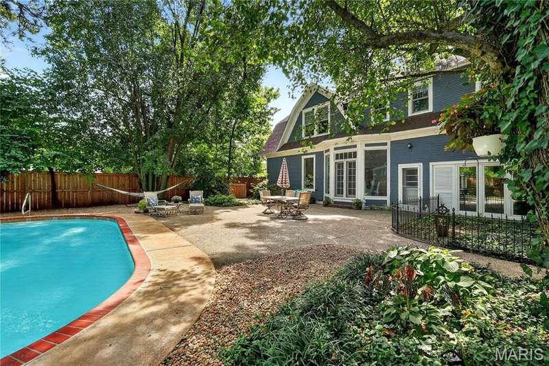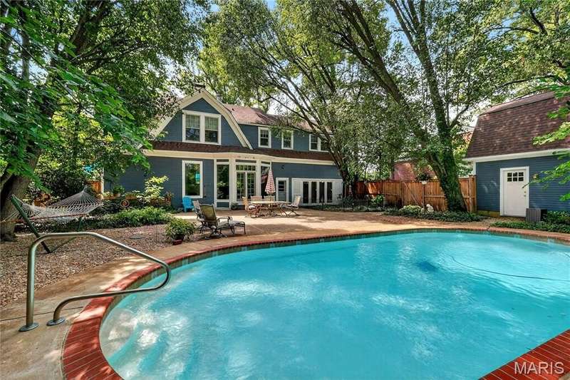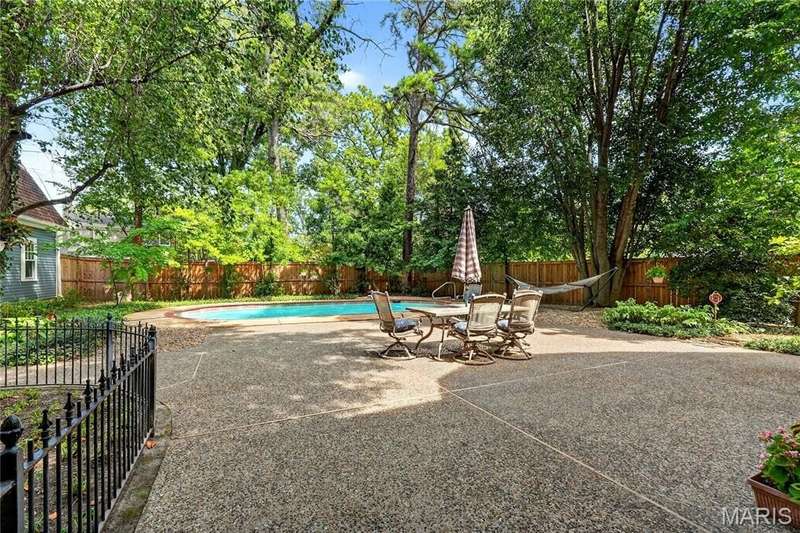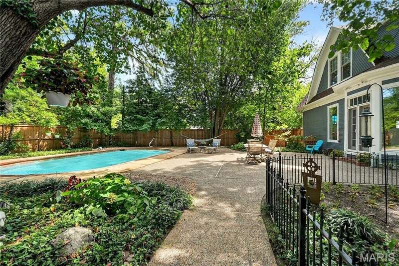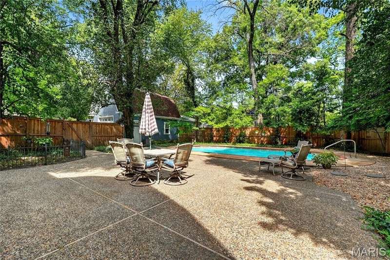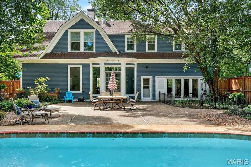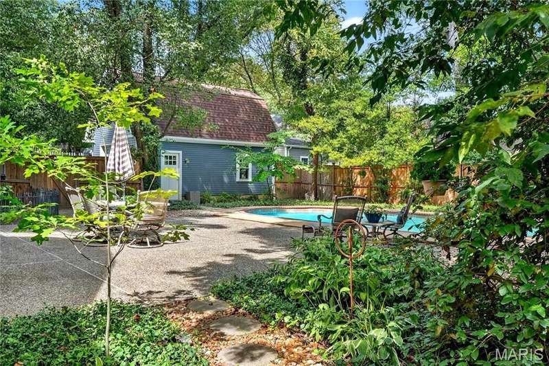 Own a piece of Ladue history with this century home tucked away in convenient location and loaded with charm, character, and updates! Built in 1895, this home was situated on acreage and in the 1930’s moved to this spot and the surrounding land was subdivided. It is currently approximately 2600 SF, with 3 generous sized BR and 2.5 baths, high ceilings, large main floor family room, newer HVAC, Renewal by Anderson windows and doors (but 2 large beautiful original windows are preserved). Tastefully updated full baths and kitchen with stainless steel appliances and breakfast area. Lots of closet space and lower level storage. Rec room in LL is multi-purpose…could be good play/hobby area or workshop/office space. A new architecturally compatible garage is every man’s dream with special flooring, good natural light from windows, and lots of storage, plus an electronic staircase drops down to access the attic space which has stand up headroom and could be usable space. Gorgeous back yard and pool with many plantings, new western cedar fencing, and wonderful privacy. You would never know you are on Ladue Road in walking distance to downtown Clayton or nearby Ladue elementary school!