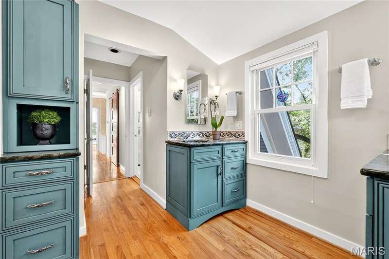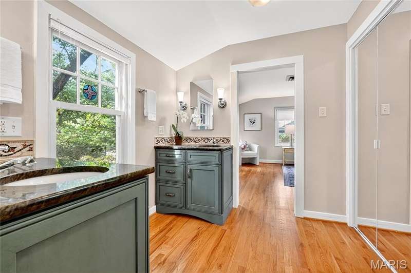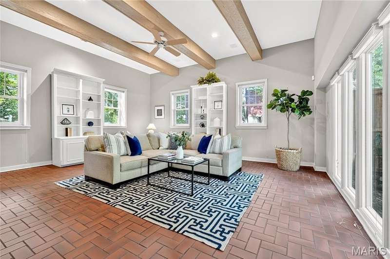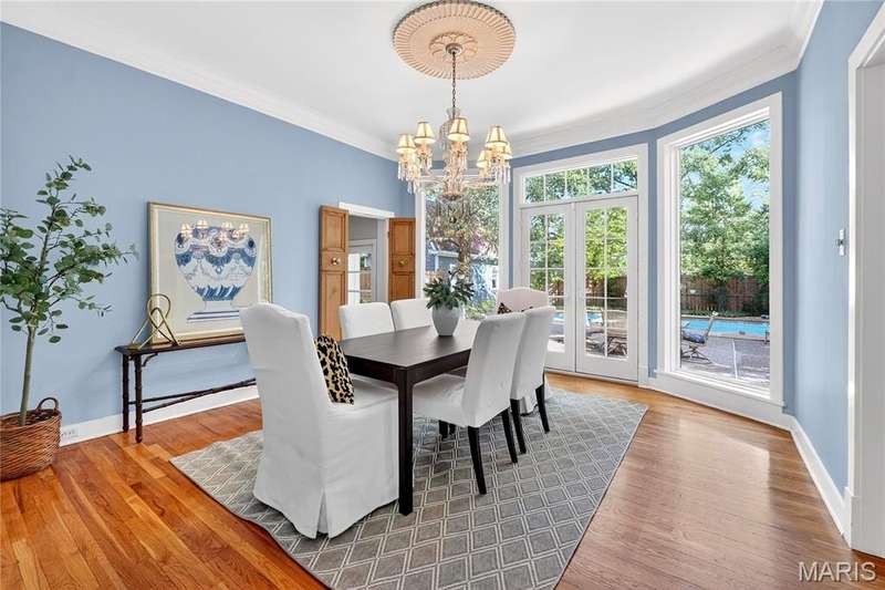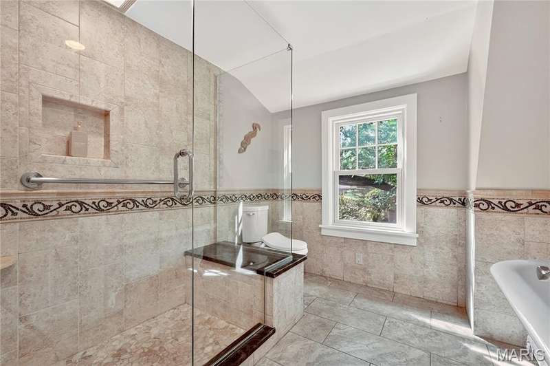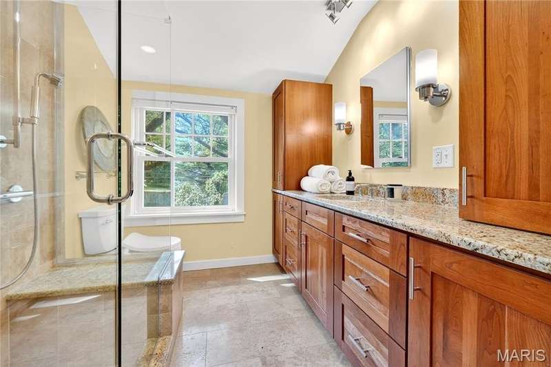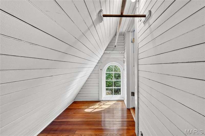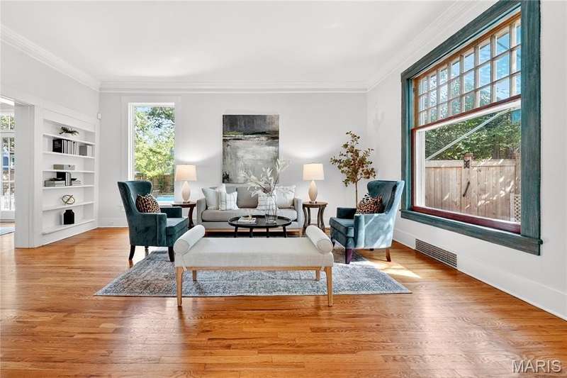 Own a piece of Ladue history with this century home tucked away in convenient location and loaded with charm, character, and updates! Built in 1895, this home was situated on acreage and in the 1930’s moved to this spot and the surrounding land was subdivided. It is currently approximately 2600 SF, with 3 generous sized BR and 2.5 baths, high ceilings, large main floor family room, newer HVAC, Renewal by Anderson windows and doors (but 2 large beautiful original windows are preserved). Tastefully updated full baths and kitchen with stainless steel appliances and breakfast area. Lots of closet space and lower level storage. Rec room in LL is multi-purpose…could be good play/hobby area or workshop/office space. A new architecturally compatible garage is every man’s dream with special flooring, good natural light from windows, and lots of storage, plus an electronic staircase drops down to access the attic space which has stand up headroom and could be usable space. Gorgeous back yard and pool with many plantings, new western cedar fencing, and wonderful privacy. You would never know you are on Ladue Road in walking distance to downtown Clayton or nearby Ladue elementary school!