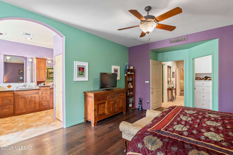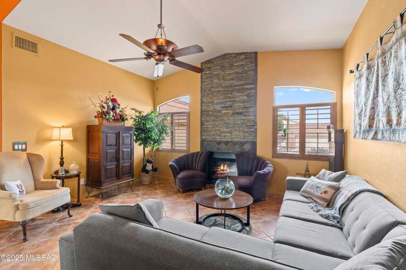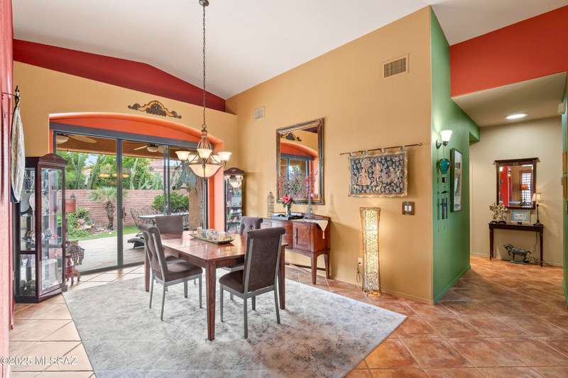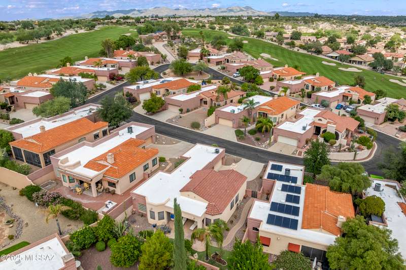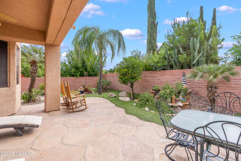 Designed for comfort and style, this move-in ready residence boasts an array of impressive upgrades and amenities (see Documents tab for full list). Enjoy stunning mountain views from the front and retreat to your own private botanical garden-inspired backyard, complete with flagstone pathways, lush desert landscaping, and a shaded, covered patio-perfect for relaxing or entertaining. Inside, you'll find thoughtful details throughout, including solar screens for rear windows for added comfort and energy efficiency, and a newer automated roller shade for ease and convenience. Enjoy the luxury of Omni Tucson National with it's competitive golf courses, restaurants, walking trails and plenty of nearby amenties.