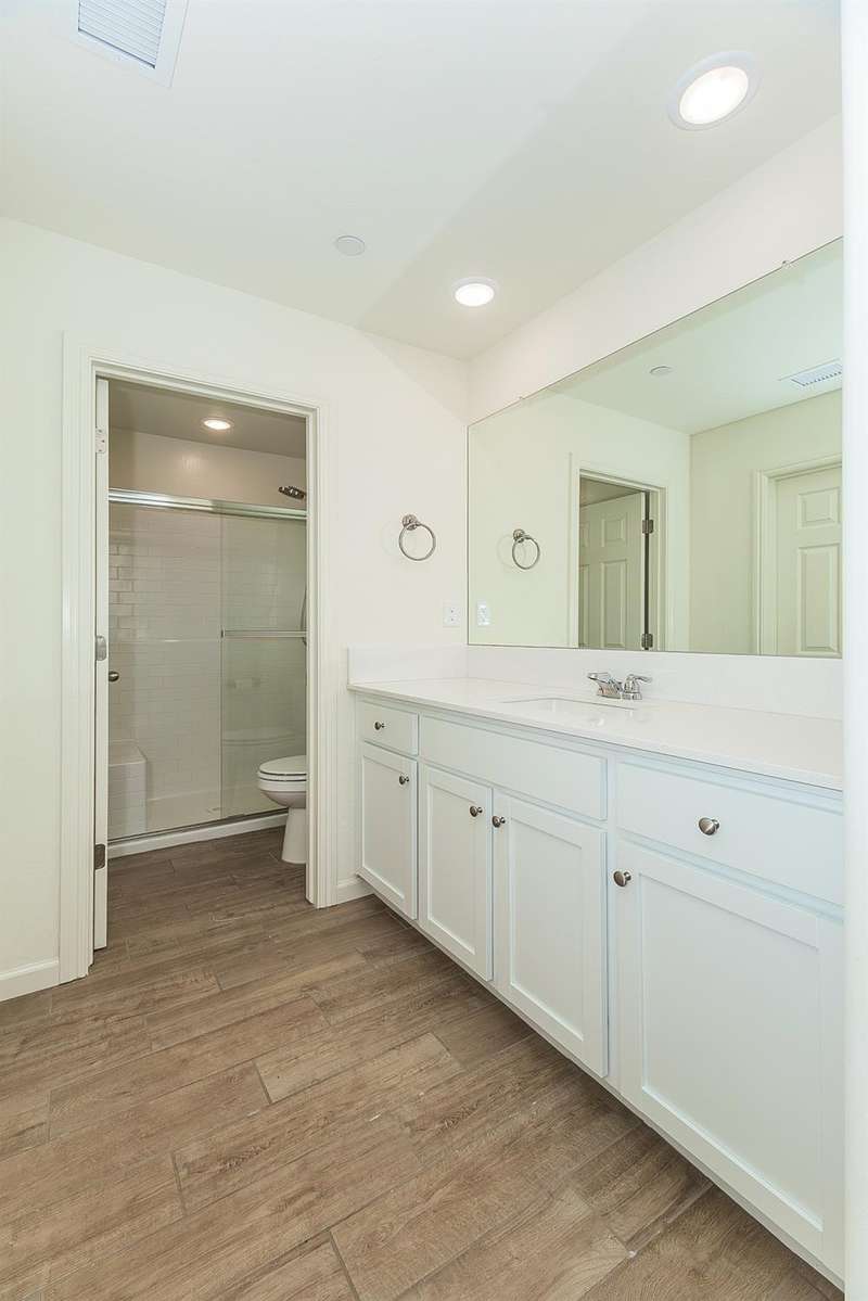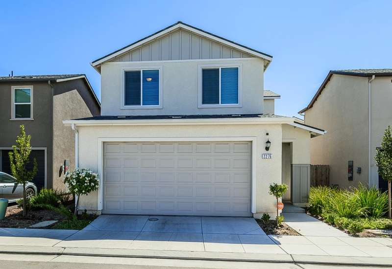 Built in 2023 by Wilson Homes, this 3-bedroom, 2.5-bath home is located in the sought-after Clovis Unified School District. The open floor plan features an abundance of natural lighting, wood-style tile flooring, and a stylish kitchen with a large island, quartz countertops, stainless steel appliances, and gas stove.Downstairs includes a convenient half bathroom and additional storage under the stairs. Upstairs, you'll find all three bedrooms thoughtfully situated, along with a tastefully finished full hall bathroom. The generous primary suite offers a large walk-in closet and an en suite bathroom with quartz countertop.Additional highlights include an energy efficient tankless water heater, solar, a 2-car garage, and extra parking stalls located directly in front of the home. Situated in a community with amenities such as gated entry, a community pool, front yard landscaping maintenance, and easy access to Highway 180, this home delivers comfort, style, and convenience.