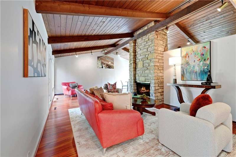 Welcome to your Drummond daydream on Dearborn! Think martinis at sunset, Sinatra on the turntable, and walls of glass that make the trees part of your living room. This isnt just a mid-century modernits a mood. Carry the mood and the martinis to the backyard and enjoy some poolside fondue. The home wraps around the wood deck, pool and lush landscaping providing a gorgeous view from every room. Then step back in through the wide sliding doors where the retro flair meets updated conveniences. The new quartz countertops, sink and faucet in the Kitchen along with the recently remodeled Primary Bath with heated floors, provide the conveniences of today's living. With equal parts architectural cool and everyday cozy, its the kind of home that makes you want to kick off your shoes, throw a dinner party, and never leave.