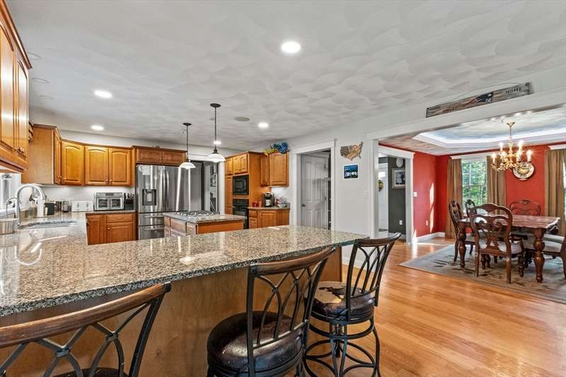 A stunning Colonial retreat offering over 5,000 sq. ft. of beautifully finished living space. Set on 1.03 acres, this 5-bedroom, 4-bath home blends timeless New England elegance with modern comfort and versatility.The family and dining rooms provide an inviting setting for entertaining, while the spacious eat-in kitchen with abundant cabinetry and a center island—serves as the heart of the home. The expansive primary suite features an en-suite bath and oversized walk-in closet. 4 additional bedrooms offer plenty of flexibility for family and guests. Hardwood floors, tall ceilings, and generous windows fill every room with natural light. The fully finished attic ideal for a recreation room or studio. The lower level features a completely renovated in-law suite with walkout perfect for extended family or guests. Step outside to your private backyard complete with 2 decks, above ground pool and everything you need to entertain, relax, and enjoy the outdoors. Come experience it yourself!