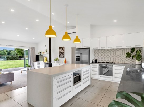 Nestled in a private rear section, this architecturally designed Greytown masterpiece is a triumph of modern luxury. From the moment you turn into the driveway, you'll know you've arrived somewhere special. Designed to maximize privacy and sun, this home offers generous proportions and uninterrupted, awe-inspiring views of the Tararua Range. Every detail of this residence reflects contemporary design and impeccable craftsmanship. Thoughtfully designed for modern family living, it boasts an open-plan layout with flexible spaces that adapt to your lifestyle. Double glazing, superior insulation, and brand-new carpeting ensure comfort and energy efficiency every season. At the heart of the home, the expansive kitchen, dining, and living area is bathed in natural light - an inviting hub for entertaining and everyday living. A second lounge offers additional space to unwind, seamlessly extending to outdoor entertaining areas for effortless indoor-outdoor flow. The home features four spacious bedrooms, each designed for ultimate comfort. The primary suite is a private retreat with a walk-in robe, a luxury tiled ensuite, and spectacular views. A beautifully appointed tiled family bathroom serves the other bedrooms, while a well-appointed guest suite provides an ensuite - ideal for multigenerational living. A cleverly designed office space with sliding doors can be configured as two separate workspaces, a fifth single bedroom, or a study/playroom. Outdoor living is just as impressive, with patios wrapping around three sides of the home, allowing you to bask in the sun all day. A dedicated play area, ample sheds, double internal-access garaging, and extensive raised vegetable beds cater to every need. For summer relaxation, take a refreshing dip in the sleek lap pool - your private oasis. Perfectly positioned at 26 Cotter Street, Greytown, this exceptional home offers comfort, space, and stunning surroundings, all within easy reach of Wellington by car or train.