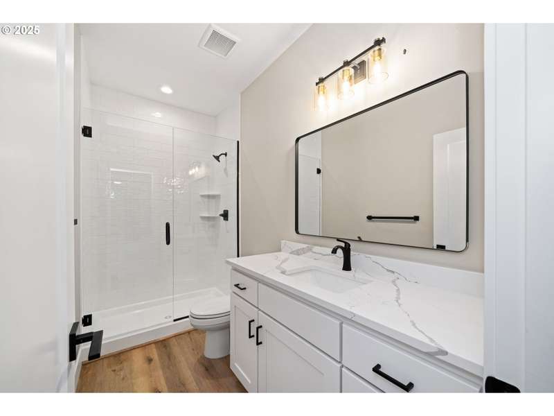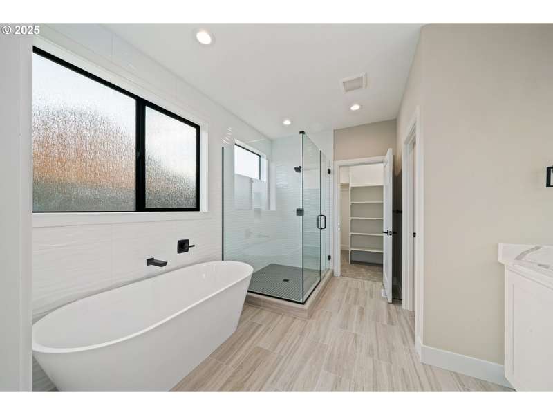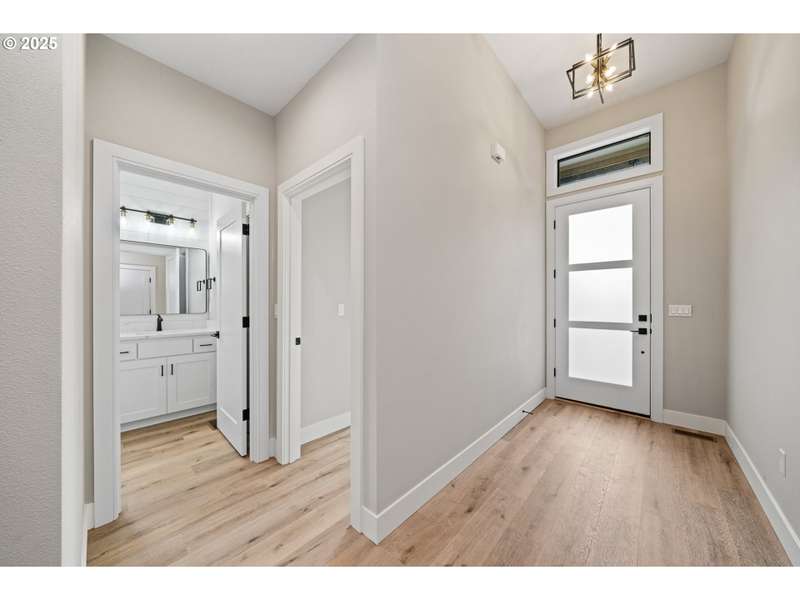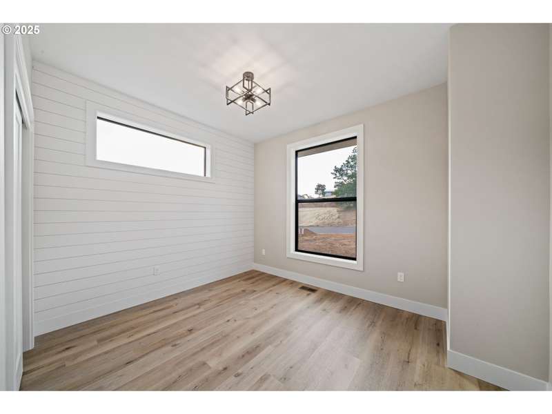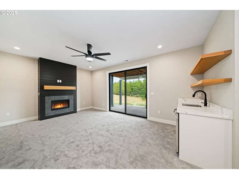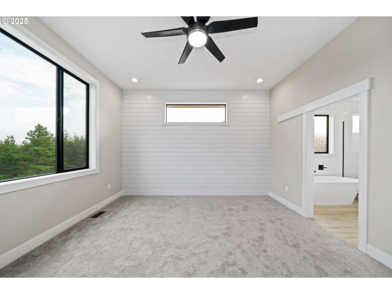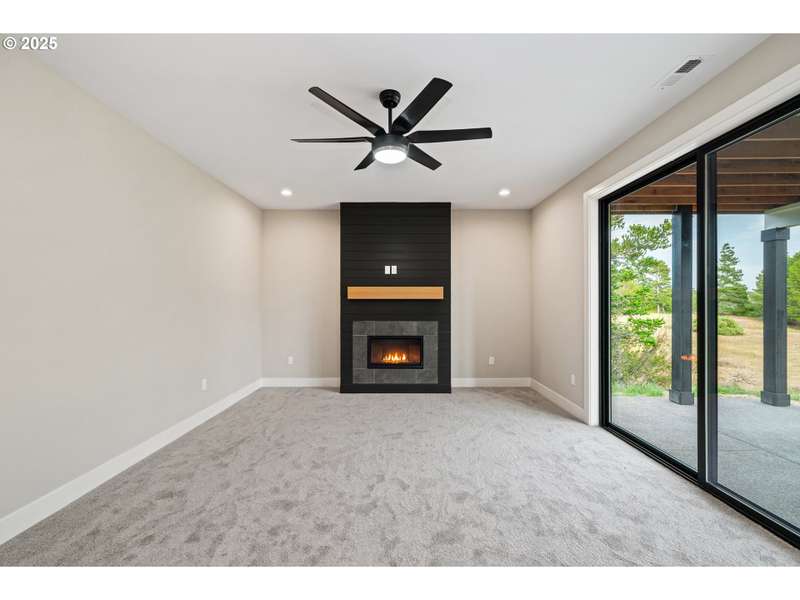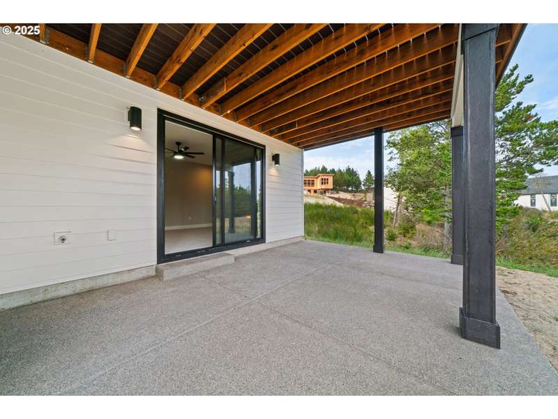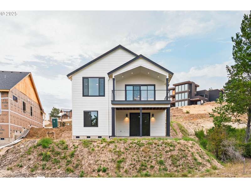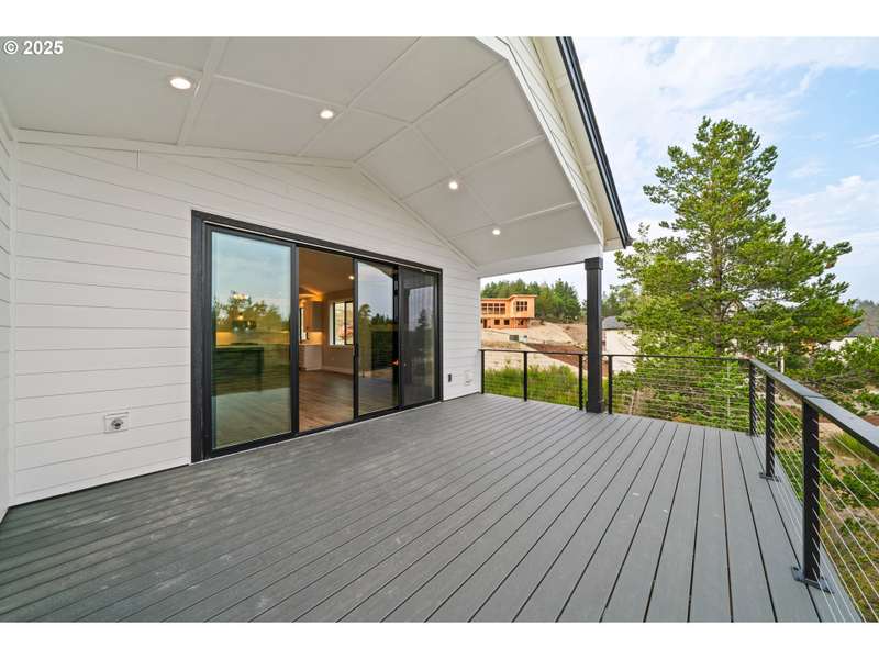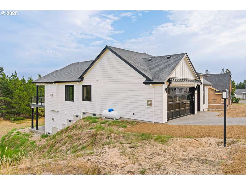 This stunning Coastal Modern Daylight Ranch, located in the newly developed "Highlands at Manzanita" subdivision, boasts modern finishes throughout, including exquisite quartz counters and stylish LVP flooring. The primary bedroom is complete with double sink vanity, a luxurious soak tub, a separate tiled shower, and a spacious walk-in closet. The vaulted great-room in this home creates a spacious and airy atmosphere, enhanced by a cozy gas fireplace and slider doors that lead to a covered vaulted deck where you can enjoy partial view of Nehalem Bay all the way towards Twin Rocks. This seamless transition from the indoor to the outdoor living area allows for easy entertainment and relaxation. The great-room opens up to the dining area and kitchen, providing a harmonious flow throughout the space. The kitchen is highlighted by a stylish island, a convenient pantry, and modern stainless steel appliances. Downstairs features a Family Room with fireplace and sliding doors to the covered patio and backyard. There is also a bedroom and full bath. The convenient location offers proximity to both the town and the beach. This impressive home is 100% complete!
