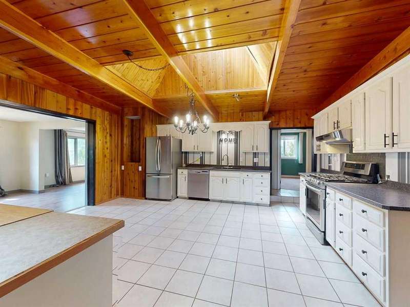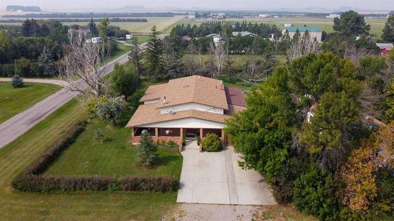 Soak in the peace and quiet of country living on this sweet acreage on a huge corner lot in Orton. Measuring just shy of 2 acres, this property checks all the boxes for your hobby farm: large farmhouse with covered wrap-around porch, large 24’ x 40’ shop / garage with power and wood stove, chicken coop and run, fenced pastures for a pony or two, lots of room for your veggie garden in great soil, and of course, excellent neighbours all around you. As you roll up to this property, the first thing you’ll notice are the wide green boulevards of Orton, all perfectly mown. Located in the centre of the community, this home was originally built as the local Mormon meeting hall for the Orton Ward in 1929. It was in use until sometime in the mid-60s when it was renovated and turned into a home. The unique character of this home draws you in with it’s cozy brick wrap-around porch and welcoming red front door. Inside you’ll immediately be taken in by the home’s high, vaulted ceilings in the front entry and living room. A handful of steps lead you to the main level, to your massive, eat in kitchen, with counter tops for miles, newer appliances including a gas stove, and enviable storage and pantry space. With the kitchen being the hub of this floorplan, to the south, you’ll find your formal dining area and living room. To the west, you’ll find your primary bedroom, complete with walk-in closet and ensuite bathroom. Head north from the kitchen to your main bathroom, three bedrooms and a large laundry and storage area, as well as outdoor access through the laundry room. A tonne of space here - over 2220sf on this floor alone! Downstairs is where the fun begins! Featuring a huge open recreation space with colourful 1950s charm, including a bar, a dinette, mural and what’s that? A British phone booth replica with a secret door?? Amazing and so much fun! The basement level also features two more bedrooms, an office space, a sauna, and a massive storage room for all your extras. And if that storage room is not enough for all your stuff, there is another basement for storage below! What’s not to love? All this could be yours in a heartbeat, with quick possession preferred. Call your favourite REALTOR® to view this property today!