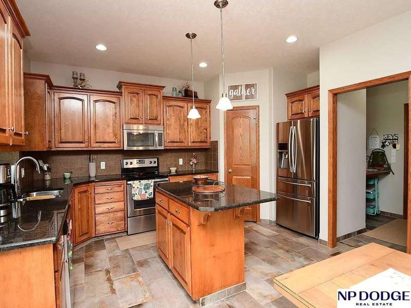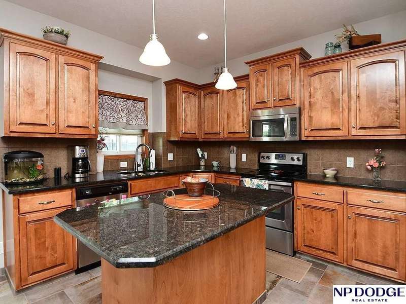 IMMACULATE Former Heavican Homes MODEL - LOADED WITH EXTRAS! This spacious 4 bedroom, 3 bath plan features exceptional custom quality! Energy efficient 2x6 walls, upgraded insulation PKG., Andersen Windows, 95% furnace, storm shelter, granite counters in kitchen and bathrooms, birch cabinets, huge walk-in pantry & mudroom. So you want more? How about a finished basement with wet bar, covered front porch and covered deck. Fully fenced back yard. Still not enough... Enjoy the sprinklers, water softner, heated garage and 2 fireplaces. Award winning Elkhorn schools. This home is truly TURN-KEY ready. Just move right in as all appliances are included. Going... GOING... Gone!