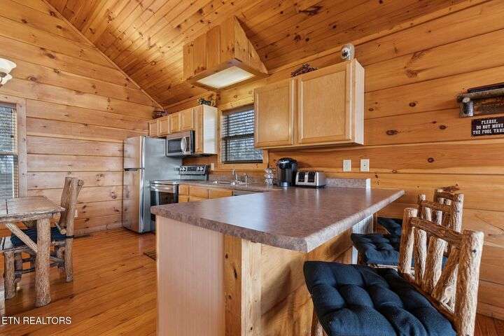 OFFERING FREE APPRAISAL OR DISCOUNTED RATE WITH PREFERRED LENDER Welcome to your perfect mountain retreat in the heart of The Great Smoky Mountains, just minutes from Pigeon Forge! This beautifully designed 1-bedroom, 2-bathroom cabin offers the ideal blend of rustic charm and modern comfort. SELLER OFFERING $6,000 IN BUYER'S CLOSING COSTS, PREPAIDS, DISCOUNT POINTS, OR BUYDOWN! Step into this charming cottage, where a well-equipped kitchen welcomes you alongside a cozy living room featuring a stone gas log fireplace. An additional living space provides extra accommodations for guests while having a full bathroom on this level ensures convenience for everyone. Step out onto the spacious porch, where you can relax in the hot tub while soaking in breathtaking mountain views. The lower level is a private master suite escape, complete with a full bathroom and direct access to its own covered porch, providing a peaceful setting to wake up to the beauty of the mountains. Whether you're looking for a personal getaway or a lucrative vacation rental, this cabin is a rare find in an unbeatable location. Don't miss out on owning a piece of the Smokies! Schedule your showing today!