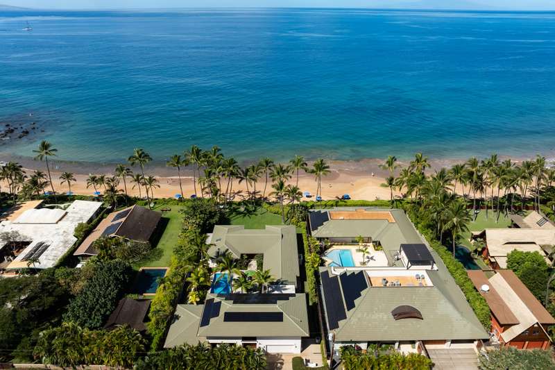 Experience the pinnacle of oceanfront luxury in this stunning, 5 bedroom, 5 bath, plus 2 half bath, 7,244 sq. ft. estate. This over a half-acre property is located within the ideal stretch of Keawakapu Beach, offering unparalleled access to Maui’s most coveted shoreline a matter of steps from the home’s living room. This architectural triumph blends contemporary elegance and convenience with the island’s natural beauty, creating a private sanctuary of sophistication and rare serenity. Designed for those who appreciate refined living and grand entertaining, this estate features 5 spacious en-suite bedrooms, multiple areas for relaxed socializing, and a seamless indoor-outdoor flow that embraces the home’s stunning pool courtyard and oceanfront experience. Every room gifts an extraordinary vantage point of paradise – between sweeping ocean views in three master suites or tranquil poolside perspectives from the guest suites. At the heart of the home, the expansive pool and courtyard form a striking focal point, linking the media room, main entry, and living areas in perfect harmony. A private poolside retreat ensures both security and discretion, ideal for intimate gatherings or large-scale entertaining. Landscaped gardens with numerous palm trees and second-level sundecks off the guest suites provide elevated spaces to soak in a front seat view of unforgettable sunsets. A spacious oceanfront lawn offers ultra-privacy, featuring a fire pit that creates an inviting ambiance, shielded from public view and accessible only through a discreet, gated beach entrance. Whether you seek a primary residence, a lavish vacation home, or an island retreat, this estate is designed for those who desire premium beachfront living with an ultimate feel of privacy. A rare opportunity to own the most memorable oceanfront lifestyle in Maui.