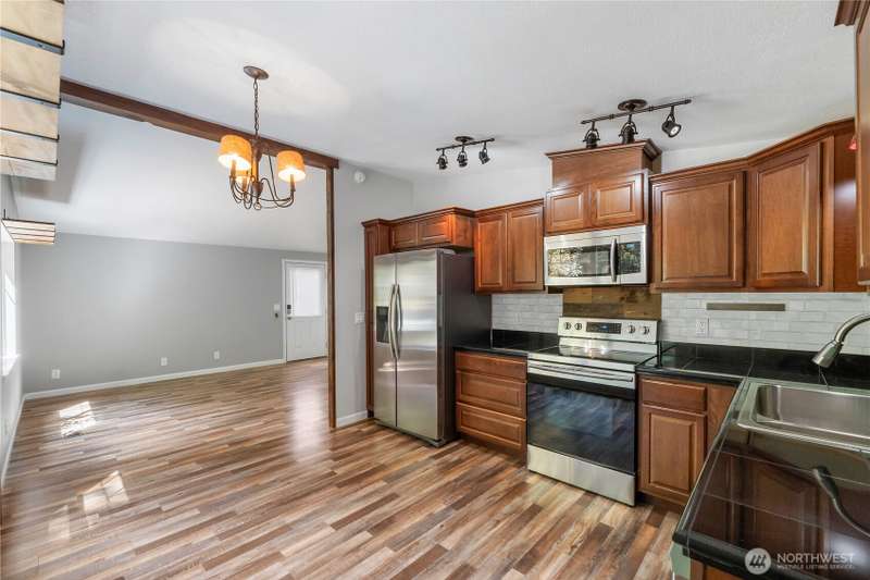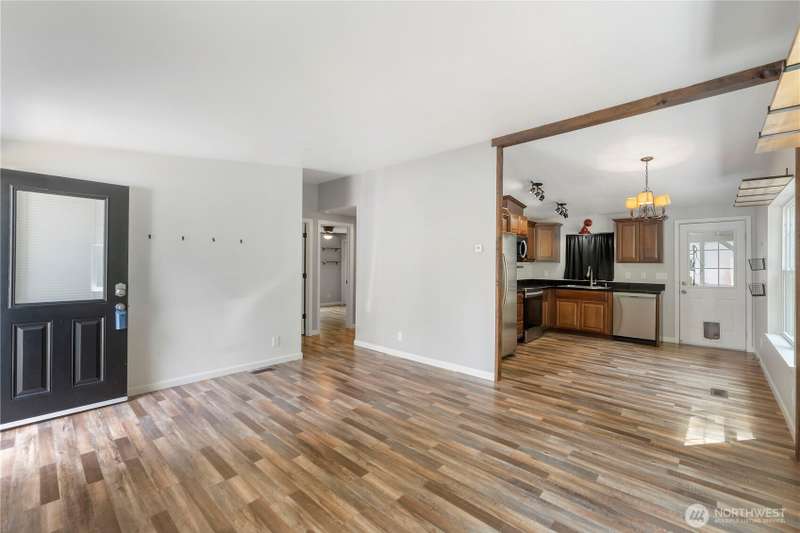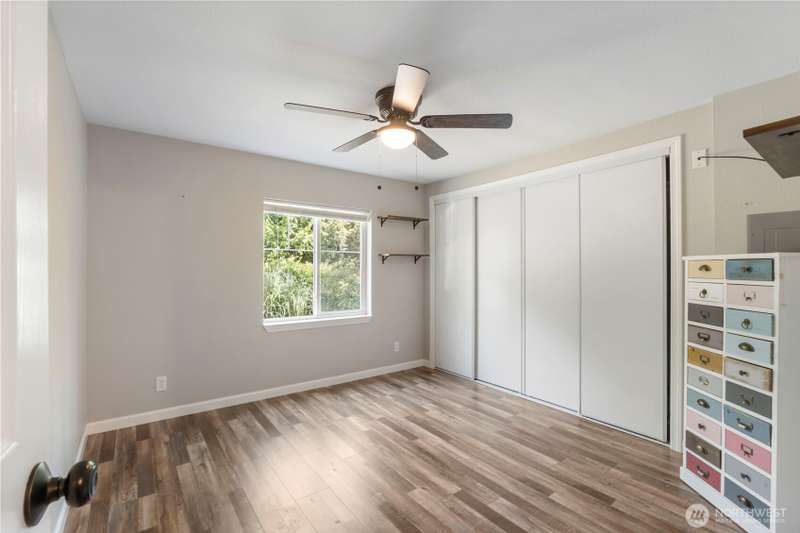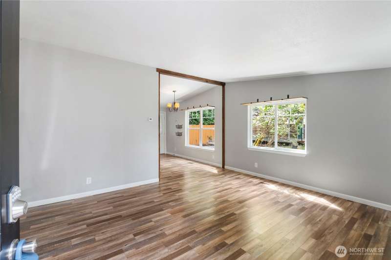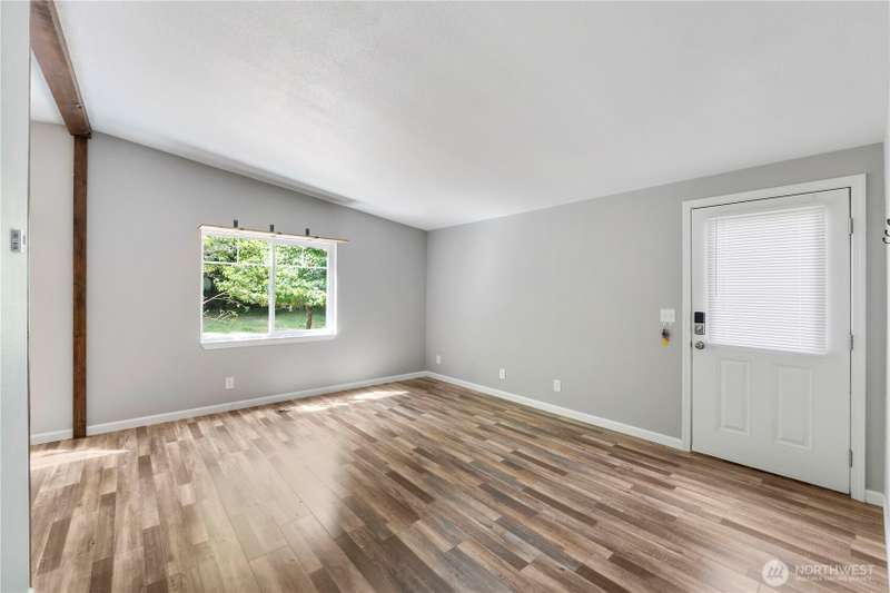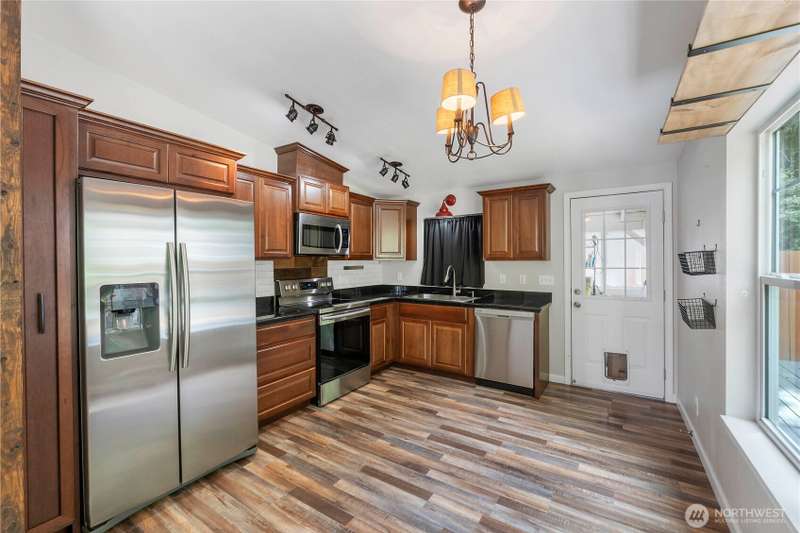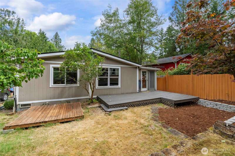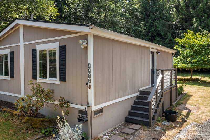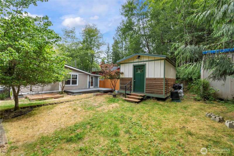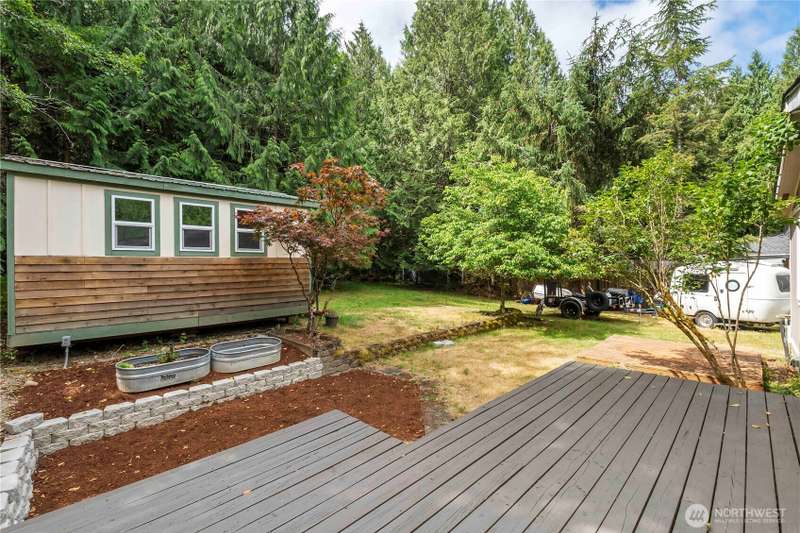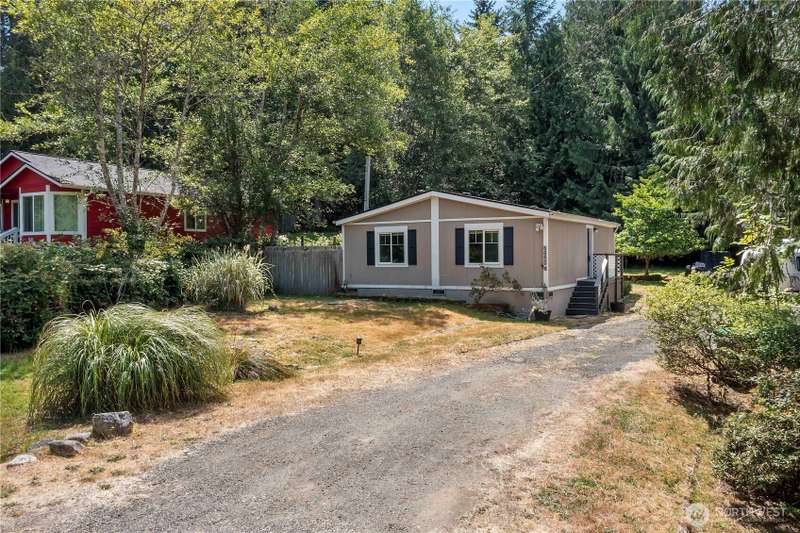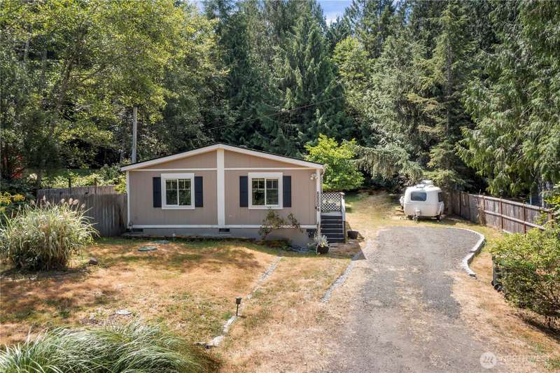 Discover affordable living in this delightful 2-bedroom, 1-bath home, perfectly positioned at the end in a tranquil, forested neighborhood. Calyon Beach Access. Large 12x16 shed is fully finished and has potential as an ADU with electricity (needs upgrade). RV PARKING. Enjoy the serenity of nature right from your doorstep, with lush evergreens and mature landscaping creating a peaceful, private retreat. Step inside to find low-maintenance laminate flooring, new heat pump & A/C to ensure year-round comfort. Sun/rec room extends living space. Newer roof & new water heater add peace of mind. Water is included in the HOA dues, Griffin School District. Enjoy the private marina w/easy access to kayaking and many other community amenities.