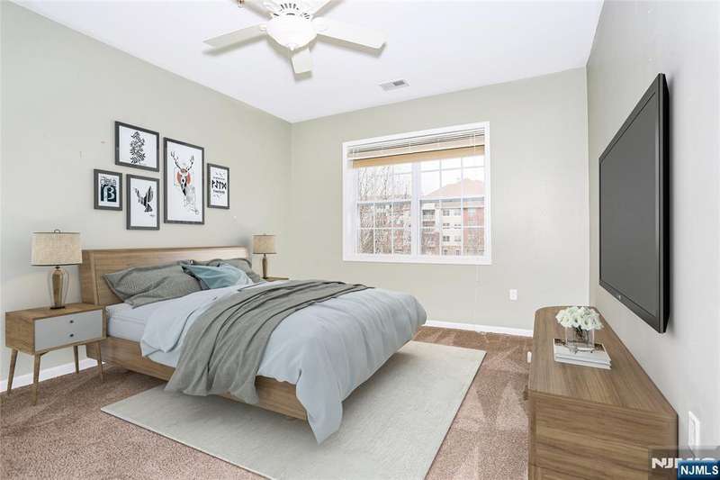 Desired building 6 across the street from the clubhouse, just painted, new flooring just installed, new water heater 2025, move-in ready unit. This is a 1768 SF Colfax model in Wanaque Reserve, a Del Webb active adult 55+ community. The home features hardwood floors, a primary bedroom ensuite with full bath, tray ceiling and WIC, 2nd BR, FB, EIK with cherry cabinets, granite countertops, and SS appliances, LR, DR, and Den with French doors. The LR sliding doors open to a private balcony. Amenities include a deeded parking spot and 24-hour security. The 20,000 SF clubhouse has a cafe, ballroom, exercise room, billiards, indoor and outdoor pools and more than 45 clubs and activities which include travel club (cruises, day trips, casino trips), tennis, pickleball, canasta, poker, golf, etc. Wanaque Reserve offers a luxurious lifestyle for its residents with a focus on modern amenities, security and a sense of community. The recent renovation adds a fresh and updated living environment.