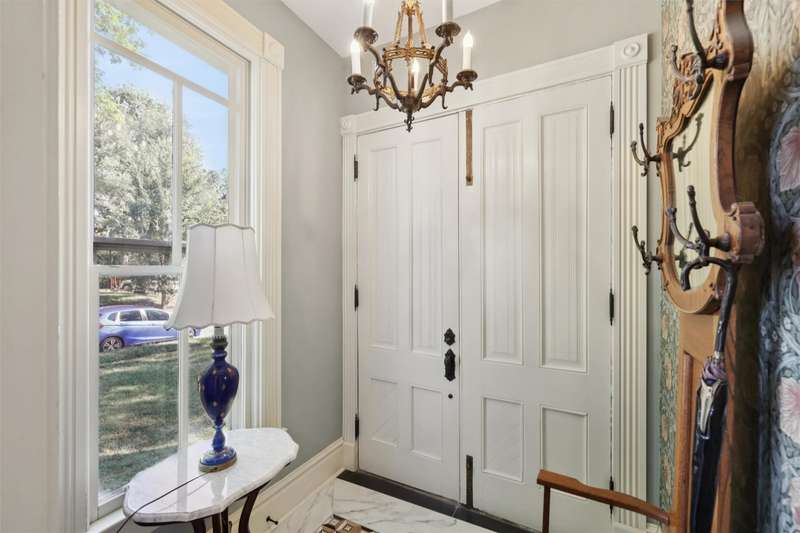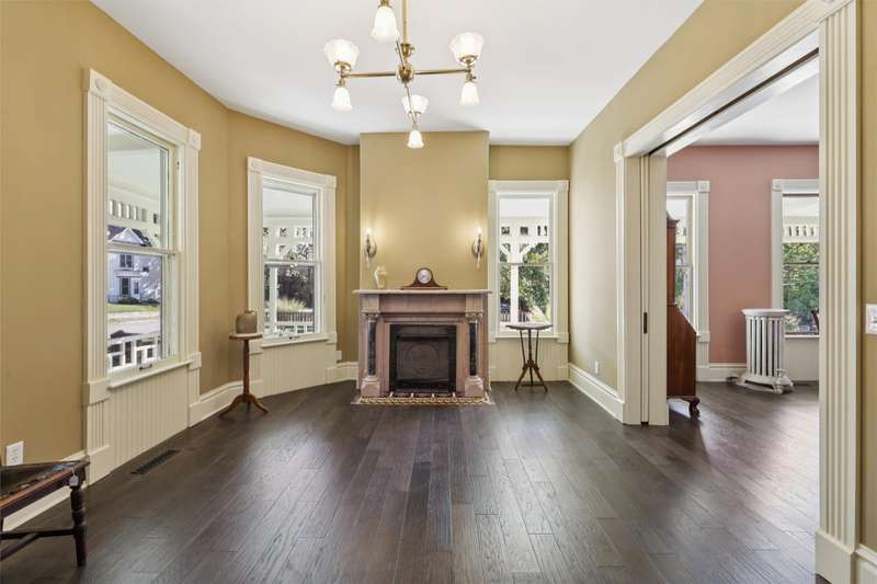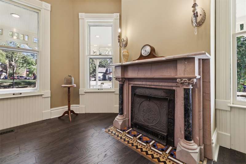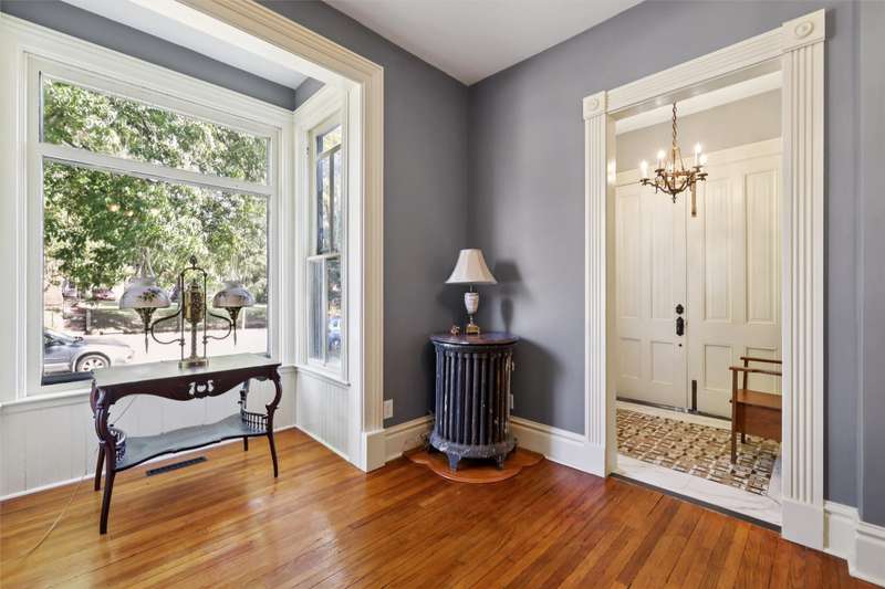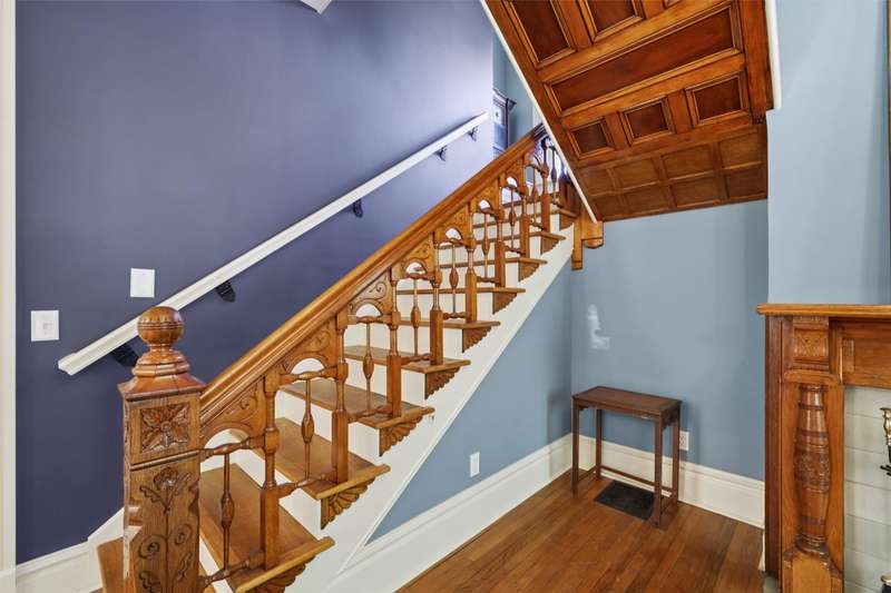 Rare opportunity! Sherman Hill 4 BR, 4 BA remodeled home on a double lot.Enter via stately double doors to an ornately tiled vestibule then into a receiving room with a classicfireplace and main staircase with extensive wood trim. Next flow into a roomy parlor area with a stunningfireplace. Notice the 8 inch base trim with two inch decorative top and the historic light fixtures. Nextenter a huge dining room and an additional room used as a family room (or 5th bedroom) and note the fullbath on this floor. The kitchen is updated in a historical manner with a large island (portable), stainlessappliances and open to a large space that could be an eating area or family room. Upstairs the primaryBR features a beautifully tiled ensuite bath, dual vanities, tiled shower and walk in closet. A second largeBR with an ensuite bath and a washer/dryer closet, 2 more large bedrooms, another bath and a secondstairway complete this floor. All tiled floors are heated! Outside note the extensive detail, ornate porch(with new footings), 4 car garage (with 2nd floor storage & 200 amp service) and flagstone patio on thesecond lot. Notable updates: spray foam insulation throughout; HVAC, plumbing & electrical (400 amp) in2011. New siding and paint in 2025.