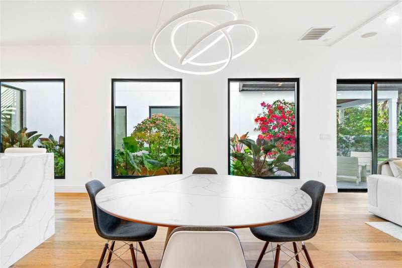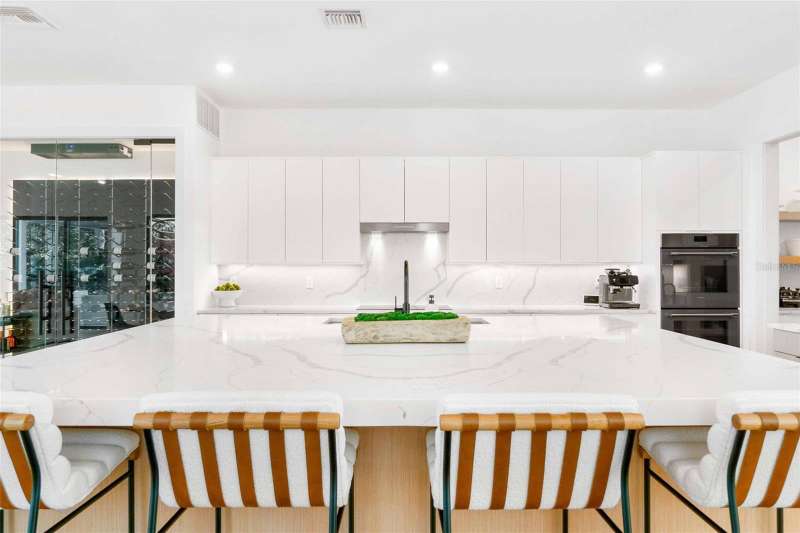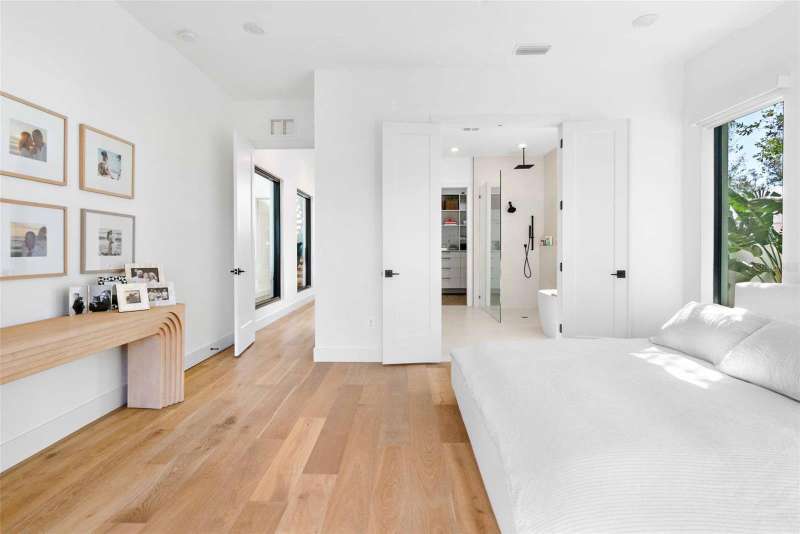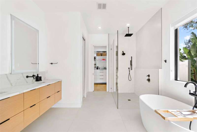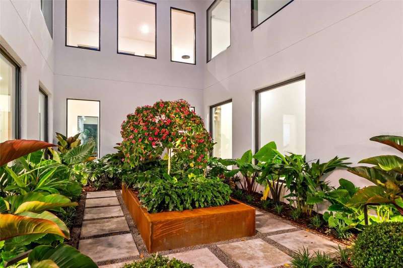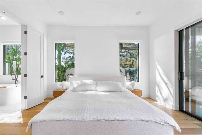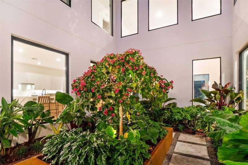 Everything you thought you needed and knew you wanted ~ elevated beyond your wildest expectations. Level up your lifestyle and longevity with these new upgrades: a custom-built professional grade ProTee golf simulator, two person Equinox infrared sauna, and a Renu Therapy outdoor cold plunge tank. This newer construction luxury home in Sarasota is nestled perfectly between Southgate, Arlington Park and Cherokee Park and is walking distance to Southside Elementary school. The entirety of the 5,461 square feet of total living area is a contemporary masterpiece offering expansive and seamless indoor/outdoor living spaces flooded with natural light and subtle sophistication. The exterior boasts a sleek, minimalist design, featuring a blend of clean lines, large glass windows and natural stone. An attractive, welcoming front door opens to a breathtaking, soaring entryway where the striking natural wood floors draw the eye further toward the dramatic, floating staircase flanked by modern metal railings. The state-of-the-art kitchen is equipped with top-tier finishes, including Thermador appliances, a climate controlled 300-bottle wine cellar, custom cabinetry and a massive island draped in quartz countertops. Staying organized and tidy while cooking for you or a crew is simple in the oversized pantry with appliance storage and prep countertops. Entertaining is a breeze with conversation flowing throughout the spacious yet cozy living area. Gaze through the oversized glass windows with views of the tropical courtyard, the invitation to step through the glass sliders to the expansive outdoor patio and backyard oasis. Serve your coastal cuisine indoors or outdoors as the patio offers an additional al fresco cooking space overlooking the spa and pool boasting crystal blue water sprawling between the dual covered patios. Refresh from your dip in the pool in the outdoor shower and cabana bath. After a day of outdoor adventure and relaxation, the nightly feature can take place in the dedicated home theater with a 4k projector and 10 surround sound speakers. This home offers first and second floor primary suites and two additional, generously sized bedrooms. The primary suites offer luxurious, spa-inspired baths while the additional bedrooms each access a full bath. The two-car side load garage is convenient, the professional landscaping and accent lighting in and around the home create an opulent ambiance, while the 20-seer, 4-Zone Infinity HVAC system will keep your cool in the Florida summers. Custom comforts and peace of mind are integrated throughout with a 21-foot elevation above sea level, hurricane-rated impact windows and doors, mosquito misting system, luxury fixtures and finishes, smart home technology and level 5 drywall finish. With ideal proximity to shopping, dining, premier beaches and the best of Florida’s golf courses and outdoor recreation, this dream home offers the perfect blend of modern amenities, casual comfort and the ultimate coastal lifestyle.