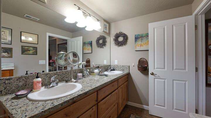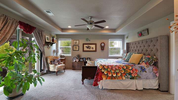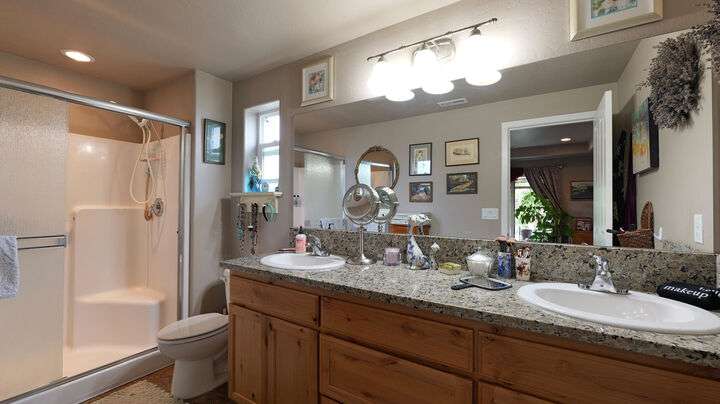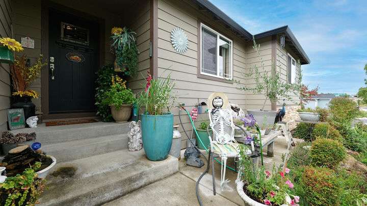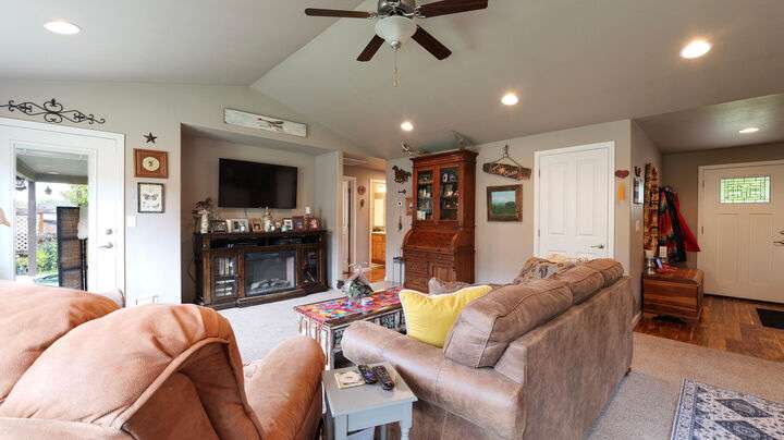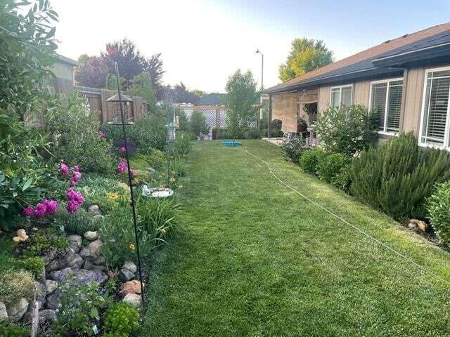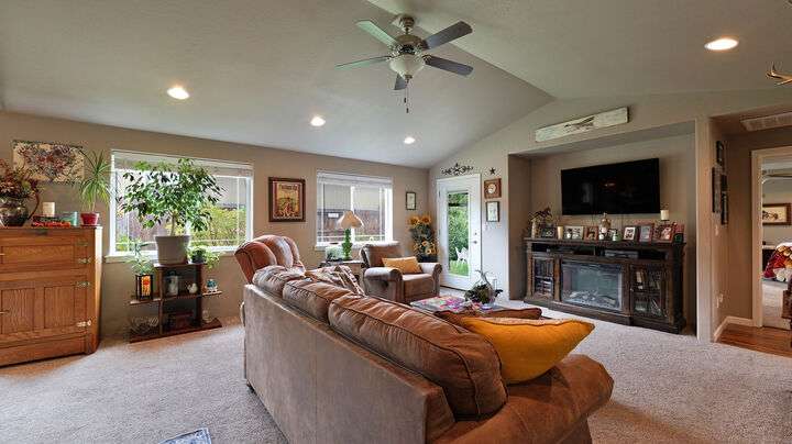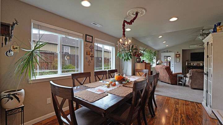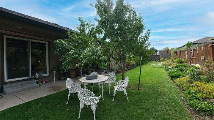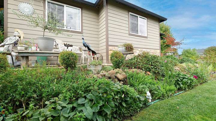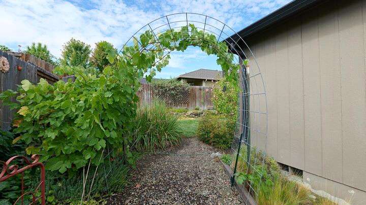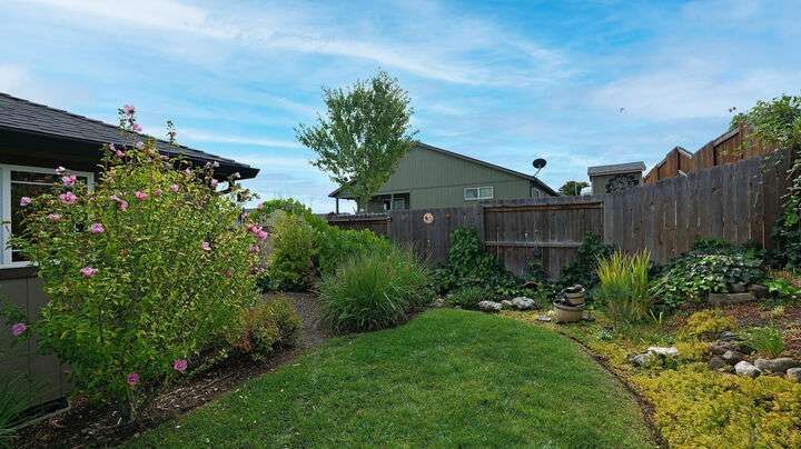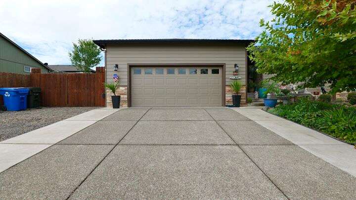 Custom single Story 3 bed, 2 bath home on a spacious .20-acre corner lot with over 1,700 sq. ft. of living space. Ample parking, including room for an RV or toys, plus an oversized 2-car garage. Beautifully landscaped with mature plants and a peach tree, the front and back yards are designed for both peaceful relaxation and entertaining. Inside, enjoy a chef's kitchen featuring granite countertops, custom cabinetry, and an open floor plan that fills the home with natural light. Luxurious carpet and custom wood flooring throughout. The massive primary suite offers a walk-in closet and private access to the backyard. Move-in ready and meticulously maintained with no HOA. Located near great schools and all that Eagle Point has to offer, this home is the perfect blend of comfort, functionality, and style.