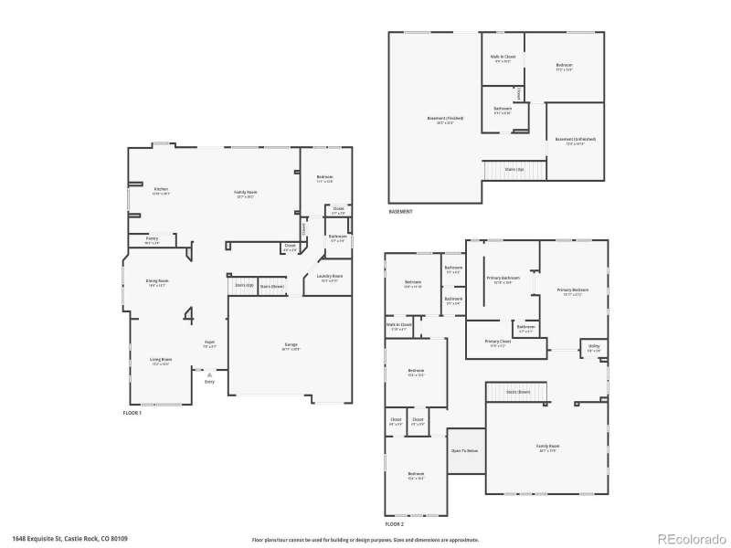 A home in Castle Rock with 5700 finished square feet under $850,000?!?!? Welcome to 1648 Exquisite St, a spacious and beautifully designed home nestled at the end of a quiet cul-de-sac in one of Castle Rock's most desirable neighborhoods. This residence offers the perfect balance of room to spread out and thoughtfully designed comfort for everyday living and entertaining. Inside, you'll find four versatile family/living rooms-ideal for a media room, playroom, home office, or additional gathering space. The kitchen is expansive, featuring generous counter space, abundant cabinetry, and an open flow into the large main living area-perfect for hosting and connecting with loved ones. Whether you're relaxing in one of the multiple family spaces or entertaining in the open-concept kitchen and living area, this home offers flexibility and functionality for families of all sizes. With 1 main floor bedroom or office, 4 Total bedrooms upstairs and an additional bedroom in the basement, this home has all of the space you need! Located close to parks, trails, shopping, and top-rated schools, this is Colorado living at its finest. Come see what makes this home so special-schedule your showing today!