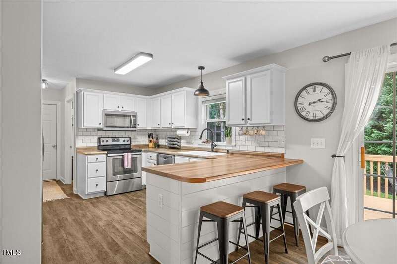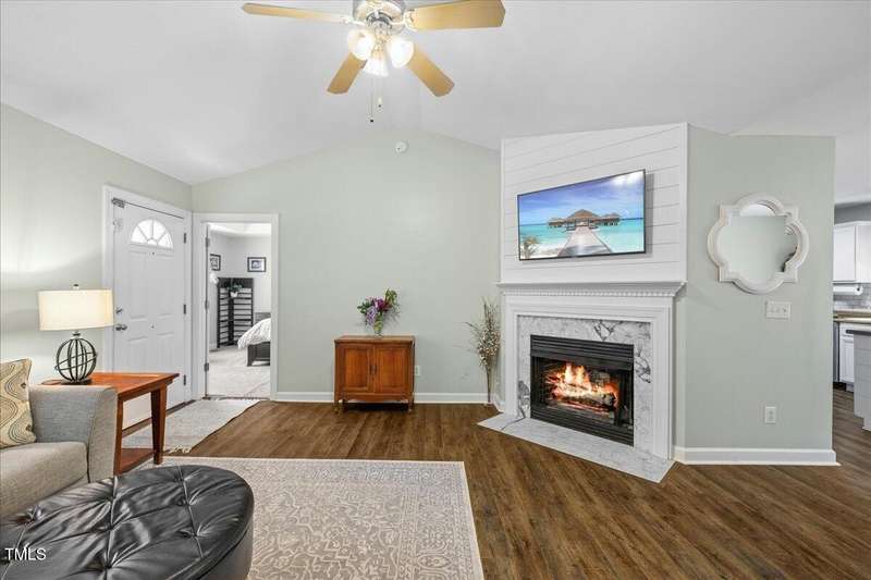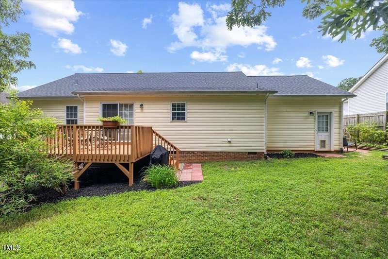 Welcome home to Groveton Trail, a charming ranch perfectly positioned in the heart of Downtown Wake Forest. NO HOA!!! This 3 bed, 2 bath beauty offers 1,429 square feet of thoughtfully designed living space that blends comfort, style, and functionality. From the moment you arrive, the welcoming rocking chair front porch sets the tone as a relaxing spot to unwind with your morning coffee. Step inside to an open-concept layout where natural light fills the living room, anchored by a cozy fireplace. The kitchen is a standout with stainless steel appliances, with a gorgeous butcher block look on the countertops, a pantry, and ample storage, making it both beautiful and practical for everyday living. The spacious primary suite is tucked away for privacy and features an en-suite bath and a generous walk-in closet. Two additional bedrooms provide flexibility for guests, a home office, a bonus room, or hobbies. The fully encapsulated crawl space adds an extra layer of comfort, efficiency, and peace of mind. Out back, a large deck overlooks a backyard that truly stuns: fully fenced, beautifully maintained, and ready for gatherings, gardening, or playtime with pets. Whether you are entertaining friends or enjoying a quiet evening under the stars, this outdoor space delivers. And the location? It doesn't get better than this. You are moments from greenways, dog parks, shopping, dining, and the charm of Downtown Wake Forest. This home offers the best of both worlds... small-town warmth with easy access to modern conveniences. Don't miss your chance to make 521 Groveton Trail your next chapter. Schedule a showing today and see why this home is one you will not want to leave!