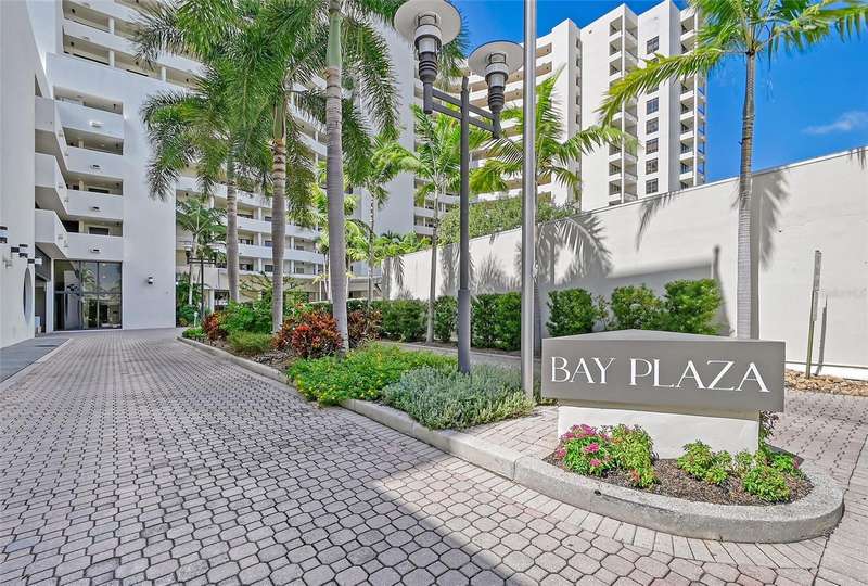 For LEASE or PURCHASE. Rarely available unfurnished 3 bedrooms, 3 bathrooms in Bay Plaza. The exquisite renovations are now completed offering a beautiful modern decor. This Bayfront building is located on Palm Avenue in the core of downtown Sarasota. This fabulous unit features 2042 sq. ft, 3 balconies with gorgeous water views of Sarasota Bay, 2 parking spaces, EV charging stations, 2 new A/C units, impact resistant windows, motorized shades, multiple built-in closets, custom lighting, wood floors, and porcelain tiles. You'll enjoy a gourmet kitchen with new Bosch appliances, custom white cabinetry, Quartz countertops, breakfast area. The spacious primary bedroom has 4 closets, a luxurious bathroom, and a private balcony. A split plan concept for privacy, the 2ndbedroom is en-suite. The 3rd Brm/Den has access to its own balcony, a large closet and a detached full bathroom. Bay Plaza offers State-of-the art amenities including a heated lap pool & spa, steam room, sauna, fitness room, 24 hour concierge service, valet parking. Perfectly located across from Marina Jack, the bayfront, and surrounded by restaurants, shops, theaters. It is a 5 minute drive to Lido Beach and St. Armands Circle, a short distance to the airport.