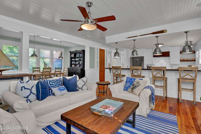 Turnkey coastal living at its finest. Welcome to 15 Surfboat Court, an exceptional home in the sought-after Keepers Landing neighborhood on Bald Head Island. Thoughtfully upgraded and meticulously maintained, this 3-bedroom, 3-bath retreat blends modern convenience with effortless island charm.The home features a designer kitchen by Chris Lokey with a Thermador 6-burner stove, Bosch appliances with professional handles, a custom vent hood, Restoration Hardware pendant lighting, a Sharp microwave drawer, a wine and beverage refrigerator, and a mini freezer tucked into the pantry.The improvements continue with a new roof, updated siding, and fresh interior and exterior paint. All three bathrooms have been fully modernized with Kohler fixtures, designer lighting, and spa-inspired details. Custom touches throughout include built-in TV cabinets in each bedroom, a new king-size Pottery Barn bed, and surround sound in the living area with a Denon receiver for entertainment.Peace of mind comes with a tankless water heater, newer HVAC system, and recently replaced washer and dryer. A 6-passenger golf cart makes island travel simple and fun. Outdoors, the addition of new furniture and a custom dining table creates a perfect setting for enjoying breezy evenings in comfort.With the benefit of a recent home inspection and a history of never being rented, this property is a rare findmove-in ready and carefully maintained for private enjoyment. As part of Keepers Landing, owners enjoy access to the private saltwater marsh dock, perfect for kayaking, paddle boarding, or simply soaking in the views.Experience the perfect blend of modern updates and island charm at 15 Surfboat Court.Shoals Club Membership available for separate purchaseHome conveys furnished (with noted exclusions) and with a 6-passenger golf cart