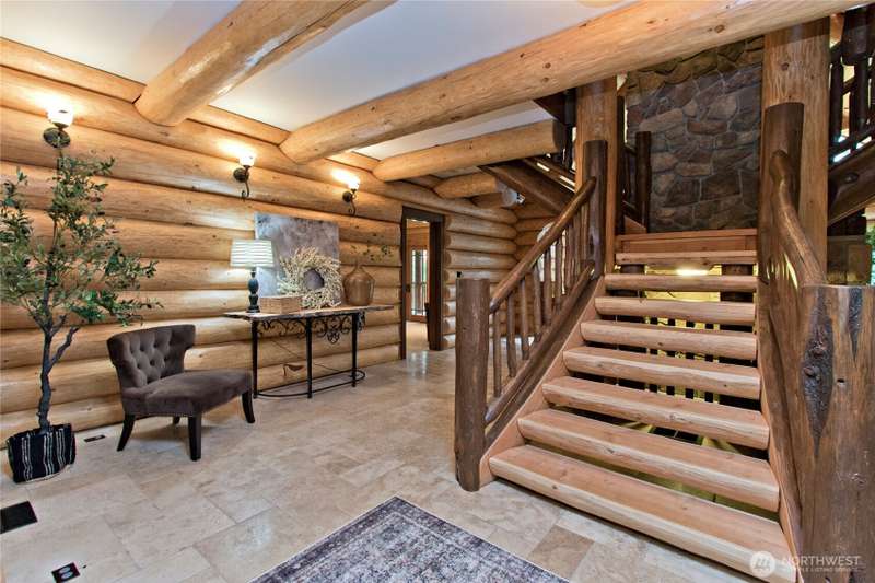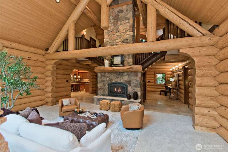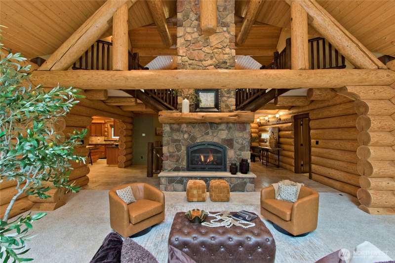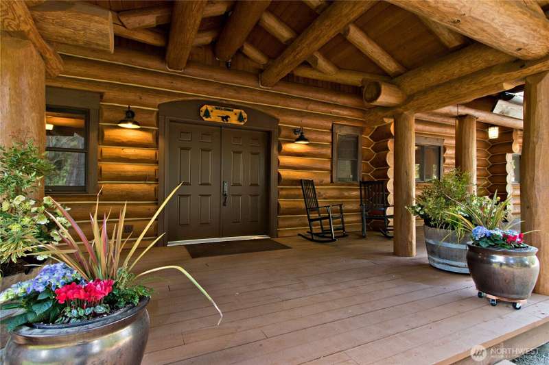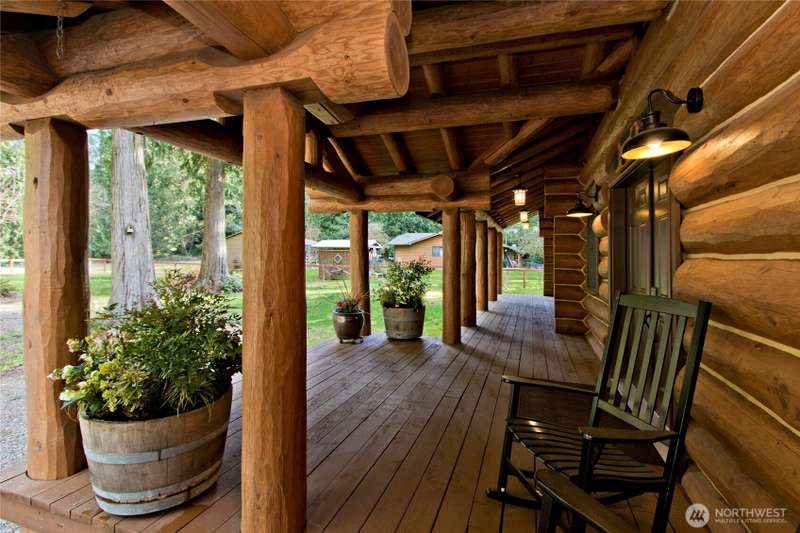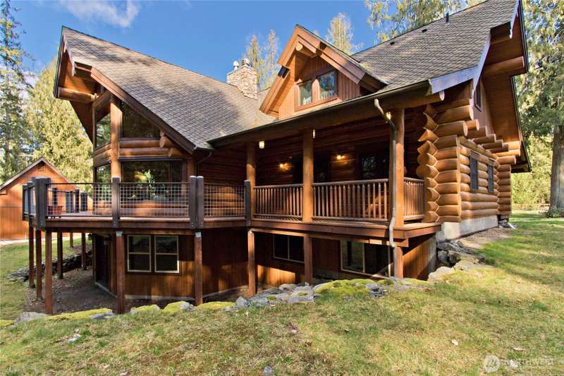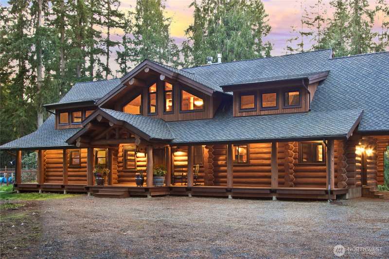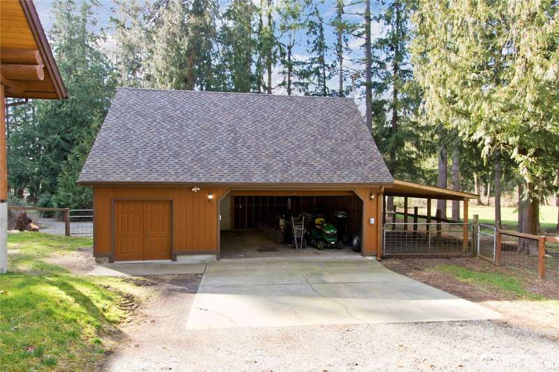 Indulge in this unparalleled spanning custom built luxury 5,000+ sq ft 5 bedroom log home on 1.25 acres with a detached garage/shop. Vaulted ceiling with floor to ceiling windows giving natural light and a pasture view to flow through. No corners cut on this home with the travertine floors, chefs kitchen with DCS appliances, chiseled edge granite counter tops, built-in pullouts. Main level primary with French doors opening to the deck. Upstairs boasts 2 massive bedroom with each their own bathrooms and a loft. Down stairs is another 2,160sq ft of living space. It has been framed and plumbed for bathroom, kitchen and bedrooms. The detached garage has two covered stalls behind it. The property is set up for animals as well.