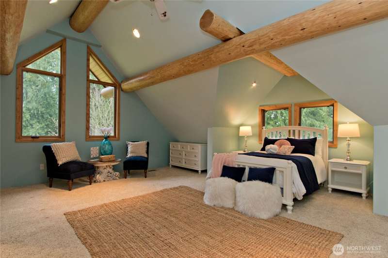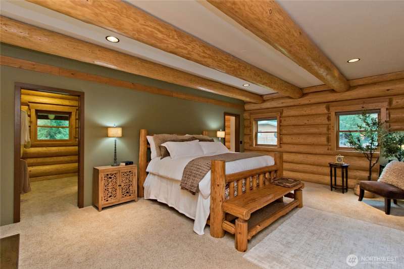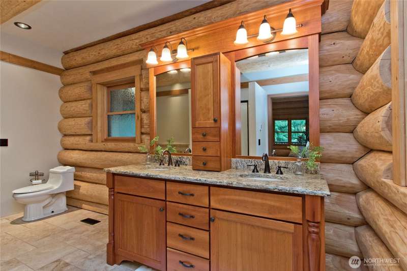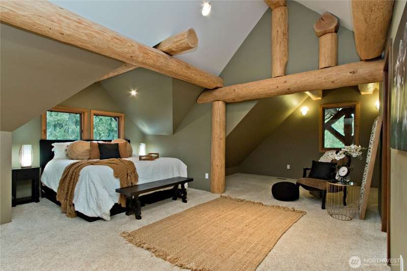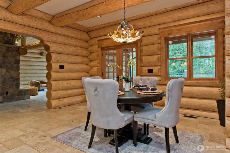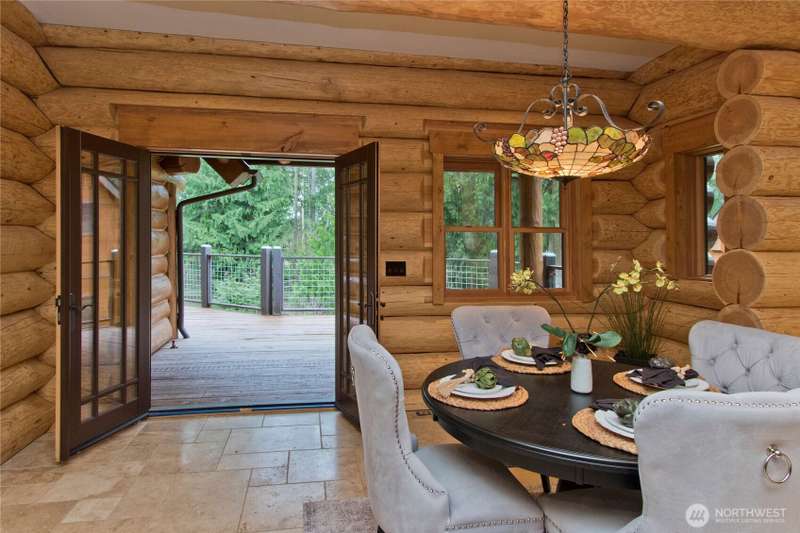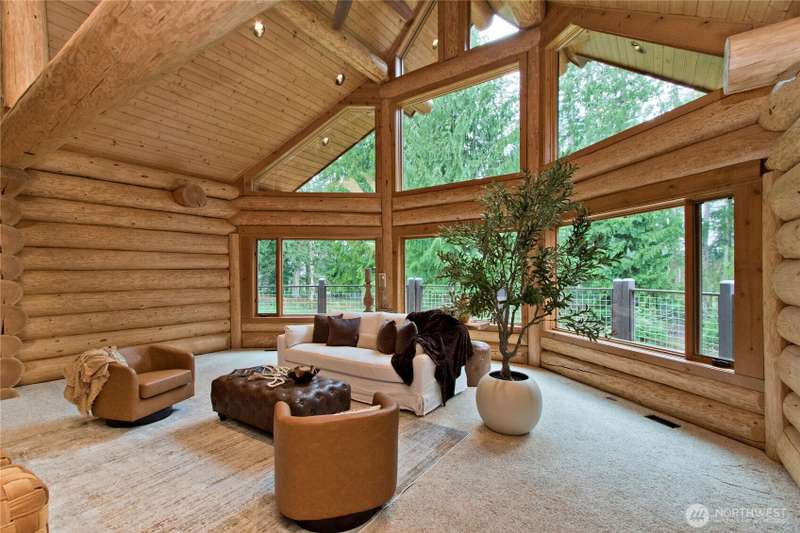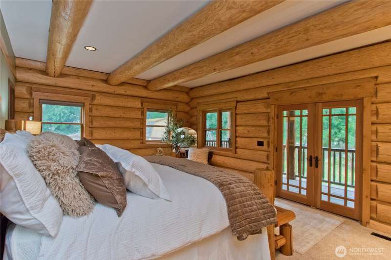 Indulge in this unparalleled spanning custom built luxury 5,000+ sq ft 5 bedroom log home on 1.25 acres with a detached garage/shop. Vaulted ceiling with floor to ceiling windows giving natural light and a pasture view to flow through. No corners cut on this home with the travertine floors, chefs kitchen with DCS appliances, chiseled edge granite counter tops, built-in pullouts. Main level primary with French doors opening to the deck. Upstairs boasts 2 massive bedroom with each their own bathrooms and a loft. Down stairs is another 2,160sq ft of living space. It has been framed and plumbed for bathroom, kitchen and bedrooms. The detached garage has two covered stalls behind it. The property is set up for animals as well.