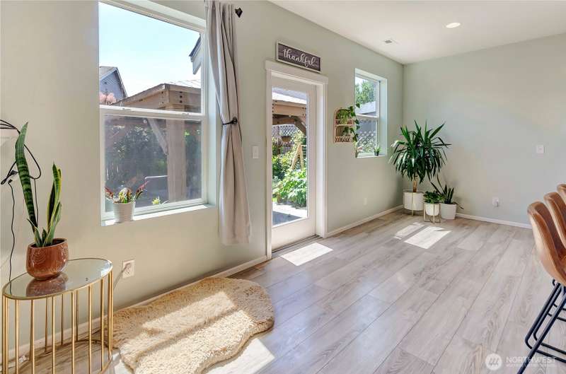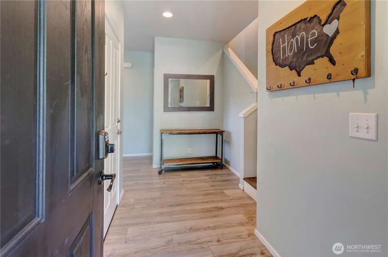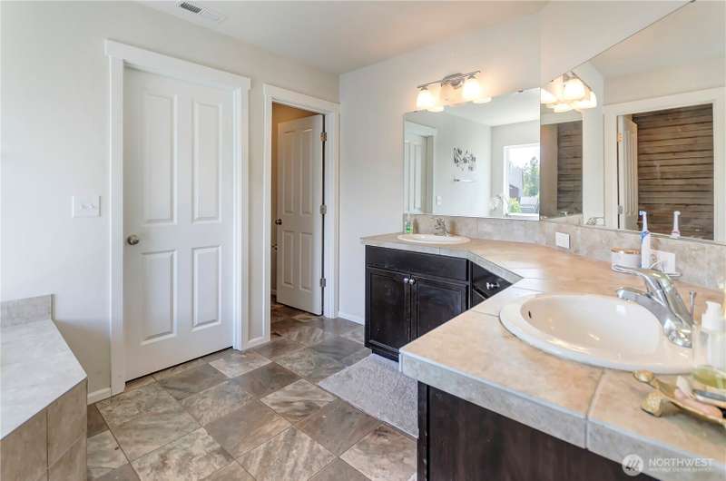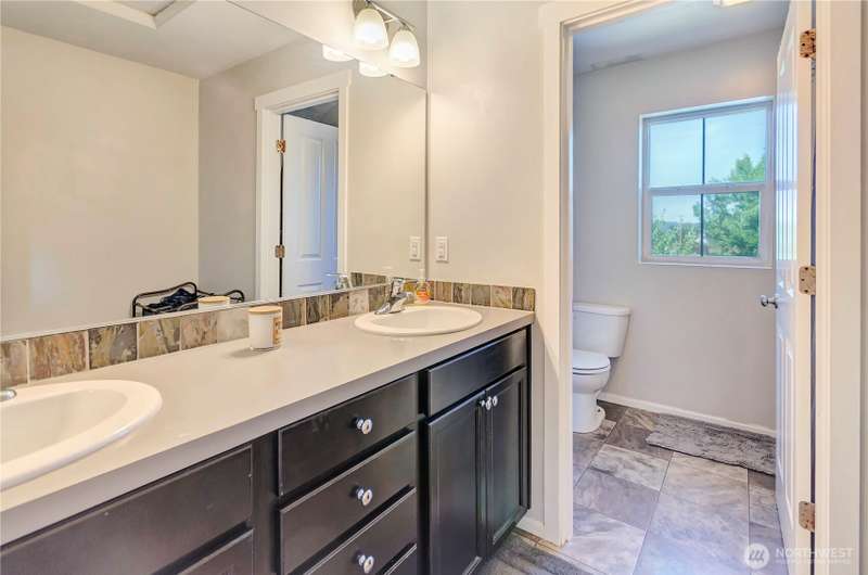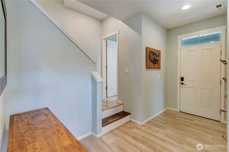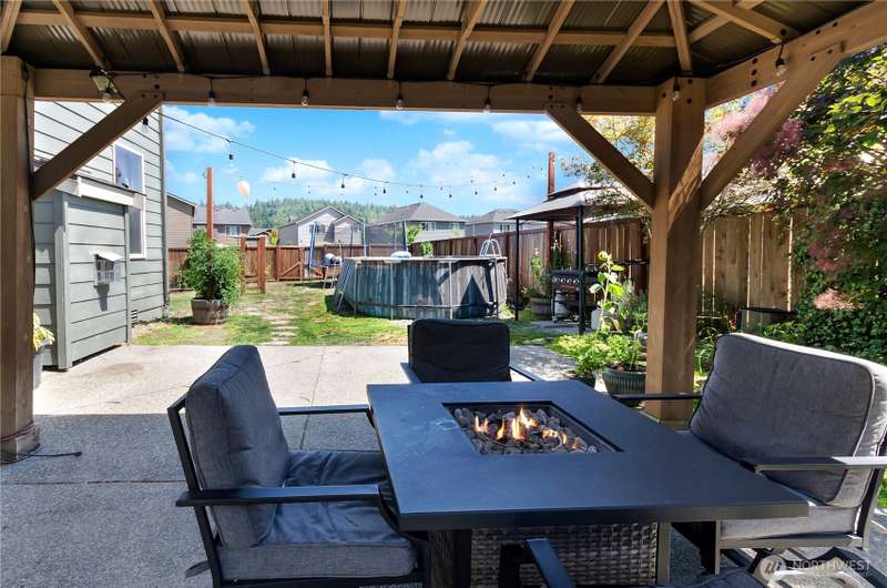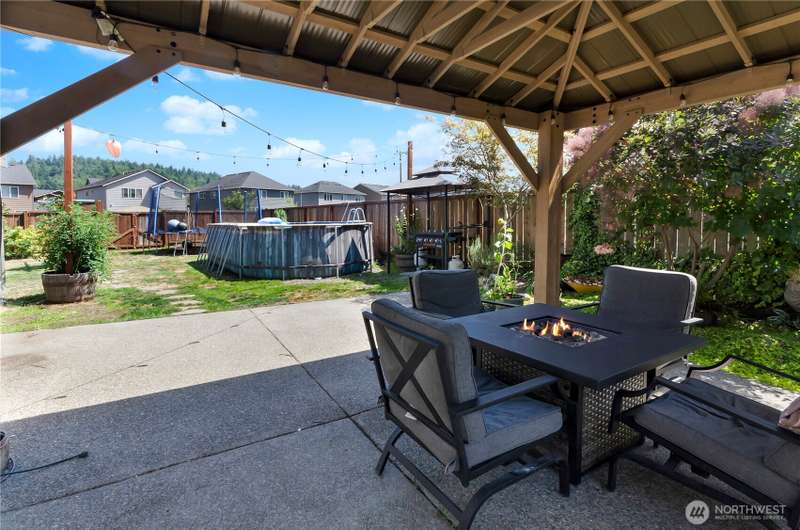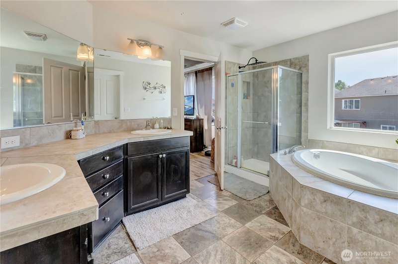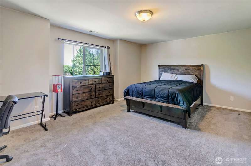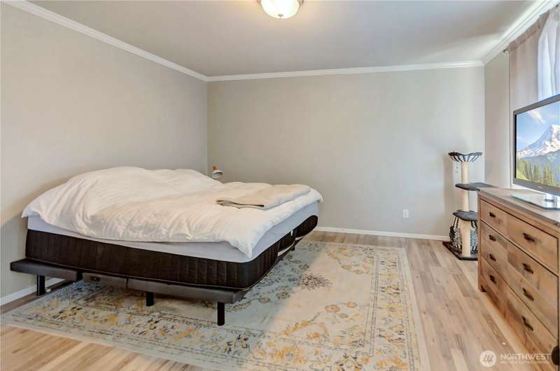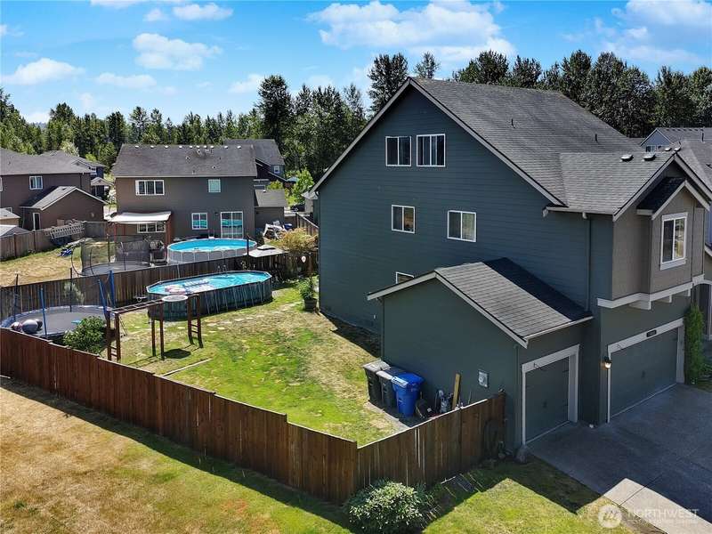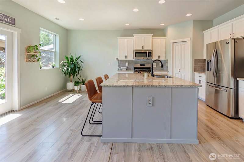 Beautiful modern Craftsman with space, style, and stunning views! This 5-bed home features a bright open-concept layout that connects the kitchen, dining, and living areas, perfect for everyday living. The kitchen offers modern finishes, generous counter space, and excellent functionality. The spacious primary suite boasts a 5-piece bath and walk-in closet. Upstairs you'll find 4 large bedrooms and a full bath. The 5th bedroom is on the 3rd floor, a versatile flex space ideal for guests, work, or play. Enjoy year-round comfort with A/C, a fully fenced yard, covered patio, and breathtaking mountain views. A private gate opens to a path to the river, your own slice of PNW lifestyle. All just moments from the sought-after Orting Trail.