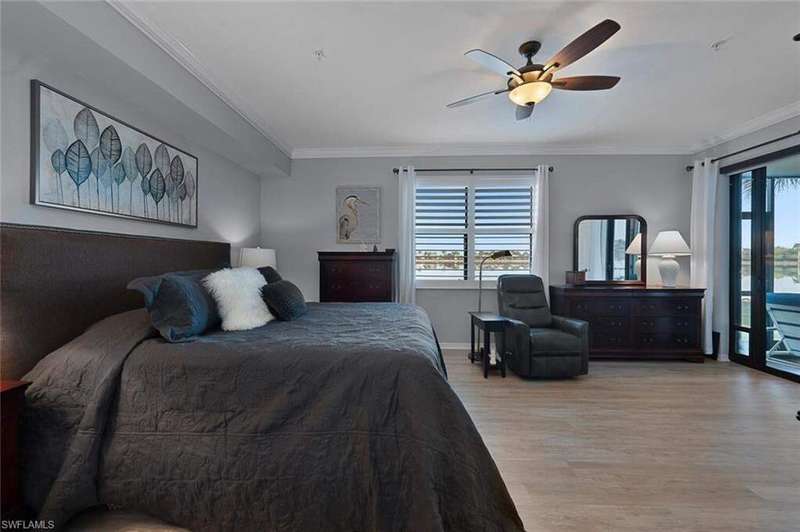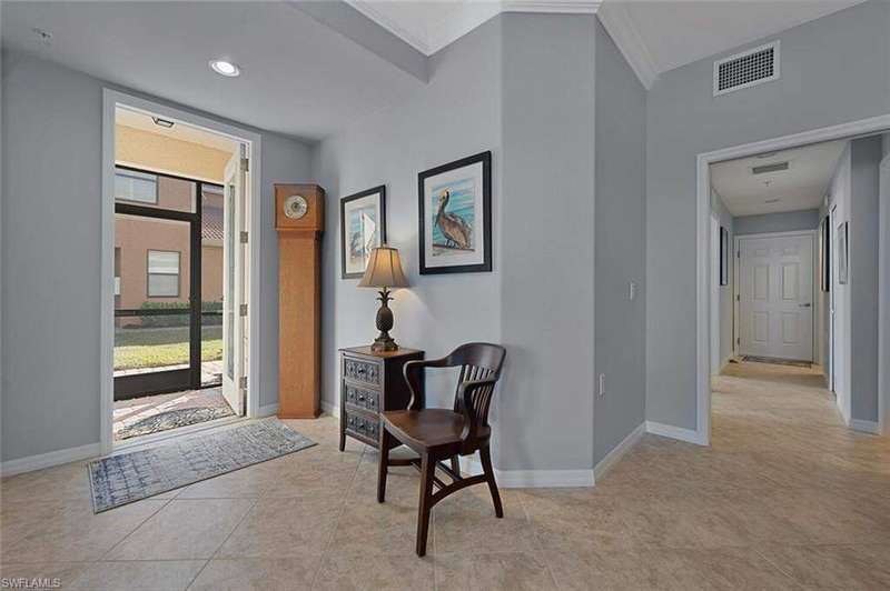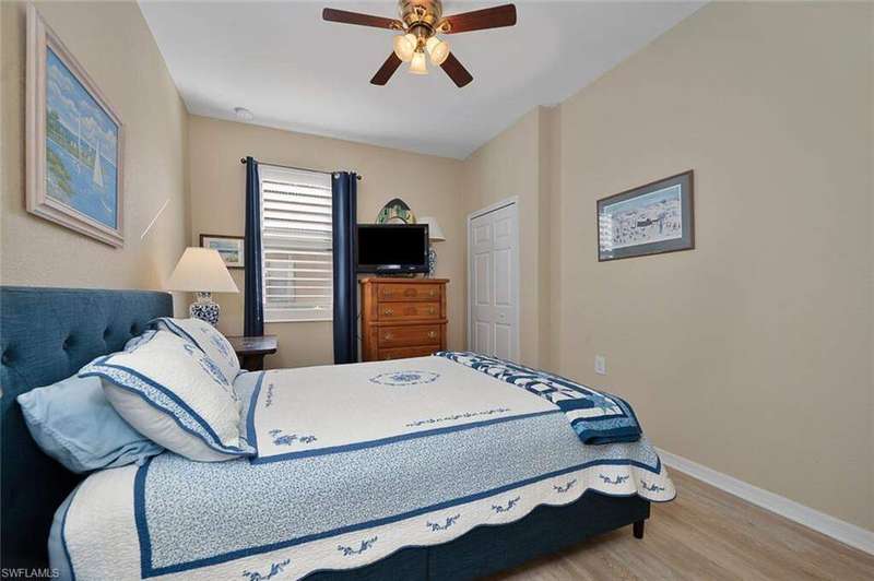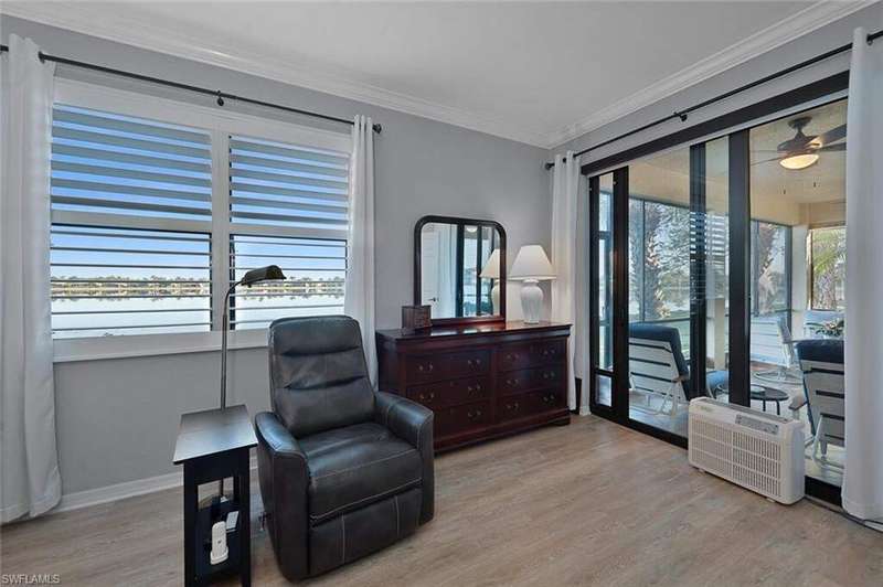Welcome to this beautifully updated 3-bedroom, 2-bathroom coach home, perfectly situated in a premier golf community with FULL GOLF MEMBERSHIP. Enjoy serene, panoramic views of a large tranquil lake, where each evening you can unwind while taking in stunning sunsets. The spacious, open-concept floor plan is ideal for both relaxing and entertaining, with abundant natural light pouring through large windows and sliding doors that lead to a private screened lanai. The updated kitchen boasts modern cabinetry, sleek quartz countertops, newer appliances and farm sink making it a chef's dream. The expansive master suite is a peaceful retreat, complete with an en-suite bathroom featuring dual vanities and a walk-in shower. Two additional generously sized bedrooms provide ample space for family or guests. Other updates include plantation shutters throughout, room darkening, motorized blinds in the living room and primary bedroom, extra attic storage and new epoxy floor in the 2-car garage. As a resident of Heritage Bay Golf and Country Club you will enjoy a 27hole championship course, a world-class clubhouse, all new 'Grille Room' restaurant & bar overlooking the 27th green, a resort-style pool with a Cabana Restaurant & Bar and a formal dining room for special events. Amenities include 7 HAR-TRU tennis courts, pickleball courts, bocce courts, four quiet satellite pools, fitness center, full-time activities director & more giving you full access to world-class facilities and lush fairways. Located just minutes from shopping, dining, and all the best amenities, this home offers an exceptional lifestyle in a highly sought-after location. Don't miss your chance to own this rare gem!