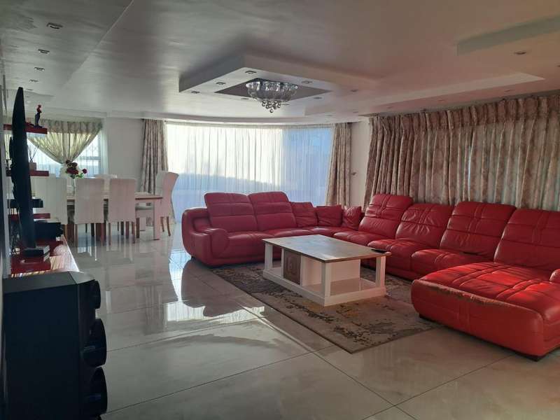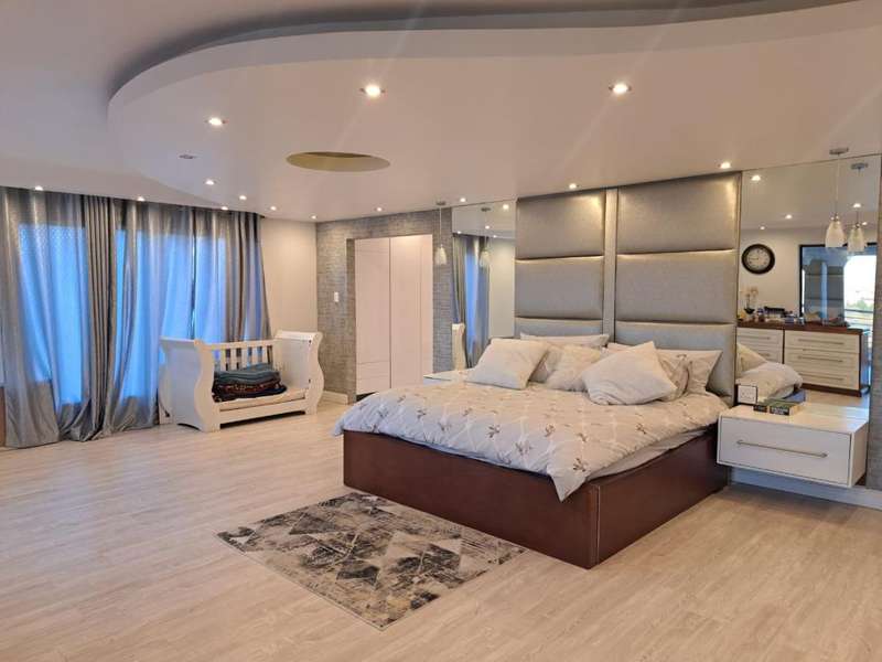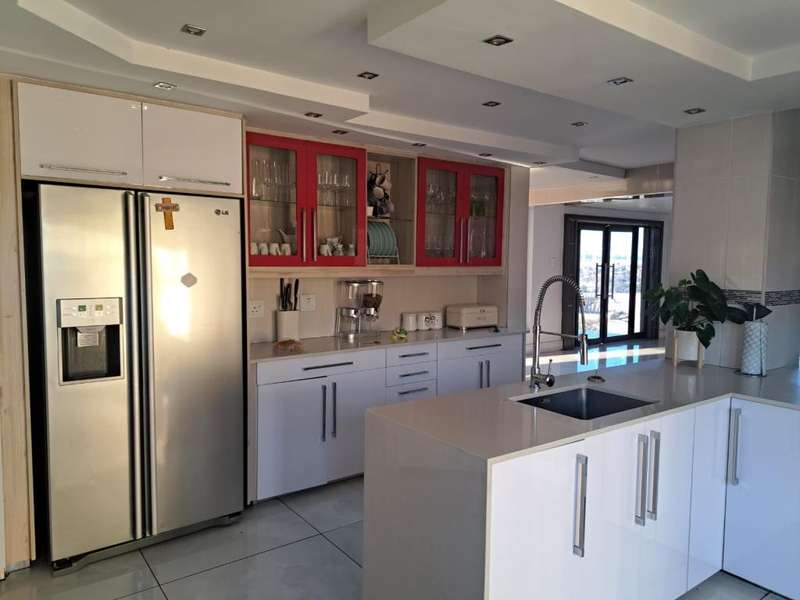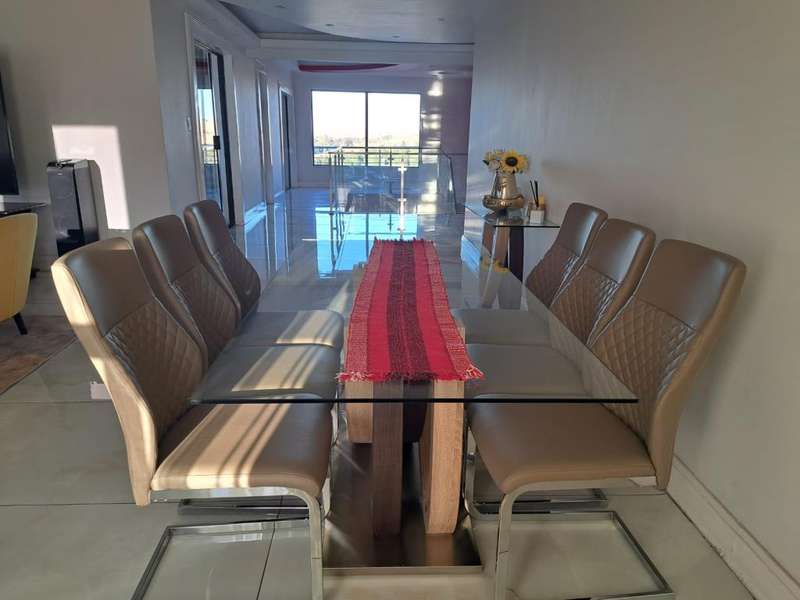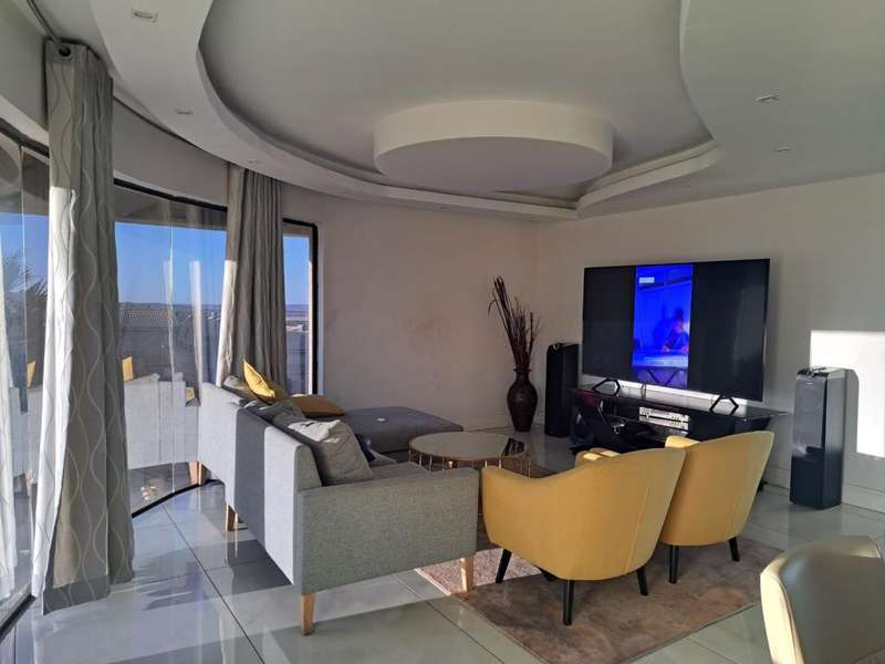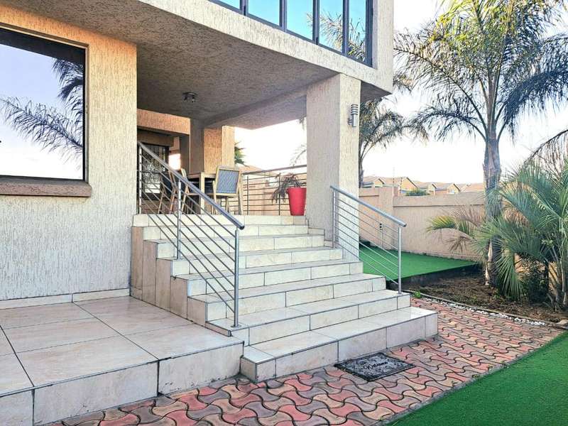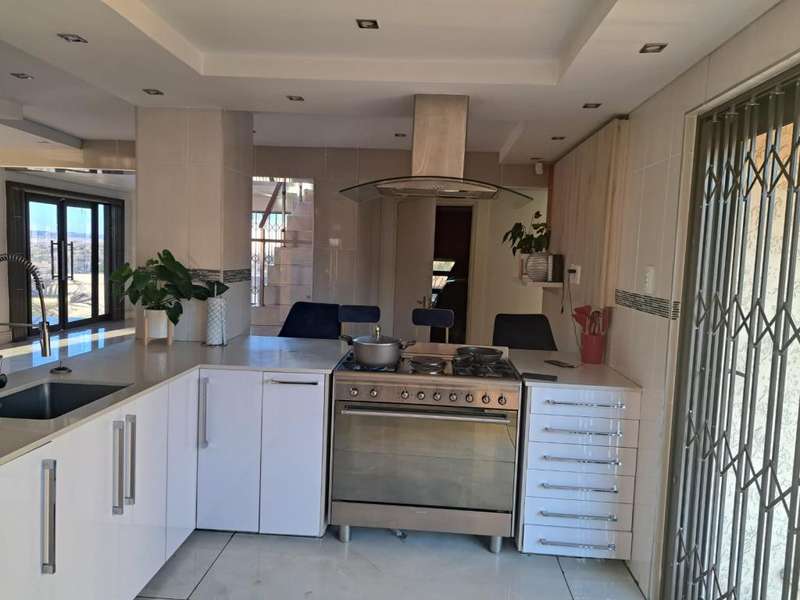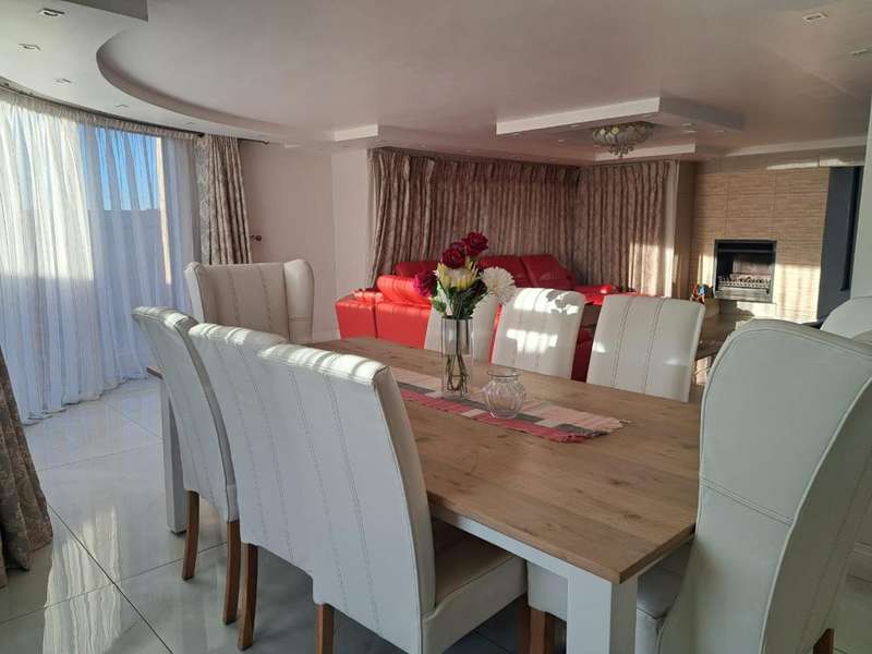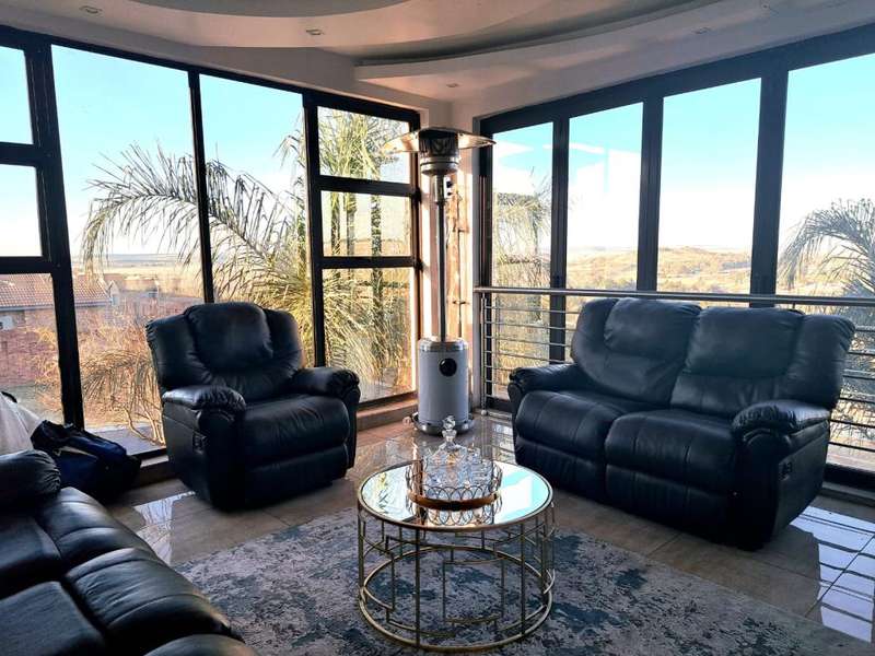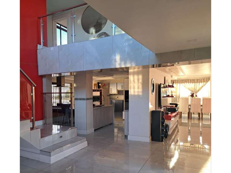 6 BEDROOM MODERN MASTERPIECE IN A SAUGHT AFTER AREA As you step into the grand entrance hall, you are immediately greeted by the sheer elegance and opulence that this 6-bedroom home exudes. The heart of the house lies in the open-plan kitchen, dining room, and lounge area with a cosy fireplace. The kitchen is a work of art itself, boasting the latest in contemporary design and equipped with state-of-the-art appliances. Adjacent to the kitchen, you'll find a separate laundry/scullery, ensuring convenience and functionality. On the ground floor, there are three spacious bedrooms, one of which features an en-suite bathroom for added privacy. Additionally, there is a full bathroom that is a marvel in design and functionality. The beautifully designed stairway leads you to the upper level, where you'll discover another massive open lounge area, perfect for relaxation and entertainment. To the right, a study awaits, providing an ideal space for work or study. Next to it, you'll find a private lounge boasting breathtaking views of the surrounding landscape, a perfect spot for enjoying quiet moments. On the left side of the upper floor, you'll find two more luxurious bedrooms, each with its own en-suite bathroom designed to impress with their elegance and charm. An additional full bathroom is available for added convenience and comfort. The master bedroom is nothing short of a dream come true. Its expansive layout, adorned with large windows, allows natural light to flood the room and offers mesmerizing views of the surroundings. The master bedroom opens up to a private balcony, inviting you to bask in the captivating scenery. A spacious walk-in cupboard ensures ample storage space, and the ensuite bathroom is a vision of modern luxury. Throughout the entire home, large windows enhance the sense of openness, inviting the outside beauty indoors. Step outside into the enchanting and established garden. An inviting boma area with a fire pit beckons for cozy gatherings under the stars, and a sparkling swimming pool promises endless enjoyment on warm days. For the discerning car enthusiast, this home comes complete with three garages, offering plenty of space for vehicles and storage. Your peace of mind is assured with the inclusion of an alarm system and electric fencing, while a Jo-jo tank and irrigation system cater to the home's environmental needs. In summary, this modern and state-of-the-art home offers an unparalleled living experience, combining luxury, comfort, and breathtaking views in one magnificent package. Don't miss this opportunity to own this piece?áof?áparadise.