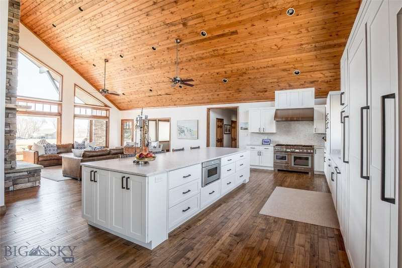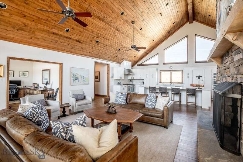Modern elegance meets Montana living in this completely updated 3,008 sq ft custom home, situated on 4.14 acres, offering refined design and exceptional craftsmanship throughout. Hickory hardwood floors flow through the main living areas, where a floor-to-ceiling double-sided wood-burning fireplace anchors the open layout. This central feature connects seamlessly to a cozy adjacent TV room-perfect for quiet evenings or casual gatherings. The chef's kitchen is sleek, functional, and designed to impress with Thermador appliances, a built-in wine fridge, and a clean palette of stainless steel and white finishes. Ideal for entertaining or enjoying a quiet night at home. Four spacious bedrooms and 2.5 bathrooms provide comfort and flexibility. The primary suite offers a tranquil retreat with expansive views and upscale finishes. Three guest bedrooms are positioned at the opposite end of the home, providing optimal privacy for family and visitors. Large windows throughout frame panoramic views of the Madison Range, bringing in natural light and emphasizing the home's seamless indoor-outdoor connection. A dedicated office with custom built-ins and fiber optic internet, large closets throughout home and a finished garage with cabinetry and epoxy floors enhance organization. This property is fully equipped for comfort and efficiency with a whole-house backup generator, blacktop front driveway, RV parking, and an irrigated yard with mature landscaping. Outdoors, enjoy golf cart access to Valley Garden Golf Course or explore downtown Ennis by foot or bike via the nearby pedestrian trail. Ennis offers a vibrant Main Street filled with boutiques, restaurants, and galleries, along with a public airstrip for private aircraft and Bozeman and Yellowstone National Park are just an hour away. 10 Wood Duck combines luxury, comfort, and convenience in a truly breathtaking setting. A rare opportunity to own a fully furnished, turnkey home in one of Montana's most scenic locations. Call today to learn more about the custom features that set this home apart.