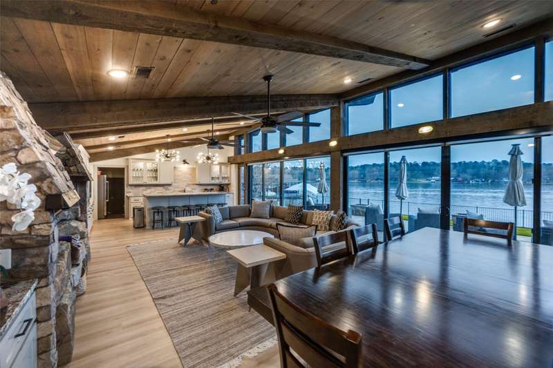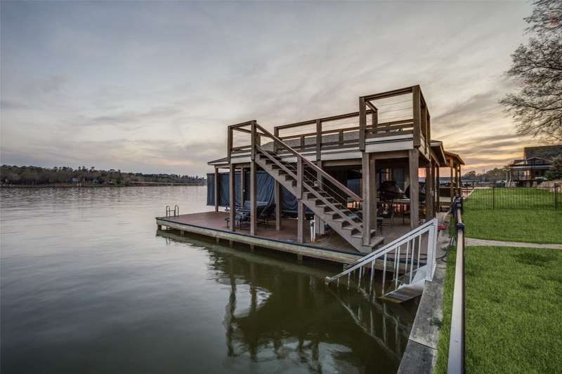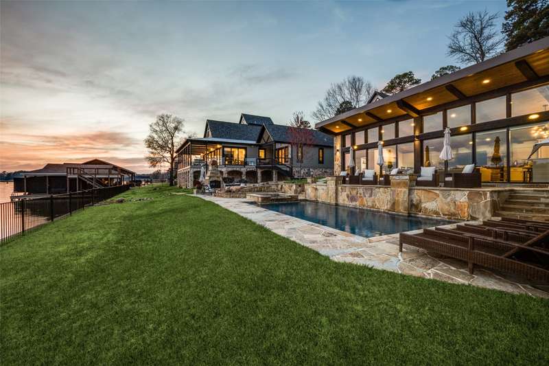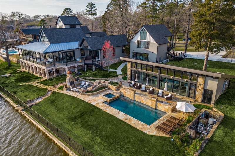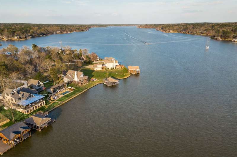 STUNNING & BEAUTIFULLY UPDATED multi-generational property HAS IT ALL & is on 1 acre of gated lake front accommodating 20+ family & friends! Over 6400 sq ft of living space includes Main House (3602), Pool House-Great Room (1077), 2 Story Guest Carriage House (1236) & Guest Room over garage (499)! Main house has gorgeous kitchen and living room with lake view, 3 bedrooms, game room, loft & wrap around porch! Amazing pool house with wall of windows has full kitchen, plus bath & is perfect for entertaining & opens to amazing pool & outdoor fireplace! 2 story Carriage House has kitchenette, living, full bath & bedroom on first floor. Second floor offers king bedroom, two sets of full sized built in bunk beds, full bath, & beautiful cathedral ceiling & windows with lake view! Guest room & bath over 2 car garage! Boat house for 2 boats-2 jet skis has a sitting & sun deck! Minutes to charming restaurants & shops in Mt Vernon & Winnsboro, The Cove Marina & Restaurant. Quick access from I30.