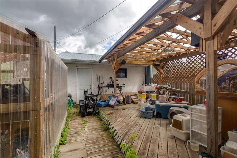 Welcome to this well-maintained 3-bedroom, 2-bathroom half duplex built in 1986. It’s located just minutes from downtown shopping, parks, the river and the waterfall and hiking trails as well as the walking and biking path. The home features hot water radiant heat, (the boiler was upgraded 12 years ago). There’s a 125-amp electrical panel, low-maintenance tin roof and stucco siding. The windows were replaced 10 years ago. Step inside to newer laminate flooring throughout and modern LED lighting. The $30,000 kitchen renovation was done just 5 years ago and boasts new solid wood cupboards, roll-out pantry drawers, and a built-in desk area perfect for a home office or an additional coffee bar. The kitchen also has a modern tile backsplash. Fridge, stove, dishwasher (only 8 months old), and microwave are all included. The sunny dining area has a door to the covered, pressure-treated deck that is perfect for entertaining. The main floor also features the laundry room and a 2-piece guest bathroom. Upstairs, the huge primary bedroom offers mountain views, a spacious closet, and a flex room perfect for a computer area, reading nook, or an extra walk-in closet. The 3-piece bathroom features a modern shower with tile accents, quartz countertops, and extra linen storage. There’s also a storage loft upstairs and a spacious hall closet as well as two more bedrooms. Between the 2nd and 3rd bedrooms is a removable wall (just in case you’d prefer one larger bedroom). Outside, the fenced yard is a gardener’s dream with raised flower beds including tulips, rose bushes, lilies, a vegetable garden, and a greenhouse that stays with the home. The front yard is ready for a fountain with power already on a timer for pumps and lighting. The single detached garage is ideal for parking and includes 220 power, perfect for welders, mechanics, wood working or other hobbies. There is room for a second parking stall where the vegetable garden is now. All blinds and window coverings are all included along with 4 fans which are remote controlled to add comfort inside the home. Storage space is cleverly utilized throughout. This home offers a quick possession and is close to the National Historic park with beautiful river trails and access to the famous brierley's rapids for canoeing or kayaking on the North Saskatchewan River. You’re close to Twin Lakes and Crimson Lake, which feature kayak rentals the canoe club on Wednesdays, sandy beaches, hiking trails, paddle boarding, fishing, and a golf course for outdoor enthusiasts. These are all less than 20 min away. This is a fantastic opportunity to own a move-in-ready, thoughtfully updated home with mountain views and impressive outdoor features, with easy access to nearby recreational amenities. Don’t miss out!