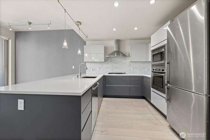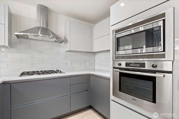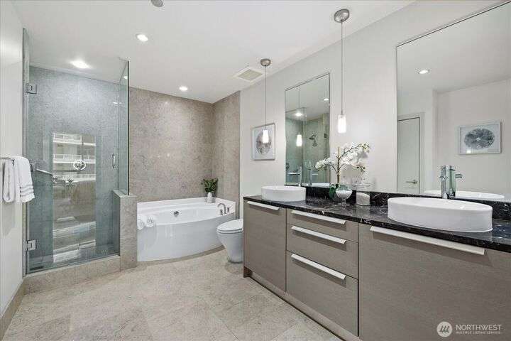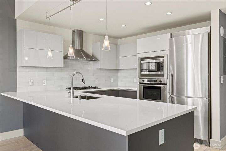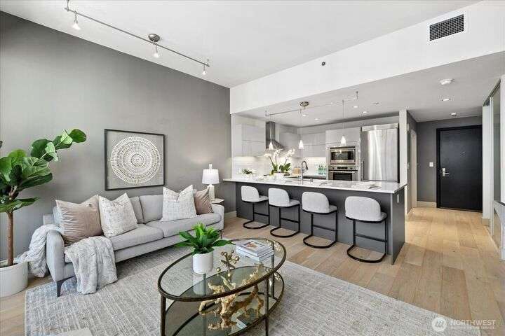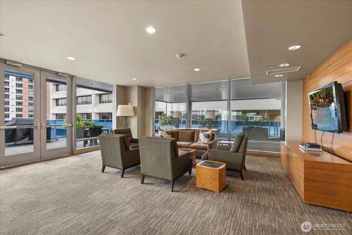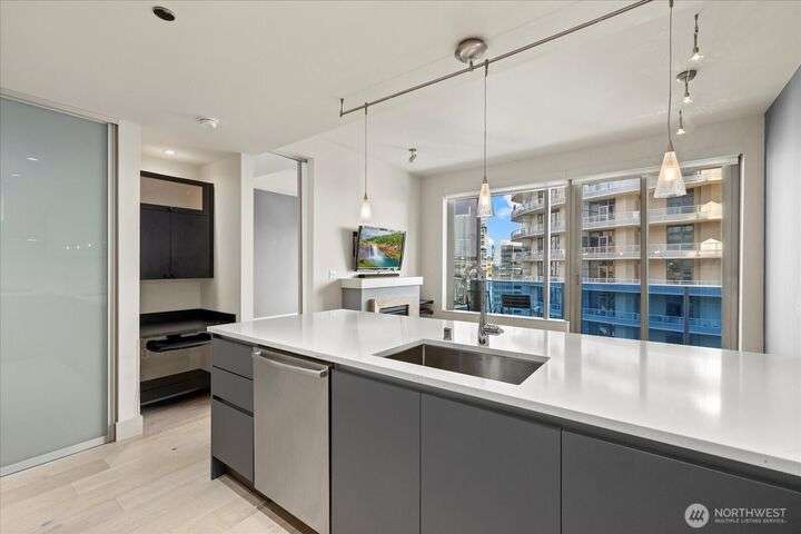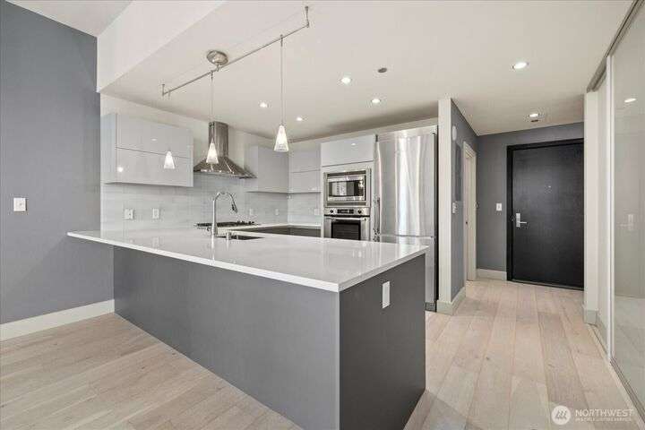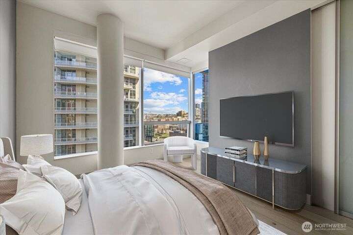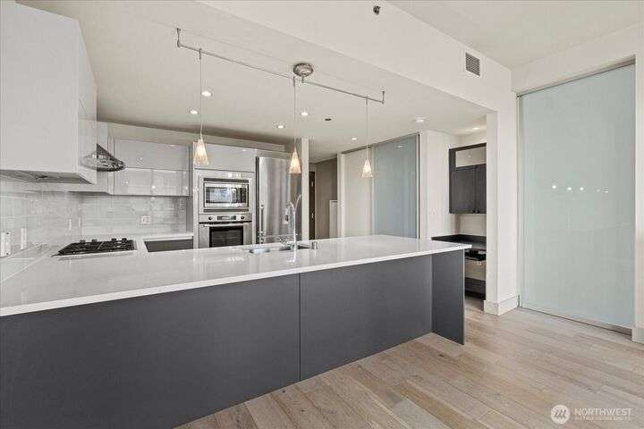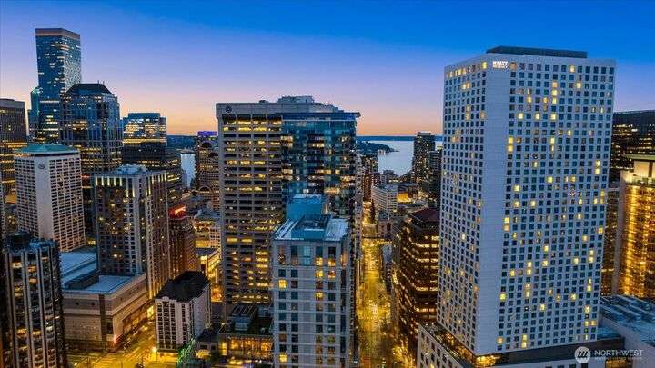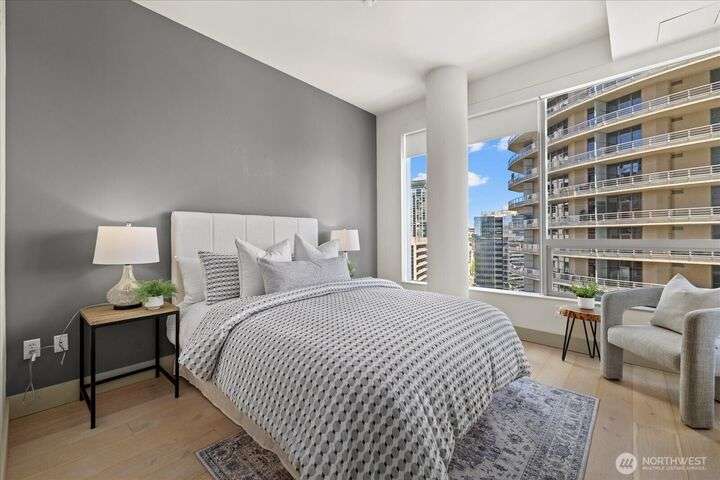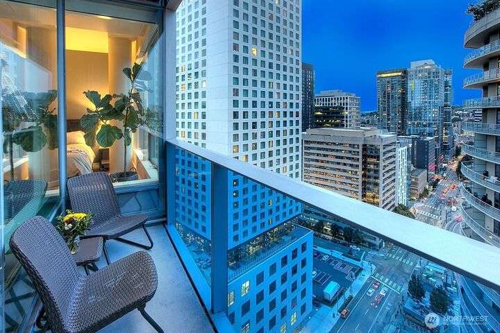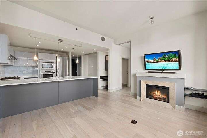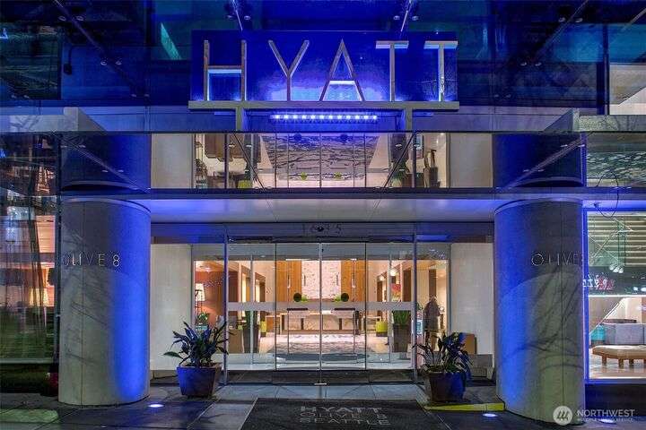Designer remodel -Luxury living high atop World Class Hyatt Hotel Olive 8! Expansive city views, abundant light, floor-to-ceiling windows, 10ft ceilings. New 2023 finishes: wide plank oak hardwoods spanning living & bedroom- New Pedinin kitchen cabinets, new SS appliances, new Kitchen island with white quartz, new glass tile back splash,new faucet, sink & garbage disposal. Brilliant design with fireplace & spacious balcony. 5 star amenities! hotel access floor 2-Saline pool, Jacuzzi, steam & sauna, fitness center & yoga studio. 18th fl- Private owners lounge- roof deck & dog run. Ez access to light rail, I-5, mins to Amazon, vibrant location. Hotel discounts for family friends. 1pk,1stg A/C,No rent Cap.