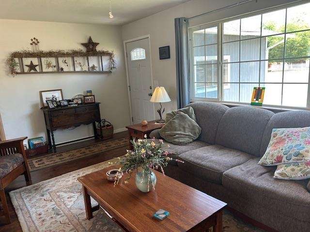 Move in ready 3 bd, 2 ba. on two lots in Montague. Spacious views of open ranch land to the north, Mt. Ashland and the Siskiyous. Extra lot affords a large spacious yard and could be fenced for privacy. Home is heated and cooled with a minisplit system along with ceiling fans in every room. Lovely laminate flooring in living areas and bedrooms and tile flooring in dining, kitchen and bathrooms. Two full bathrooms with tub/shower units. Attached 2 car garage is connected to utility/mud room. Range, refrigerator, washer and dryer are included in sale. Home has light and airy feeling with white vinyl windows; deck at the rear takes in the pastoral views. Pack your bags and move into your new Home Sweet Home at a Fall Special Affordable Price!