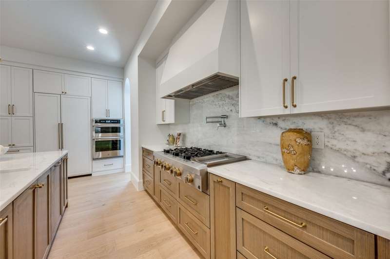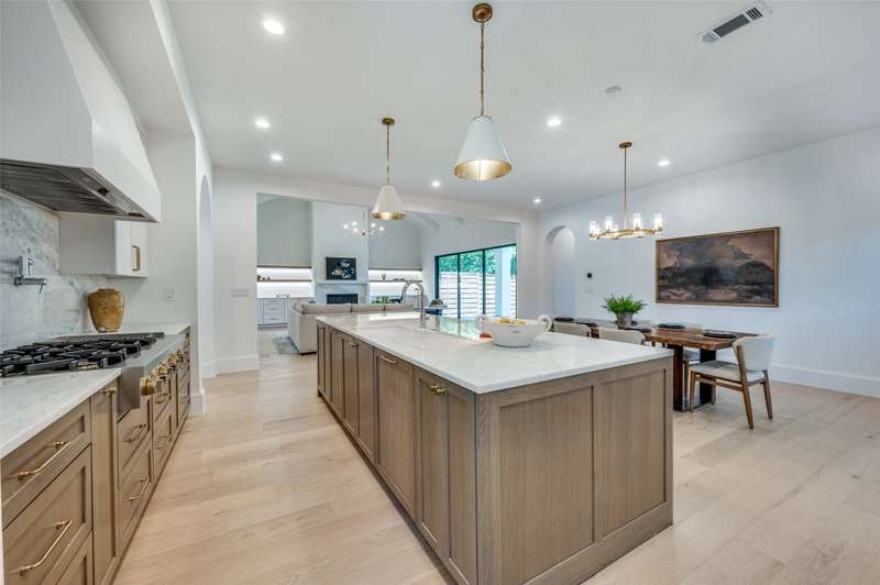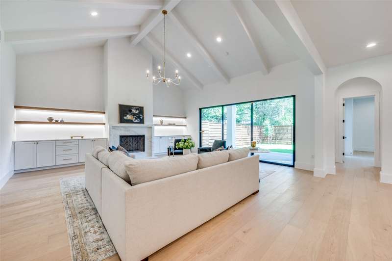 Stunning new construction in Midway Hollow blending modern design and timeless style. Featuring 5 beds, 4.5 baths, dedicated office and 4818 SF, this home showcases wide-plank oak floors, black-framed windows, and designer finishes throughout. The vaulted living room opens to a covered patio with a marble fireplace and a pool-ready private backyard for seamless indoor-outdoor living. Chefs kitchen with marble island, custom cabinetry, and hidden butlers pantry equipped with wine fridge and prep sink and built in drawers. First-floor primary suite offers a spa bath with dual vanities, soaking tub, and walk-through marble shower. Upstairs there is an secondary laundry, two ensuite bedrooms and a large bedroom-flex-room. Exceptional craftsmanship, curated materials, designer lighting and prime location near Dallas best private schools, shopping, and dining.