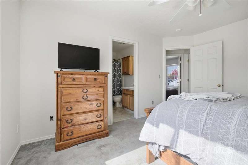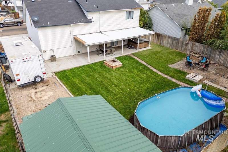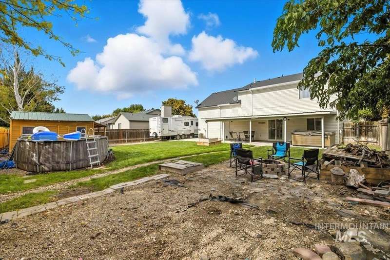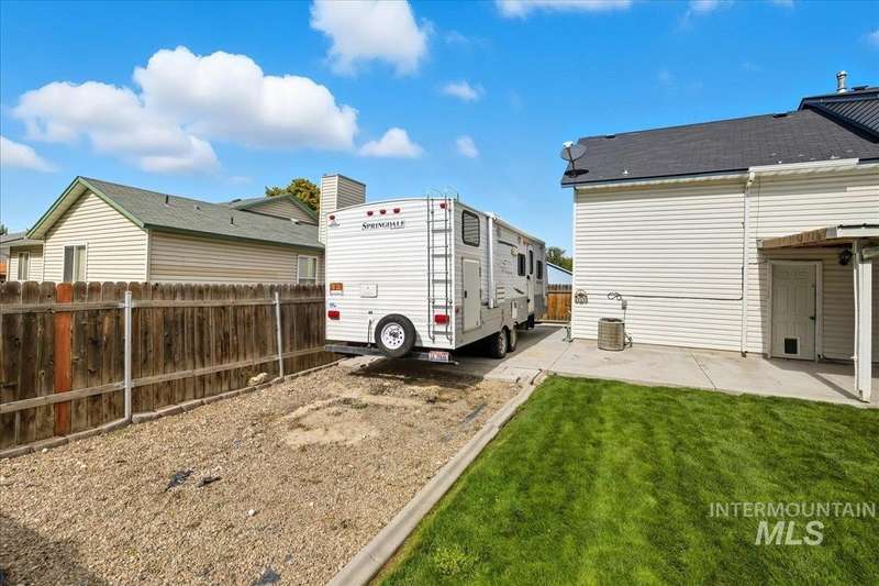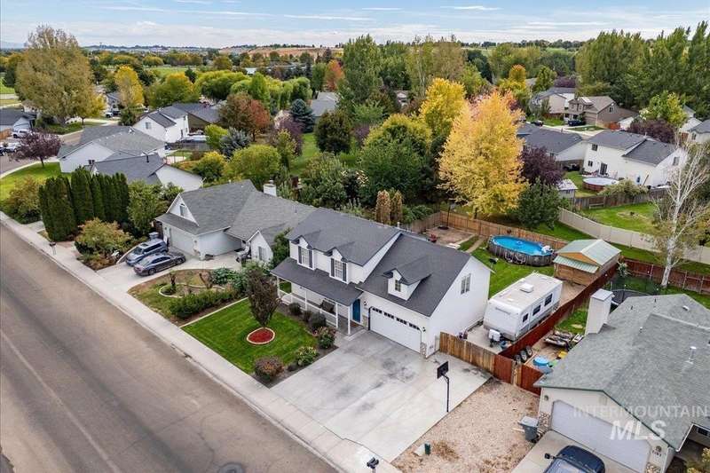 Recent price reduction AND an ultra-rare 2.1% assumable FHA loan make this home a standout opportunity! With striking curb appeal, a bright two-story façade, and coveted paved RV/boat parking, this property delivers space, style, and the lifestyle you’ve been searching for. Minutes from I-84, great schools, shopping, and the Idaho Center, the location can’t be beat. Inside, you’ll find open, sunlit living spaces with fresh interior paint and a smooth flow perfect for everyday living. The kitchen features a breakfast bar and pantry, and the spacious primary suite offers the ideal place to unwind. Need options? The oversized bonus room easily functions as a fourth bedroom, office, or playroom. The backyard is where this home truly shines. With no back neighbors, enjoy peaceful evenings in the large, fully fenced yard, host friends under the expansive covered patio, or grow your garden. A rear gate leads to the park and green space behind the home, expanding your outdoor space. A large storage shed adds even more flexibility for tools, toys, or projects. Set in a quiet, established neighborhood near Ridgecrest and Centennial golf courses and walking distance to Birch Elementary, this home offers style, comfort, and value all in one.