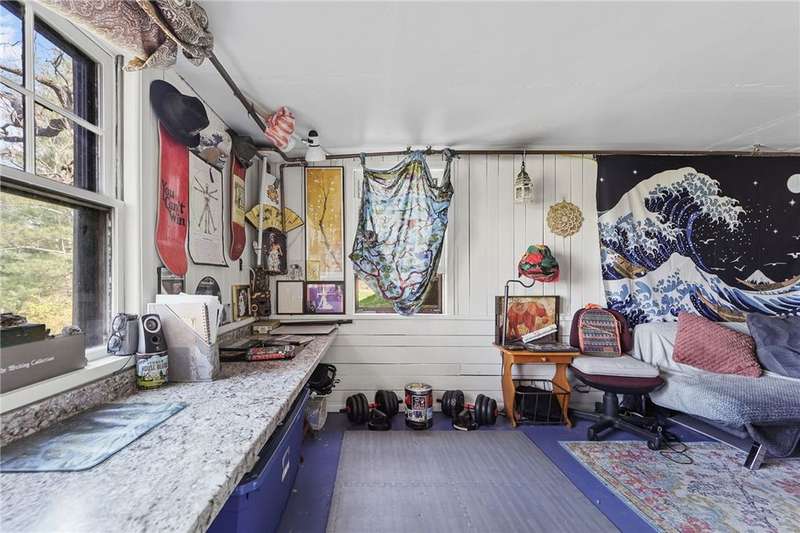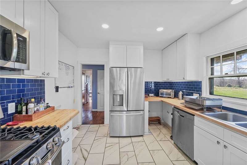 Nestled on over two serene acres, this rustic yet refined home offers a perfect blend of charm, comfort, and modern convenience. Thoughtfully updated throughout, it retains its inviting character with features like a cozy wood-burning fireplace and gleaming hardwood floors.The heart of the home is a beautifully renovated kitchen and baths, while flexible living spaces abound. Upstairs, you'll find four spacious bedrooms, while the main level offers a fifth bedroom?currently serving as a TV room?making single-level living a breeze.The fully finished lower level expands your options with a walk-out guest suite, complete with its own kitchenette?ideal for hosting guests or accommodating multi-generational living.Step outside into a natural wonderland. Mature trees, lush gardens, and a tranquil pond create a magical outdoor setting. Whether you're sipping coffee on the porch, entertaining friends, or simply soaking in the quiet beauty of the countryside, this home offers a truly special escape from the everyday.