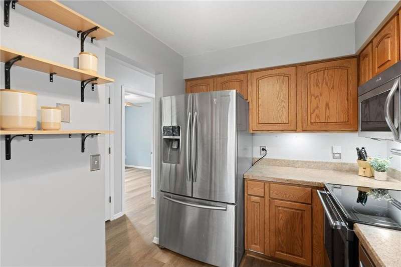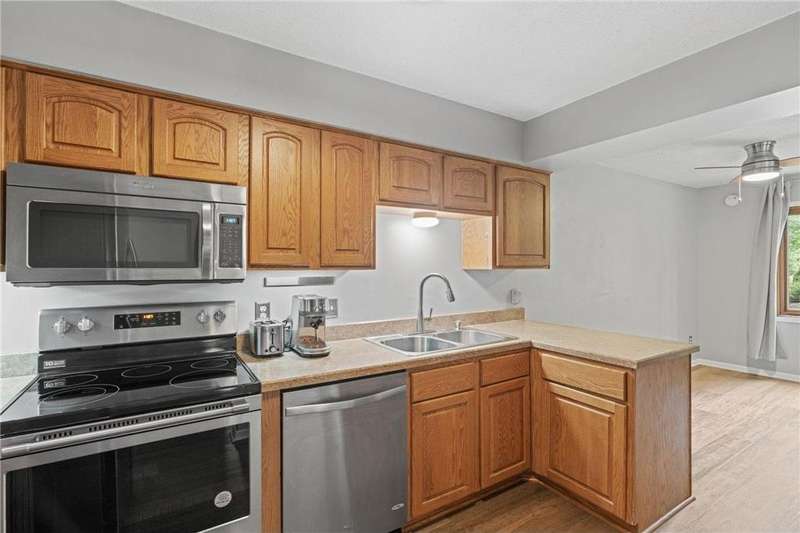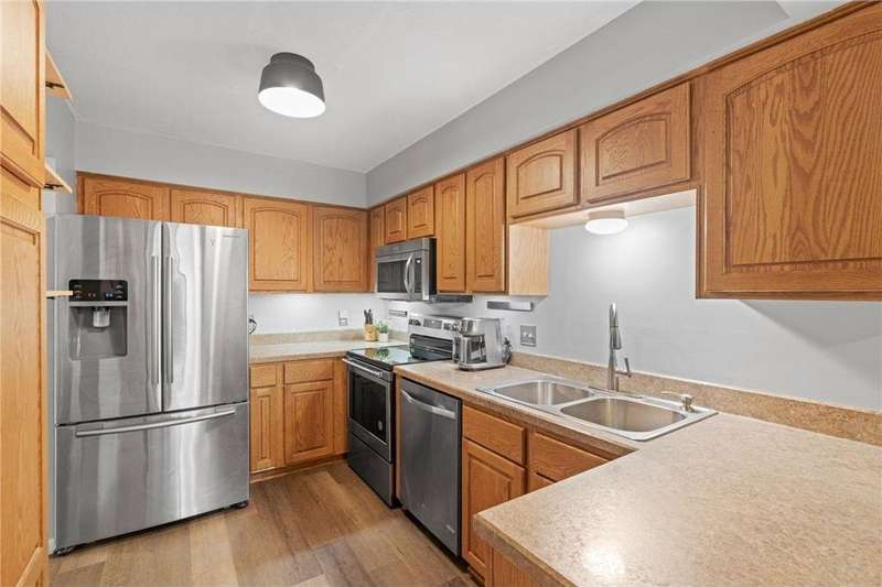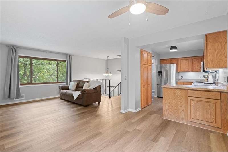End-unit townhome in a highly desirable location! Just minutes from shops, restaurants, your favorite coffee spots and easy access to Hwy 94. Inside, you'll find brand-new carpet, durable LVP flooring, fresh paint throughout, and brand new water heater making this home completely move-in ready! The spacious living area features an entertainment wall system, perfect for cozy nights in or hosting guests. The lower level has an abundance of entertaining space or could be made into a lower level bedroom suite. Enjoy serene views of Rice Lake while sipping on a morning cup of coffee and watching the sunset with a glass of wine right from your own private patio. Association includes access to canoe & kayaks to use for a peaceful paddle on Rice Lake. With it's combination of modern updates, convenient location, and tranquil setting, this home is the perfect blend of comfort and lifestyle.