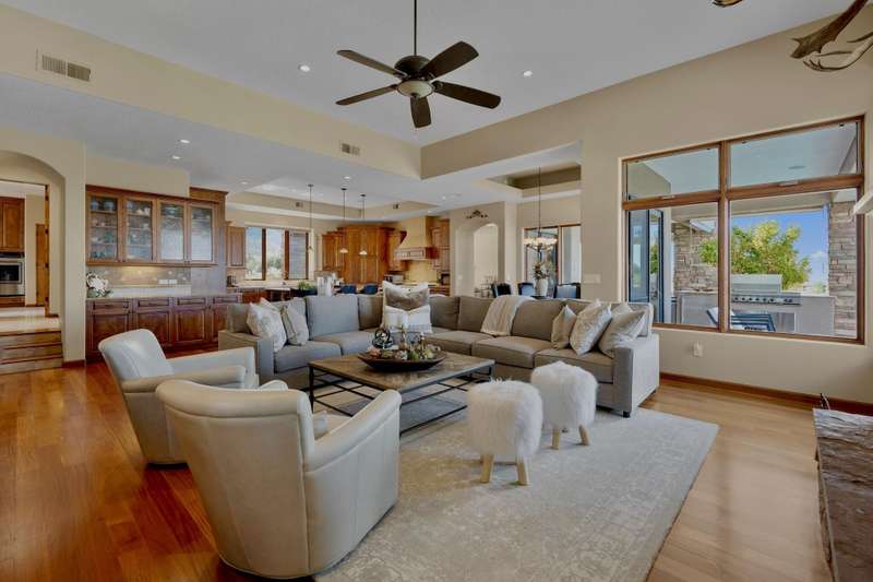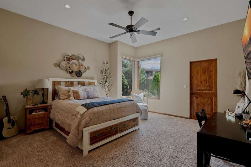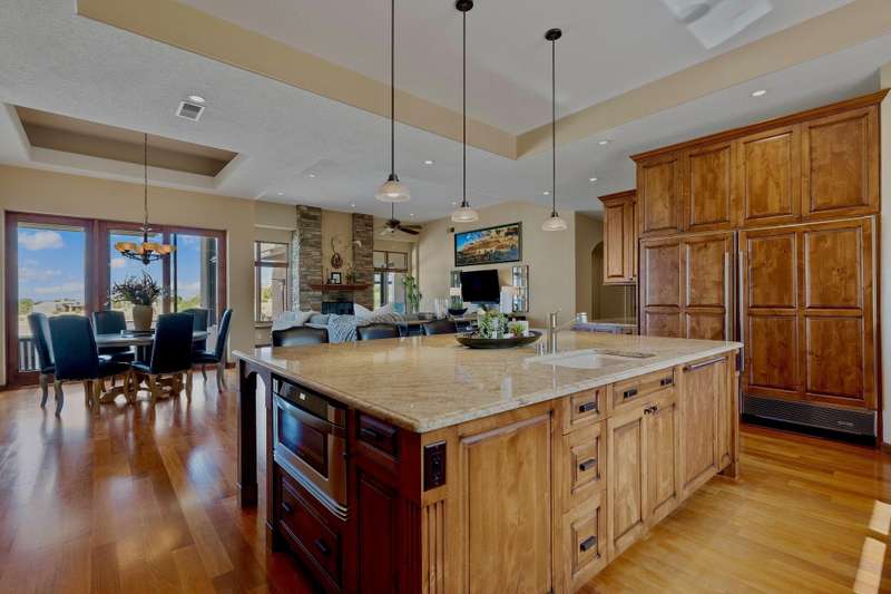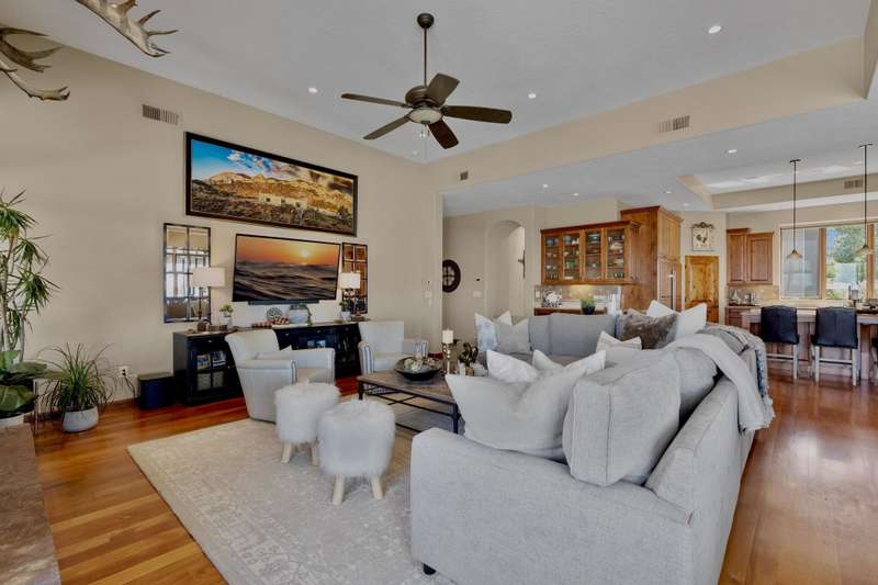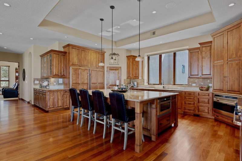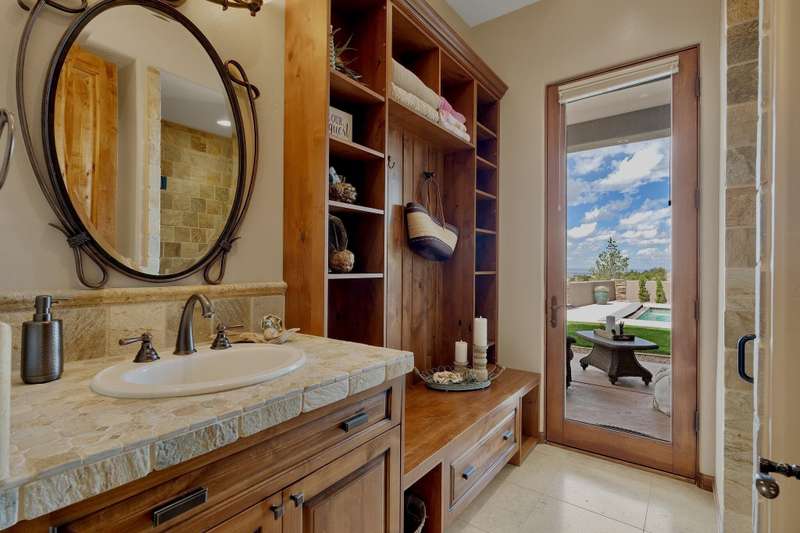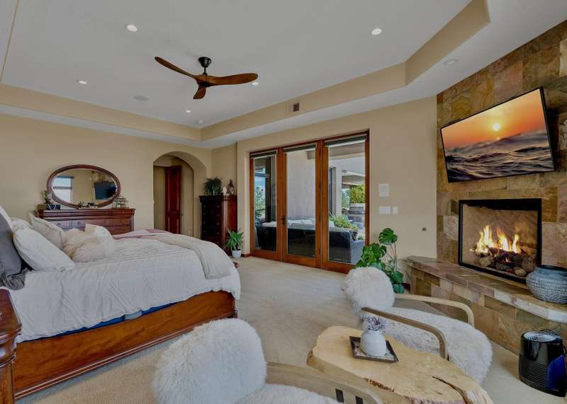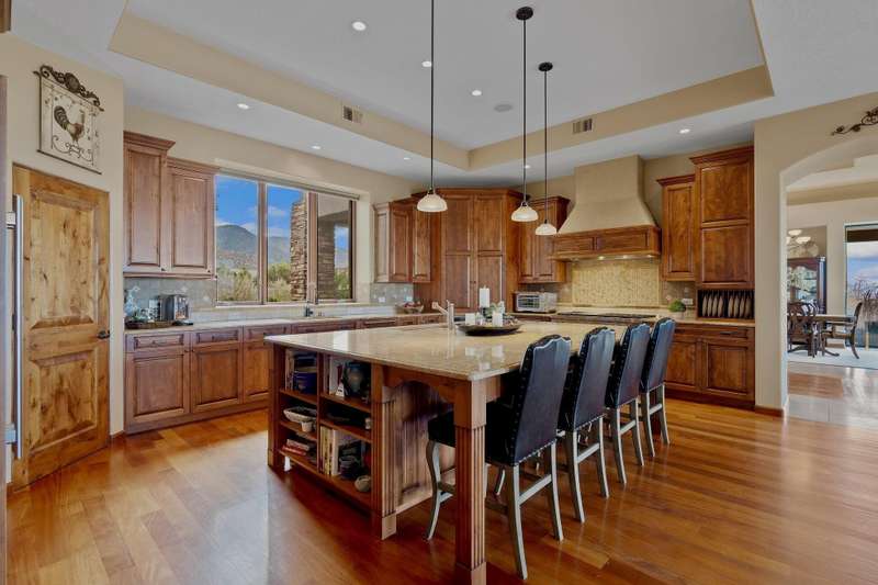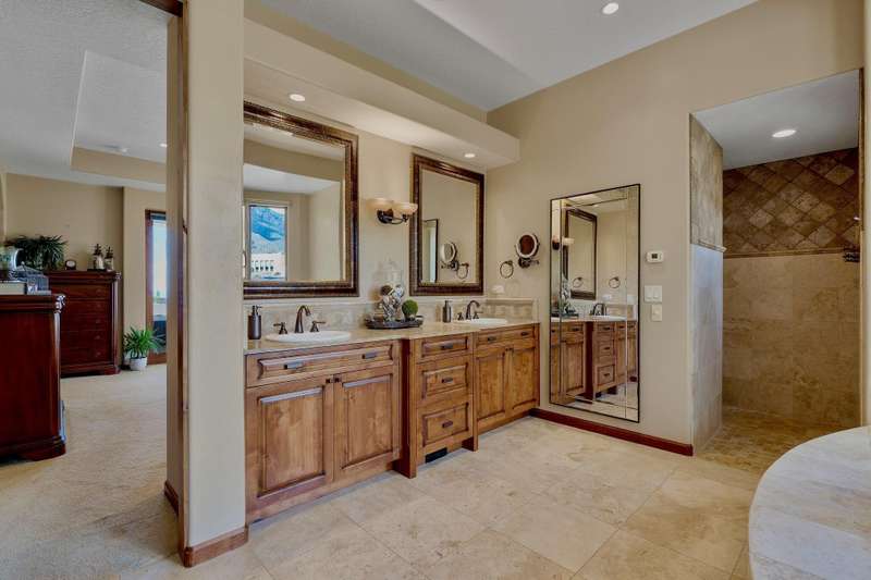 Contemporary and elegant, this stunning home is positioned perfectly to enjoy unobstructed views of the sunsets, city lights, and Sandia Mtns. Courtyard entry invites you into this light-filled home with flowing floor plan and seamless living between indoor & outdoor spaces. Entertainer's dream kitchen! Plenty of workspace, 3 ovens, 2 dishwashers, Wolf range, lrg pantry & Subzero fridge. Stylish living spaces divide the North & South wings. Spectacular primary suite on North wing includes sitting area & fireplace where one enjoys moments of reflection overlooking open space below or city lights beyond. South wing with 2-3 bdrms (1 w/en-suite), generous closets & office w/ amazing views. Media room w/bar & recreation area. Salt water pool, hot-tub, covered patio, outdoor living area!