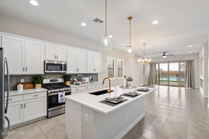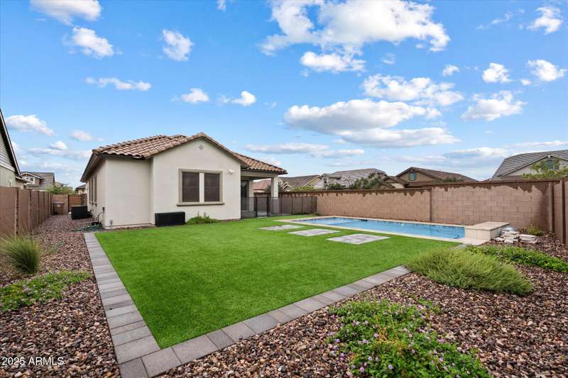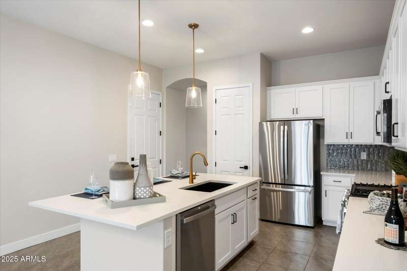 WHY BUILD NEW?? Welcome to a gem in the sought-after master-planned community of Barney Farms in Queen Creek, AZ! Built less than a year ago and still under the builder's one-year warranty, this stylish 3-bedroom, 2-bathroom home with a versatile den/flex space offers the perfect blend of modern comfort and move-in ready convenience. From the moment you arrive, you are welcomed with charming curb appeal, pavered driveway, and a quaint front porch, —the perfect spot to enjoy your morning coffee. Step inside and notice the open, airy layout and abundance of natural light. At the front of the home, a versatile den/flex space offers the perfect setup for a home office, playroom, or creative studio—whatever suits your lifestyle. The gourmet kitchen with its white shaker cabinets, quartz