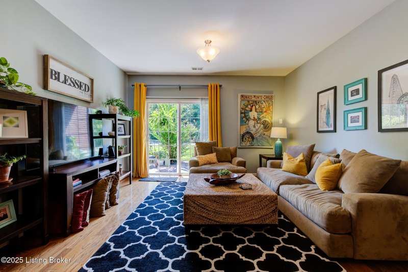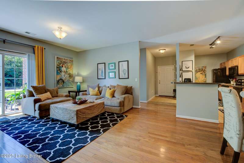 Welcome to this beautiful and spacious three-bedroom, two-full-bath condominium, where you will enjoy the luxury of maintenance-free living. As a rare first-floor unit and one of the largest units in the complex, it offers an open and airy floor plan with a large great room, a dining area that accommodates a full dining room suite, and features hardwood flooring. There are 9 ft ceilings throughout the unit. The great room's sliding glass doors lead to a private patio overlooking a serene green space and wooded area. The kitchen was designed with functionality and space in mind, offering ample cabinet space, a breakfast bar, and a pantry. Other kitchen features include a garbage disposal, refrigerator, dishwasher, range, and microwave. The exceptionally large primary bedroom boast a huge walk-in closet and is an en-suite complete with a linen closet, double vanity sink, and a tub/shower combination. Two additional bedrooms are spacious, featuring new carpet and fresh paint. One of the bedrooms has a walk-in closet and the other closet is double wide. The second bathroom also has a tub and shower combination. You will also find a laundry room with washer and dryer hookups for your added convenience. A private storage unit is located on the premises, within steps of the unit. The HVAC is just 4 years old. A secure building with coded access and a well-maintained swimming pool is just another bonus Don't miss out on this wonderful opportunity; first-floor units are a special find. This complex is well-maintained and conveniently located near restaurants, shopping, and expressways. The monthly maintenance fee includes Water, sewer, trash, exterior maintenance, groundskeeping, and Master insurance, as well as community pool access. Hurry on this one! Call today for your private tour