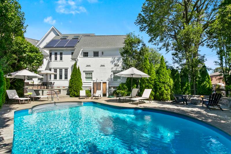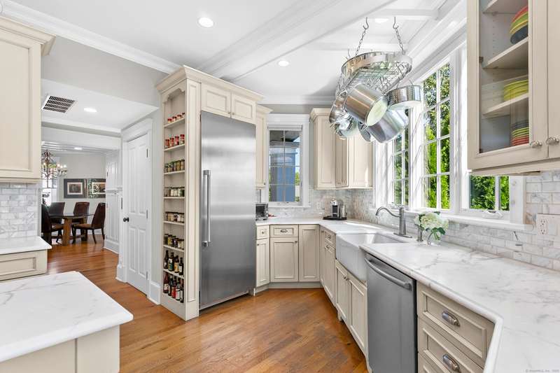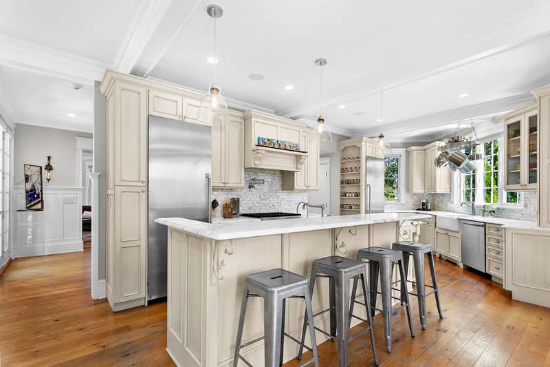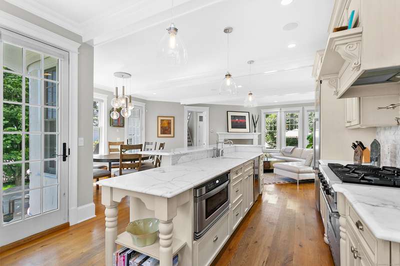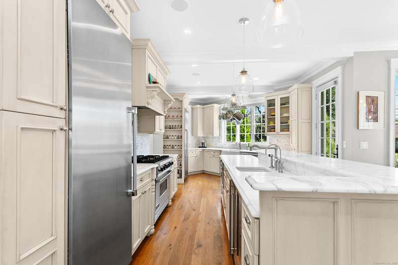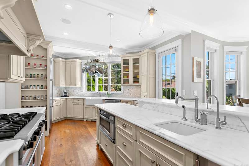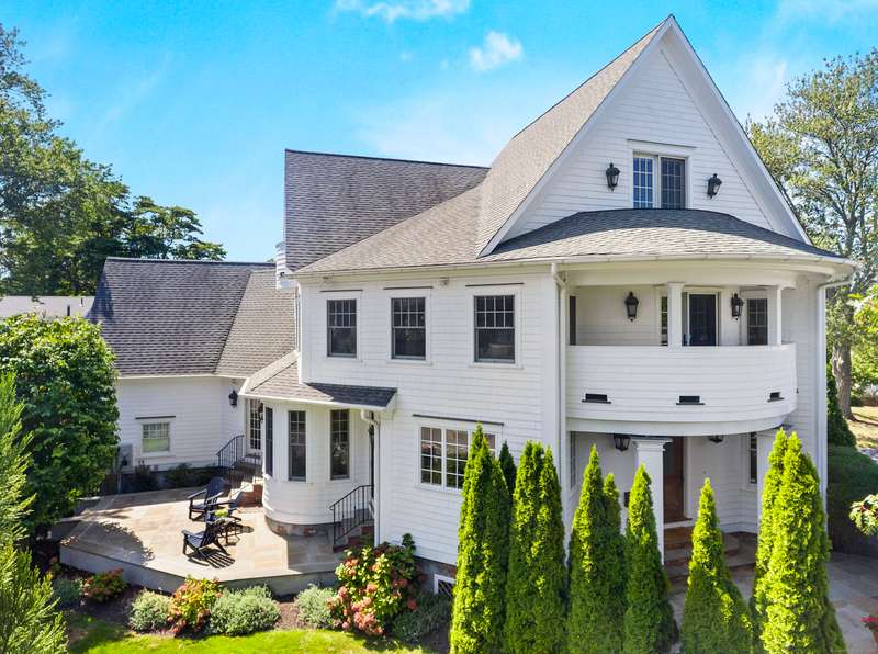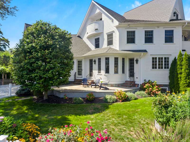 From the moment you arrive, you are captivated w/ blooming gardens & privacy trees that create an inviting curb appeal that welcomes you in. Architecturally gorgeous w/ brilliant craftmanship, this coastal home is a rare find in the Beach neighborhood. Featuring 4 spacious en-suite bedrooms, 12 rooms, 3 levels & an elevator servicing all floors, this home sets a new standard for exceptional living. The attention to detail is unmatched w/ wide plank hardwood floors, custom millwork, 9 ft+ ceilings, built-ins & elegant finishes. The 1st level is centered around the chef's kitchen featuring a large island, Viking appliances, wine chiller & dining that opens to the family room w/ fireplace & access to beautifully designed outdoor patios - perfect for indoor-outdoor entertaining. Additional living spaces include a library w/ fireplace & built-ins, dining room & a flexible recreation room w/ balconies. Upstairs, the architectural charm continues w/ curved walls & bookshelves & 3 of the en-su