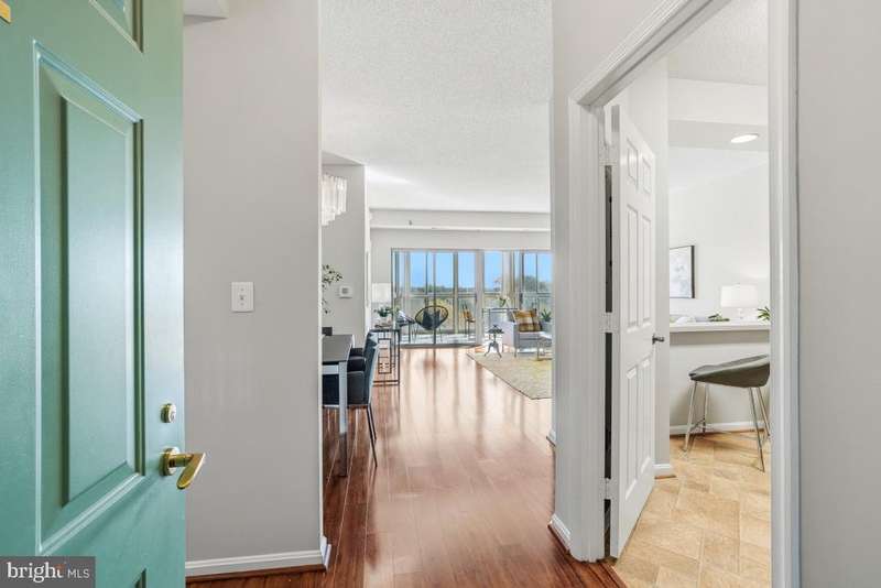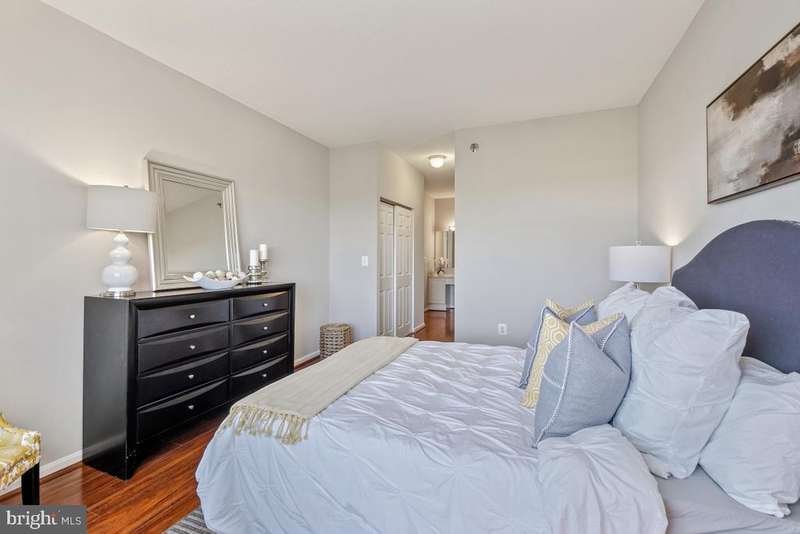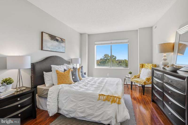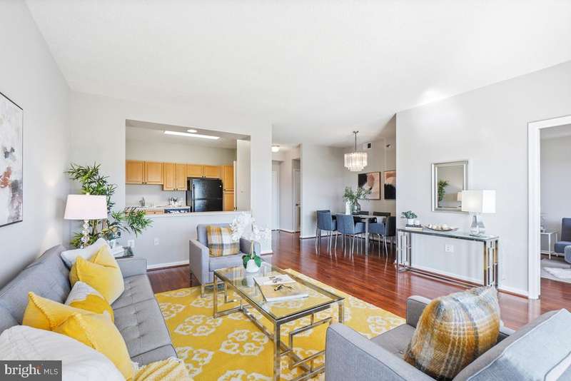 Gorgeous apartment in the high-rise of Turnberry Courts, a popular and well-managed building in Leisure World, a 55+ active adult community that lives like a resort! Boasting gorgeous wood laminate flooring throughout, this unit is certain to impress! The bright kitchen is open to the living area and includes maple cabinetry, sleek black appliances and lots of storage and counter space. The primary bedroom is very spacious and boasts 2 closets! The 2nd bedroom is located off the living room and offers flexibility as a guest bedroom, office or den! The cozy sunroom has tile flooring and is the perfect spot to relax! This condo has been freshly painted throughout, plus there's an in-unit laundry room! Community amenities include an awesome fitness center, an 18-hole golf course, 2 restaurants plus a pub, an outdoor pool and lanai plus indoor pools and hot tub, an art studio, woodworking shop, library, MedStar Health Center, billiards and ping pong rooms, auditorium and pickle ball courts, 24-hour security and so much more, making this condo an unbeatable value in today's market!