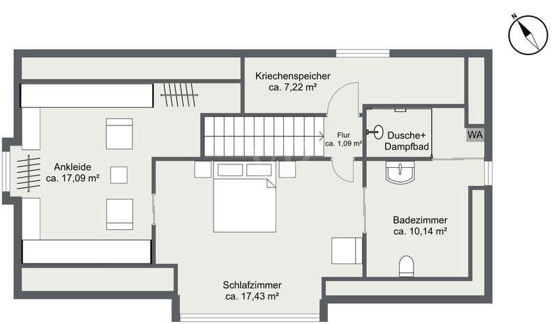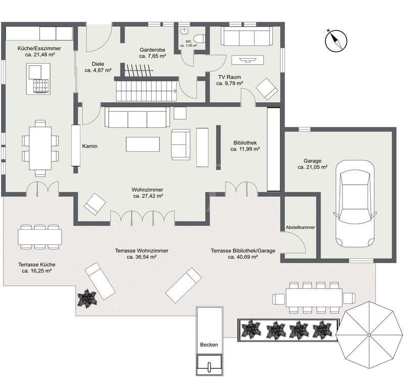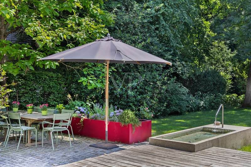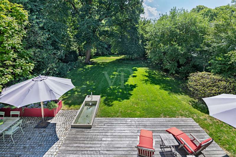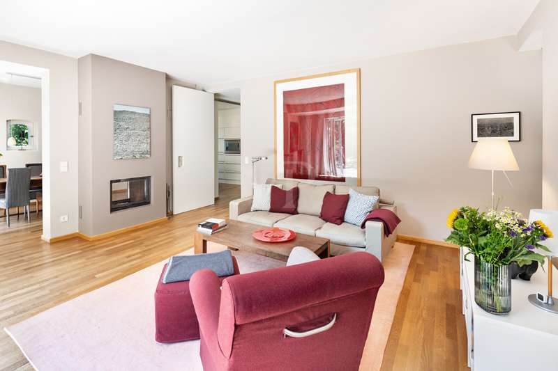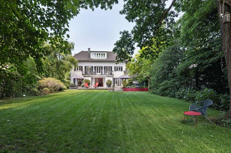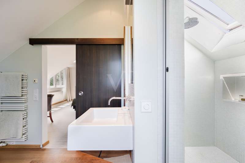 In one of the most sought-after locations in Gräfelfing, this well-kept detached house awaits you on a park-like, secluded plot of approx. 1,207 m² with a sunny south-west orientation. The house was built in 1950 and extensively renovated in 2005 and 2008. It offers around 255 m² of living space and a total living/usable area of around 416 m² - ideal for families and couples who value quality and space to develop. Oiled oak real wood parquet flooring is laid throughout the house, which, together with the double-glazed wooden windows, some of which were replaced in 2005, creates a warm and pleasant living atmosphere. The custom-made carpenter's kitchen impresses with high-quality appliances: a Smeg gas stove, Siemens coffee machine and Miele dishwasher leave nothing to be desired. The spacious living area with fireplace and integrated Bose sound system invites you to spend relaxing evenings with family and friends. Modern LED spotlights and Occio lamps provide an atmospheric lighting concept, while an intercom system and a laundry chute from the upper floor and attic offer additional convenience. The well thought-out room layout with a total of five well-designed bedrooms is particularly attractive. This means that the house also offers versatile usage options for large families or people with a need for work and guest rooms. The top floor was converted in 2005 and now serves as a parental suite with dressing room, en-suite bathroom and steam bath - a private retreat that guarantees relaxation at a high level. The entire roof truss was rebuilt during this process. As part of the core renovation, not only were all the water and electrical pipes renewed, but the basement was also excavated, insulated and a new gas pipe installed, providing additional, versatile space. A particular highlight is the spacious plot with its mature planting and old trees. Three terraces - a high-quality wooden terrace and two stone terraces - create a variety of opportunities to enjoy life outdoors. Whether enjoying breakfast in the morning sun, a barbecue in the afternoon or relaxing reading in the evening sun - thanks to the optimal south-west orientation, you can enjoy sunlight from dawn to dusk and absolute privacy in the sheltered garden. The quiet, family-friendly neighborhood, the excellent connections to Munich city center and the proximity to schools, shopping facilities and leisure activities make this house an ideal place to live. Here, timeless architecture is combined with high-quality furnishings and a garden paradise that is rarely found.