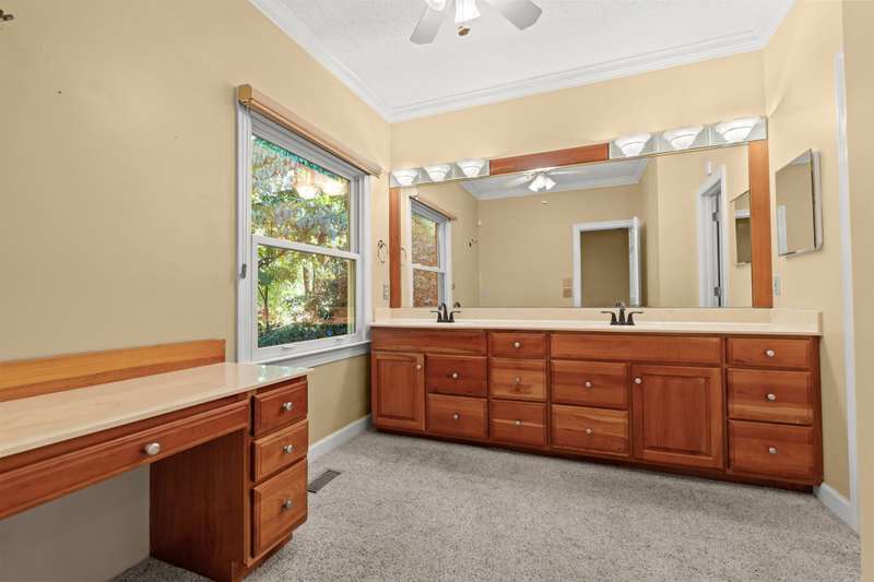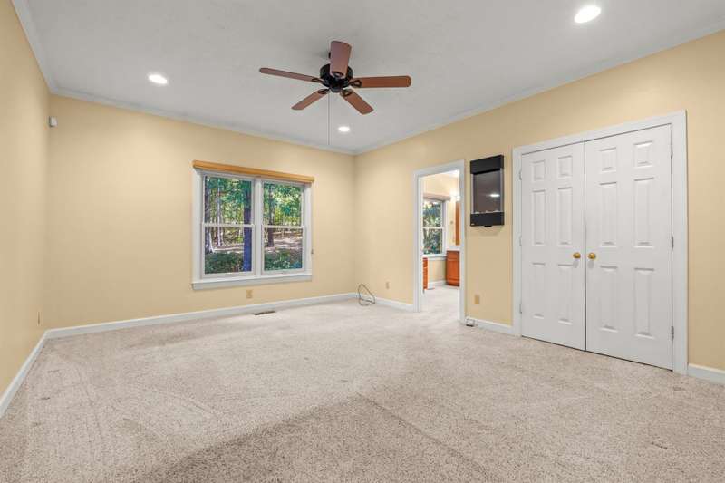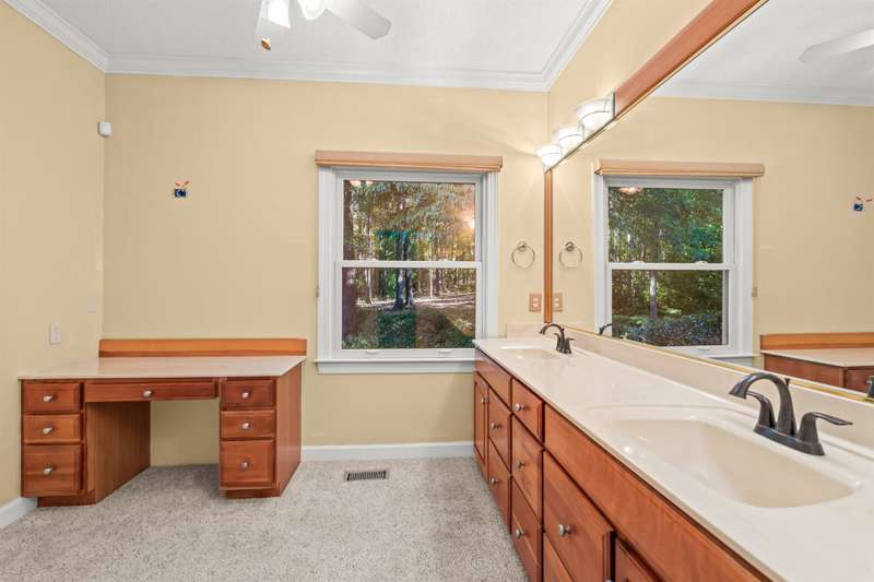 Open House this Saturday, 10/18 at 1-3. Beautifully landscaped on a double private lot on a cul-de-sac. Very well maintained one level ranch with lots of updates. Including walk in showers. New HVAC in 2025, deck in 2024, gutter guards in 2023 and more, see attached upgrades sheet. Two gas fireplaces, generator, tankless gas water heater. Permanent stairs to attic with great storage plus tons of closet space. HOA maintains mowing, seeding, leaf removal and pine needles.