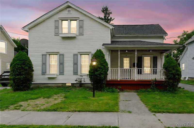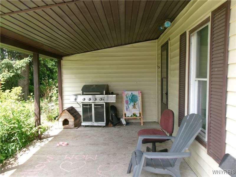 Nestled on an exceptionally rare 6.91 wooded acres within the highly sought-after Clarence School District, this 3-bedroom, 1-bath home offers the perfect blend of comfort and serene natural surroundings. Inside, you will find 1,329 square feet of comfortable living space with an updated kitchen and bath. Updates also include full roof replacement, updated electrical and living room carpeting replacement. Relax on the covered front porch, entertain out on the back patio, and enjoy the peace of your own wooded retreat. There is also a detached 2-car garage with a work bench for extra storage. A rare find that blends comfort, character, and acreage!