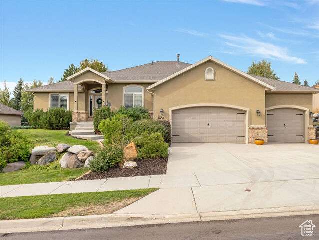 **OPEN HOUSE Saturday October 4, 1:30-3:30pm*** Seller willing to contribute toward buyer's closing costs, a rate buy-down, or even an upgrade allowance.*** You know that moment near the end of the day when time slows down and everything lights up? Photographers call it the Golden Hour, when the light is perfect. But in SunCrest, it kinda feels like that all day. The days start a little brighter, and even though things glow before sunset, the Golden Hour vibe never really leaves. Maybe it's the mountain air, the wraparound views, or the neighbors who turn into family. Either way, you get 24 hours a day of that golden feeling. Step inside and the ease of a rambler layout takes over. Everything you need is on the main floor, no stairs required. Formal spaces at the front are perfect for celebrations or catching your breath, while the kitchen, dining, and family room stretch wide and bright toward the backyard. Whether it's game night with friends or quiet mornings with coffee, the flow just works and gives you moments when time stands still. Out back, the flat, fully landscaped yard sets the stage for grill nights, dog zoomies, or stargazing under a big mountain sky. The primary suite is a daily retreat, with a walk-in closet and a separate tub and shower for wind-down rituals. Two more bedrooms, a full bath, and the laundry room round out the main level without overcomplicating the floor plan. Downstairs is where more of life's golden moments unfold. More space, more comfort, and more ways to do what you love and live how you want. Three extra bedrooms, a wet bar, and a theater room are ready for Friday night marathons or post-hike nap sesh. The three-car garage holds your adventure gear, and the curb appeal is already dialed in. Weekends stay wide open for what matters: sunset strolls, park playdates, or spontaneous neighborhood hangs. With several trailheads just a walk away, you can get out into that sunlight anytime you'd like. Because in SunCrest, it's never just about the house. It's about living a golden life.